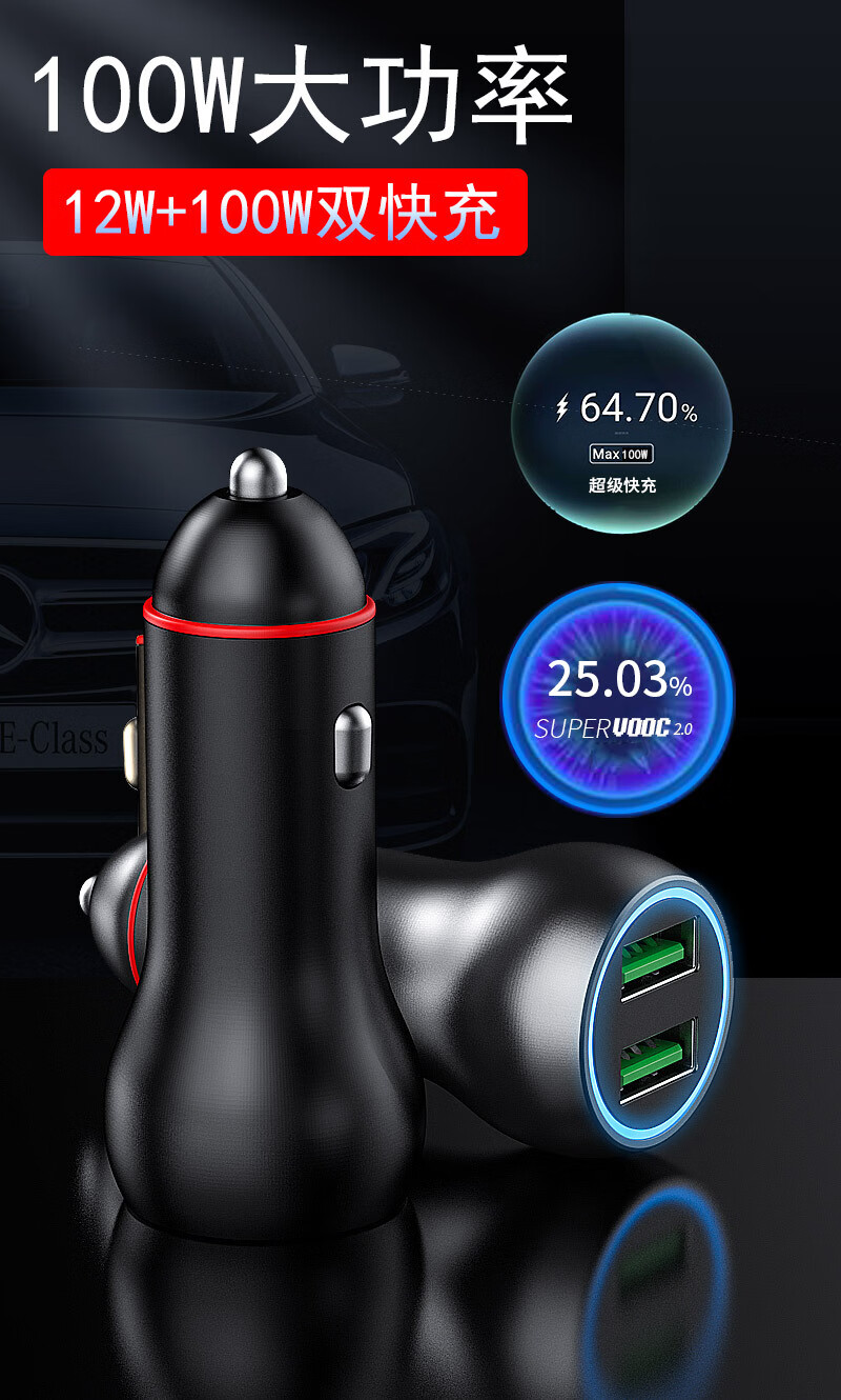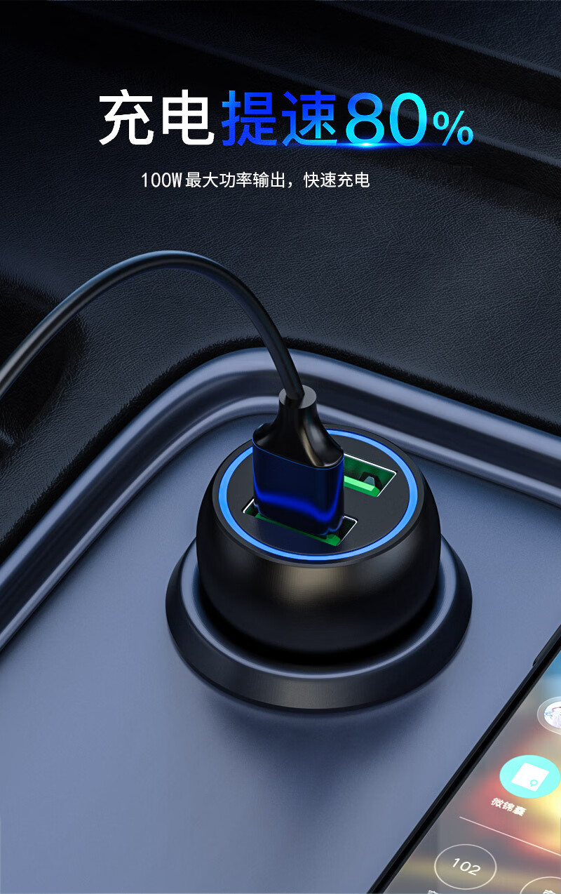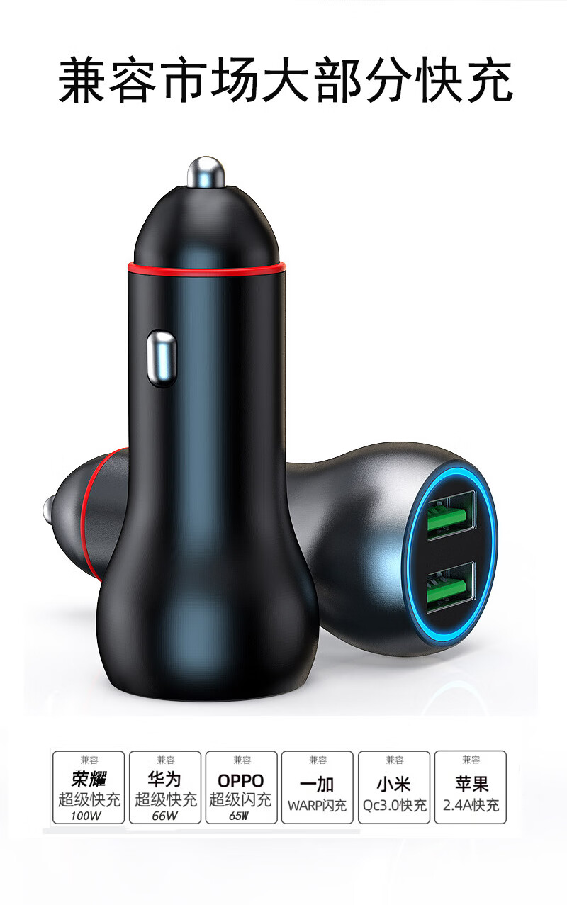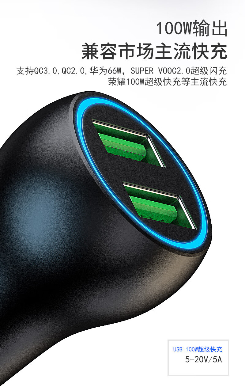 New car charger dual usb multifunctional 100w fast charge 65w flash charge one to two cigarette lighter 66w car charger 65W+30W+ line space gray