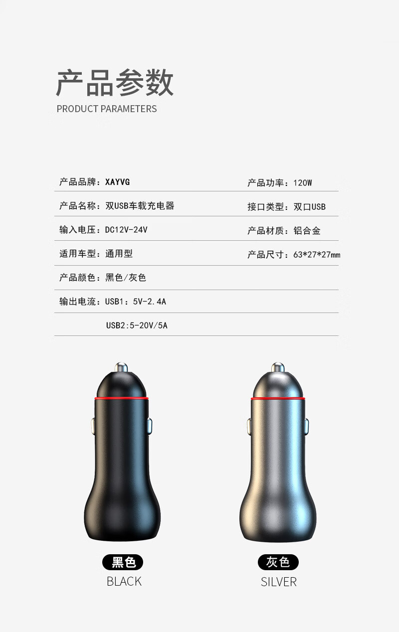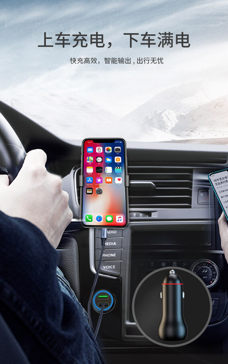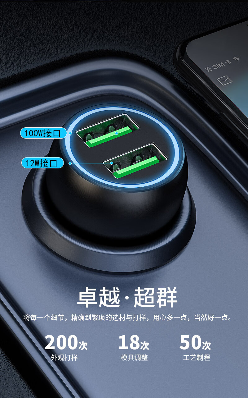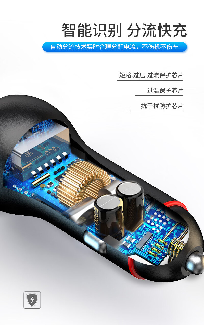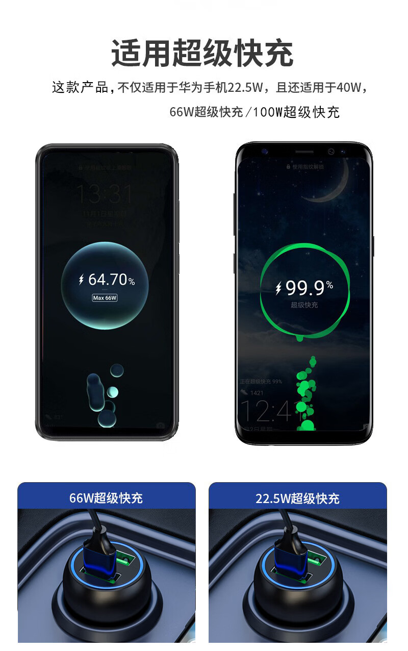 New car charger dual usb multifunctional 100w fast charge 65w flash charge one to two cigarette lighter 66w car charger 65W+30W+ line space gray