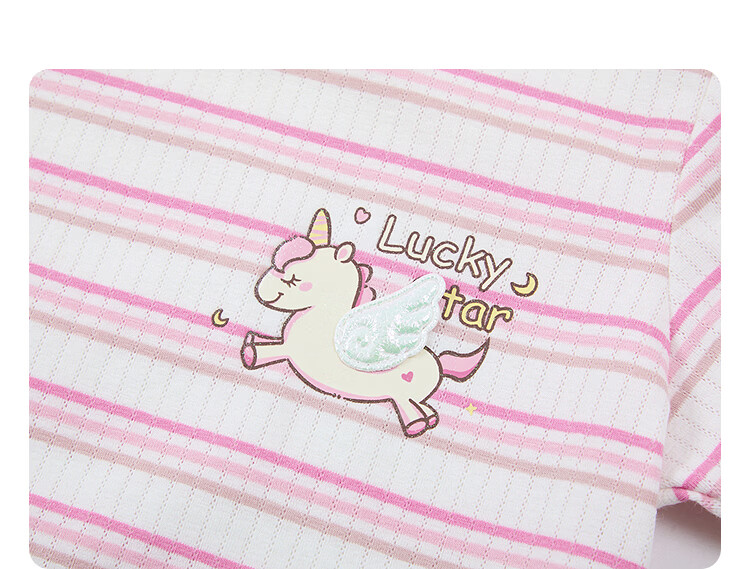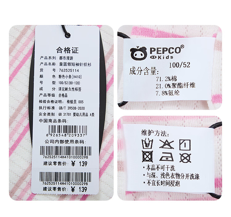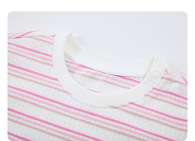 Piggy Banner (PEPCO) children's clothing 2026 new summer style small and medium-sized girls pink and white striped T-shirt combed cotton round neck short-sleeved sweater pink strips 110