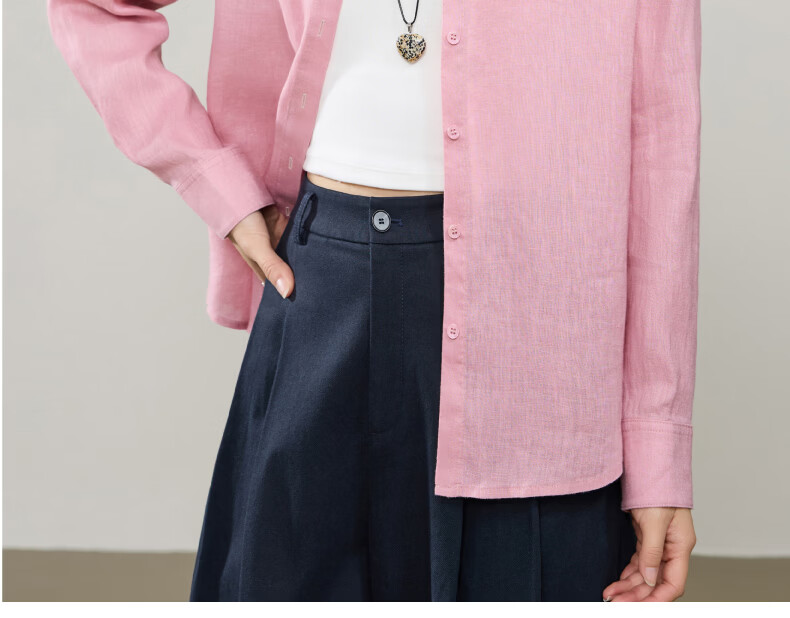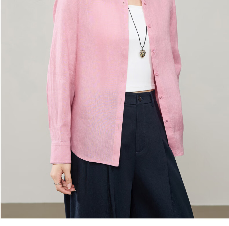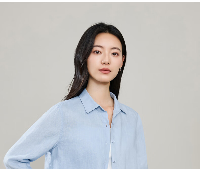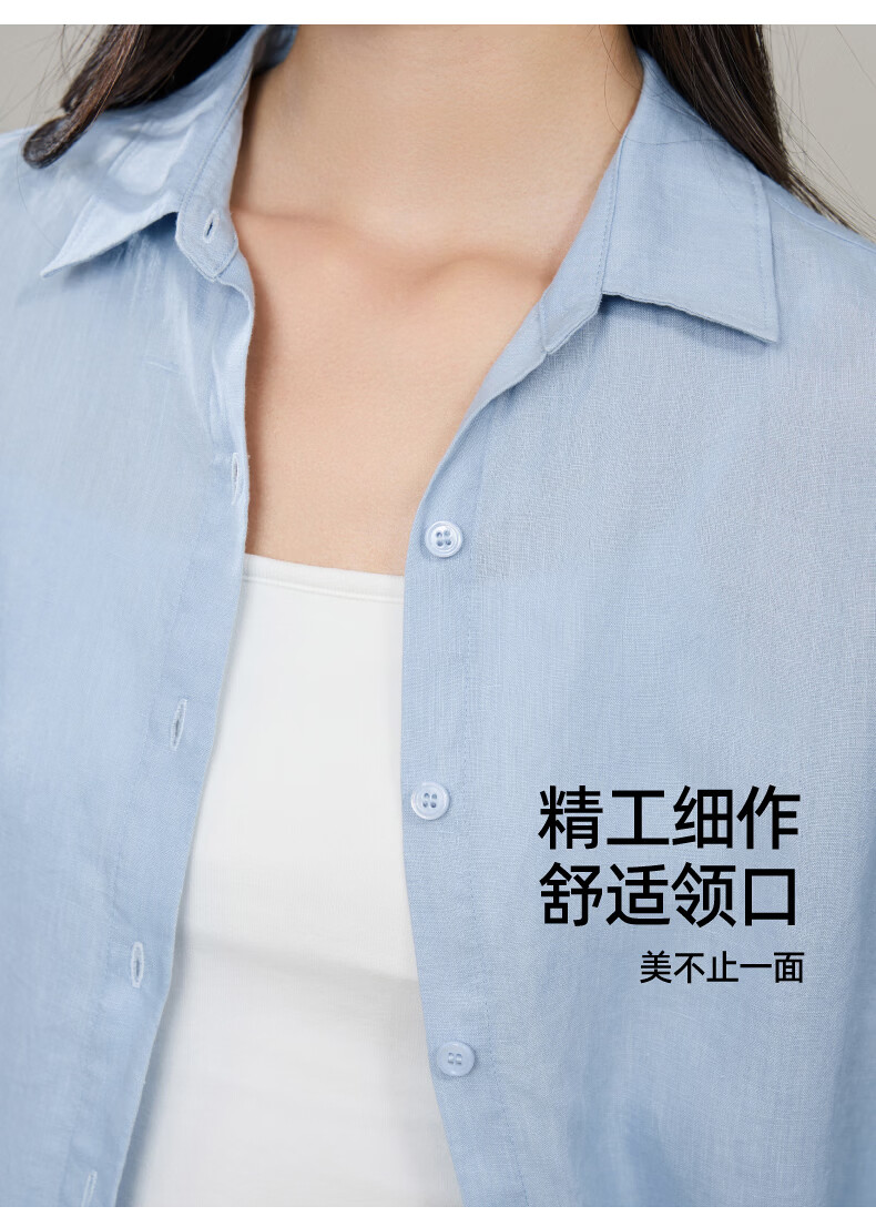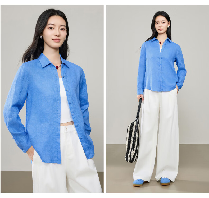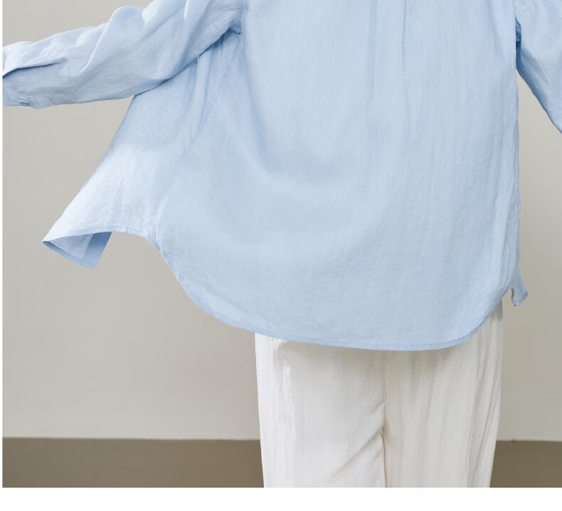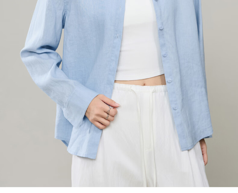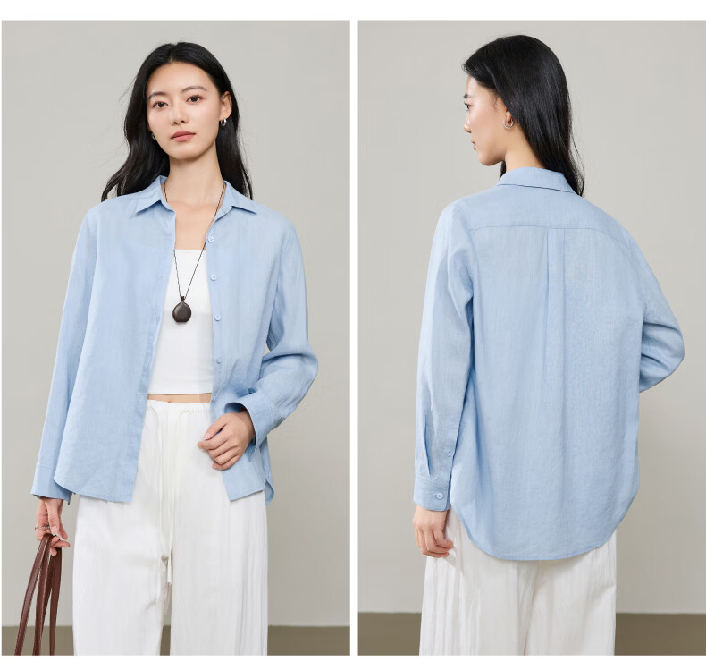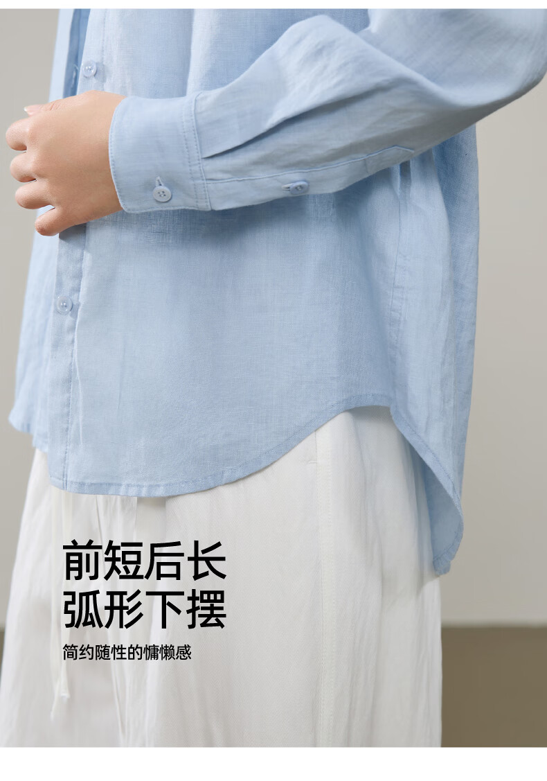 Yiyang (ESE-Y) 100% linen shirt for women 2026 spring new style right shoulder slim loose inner long-sleeved cardigan jacket shirt ice blue S