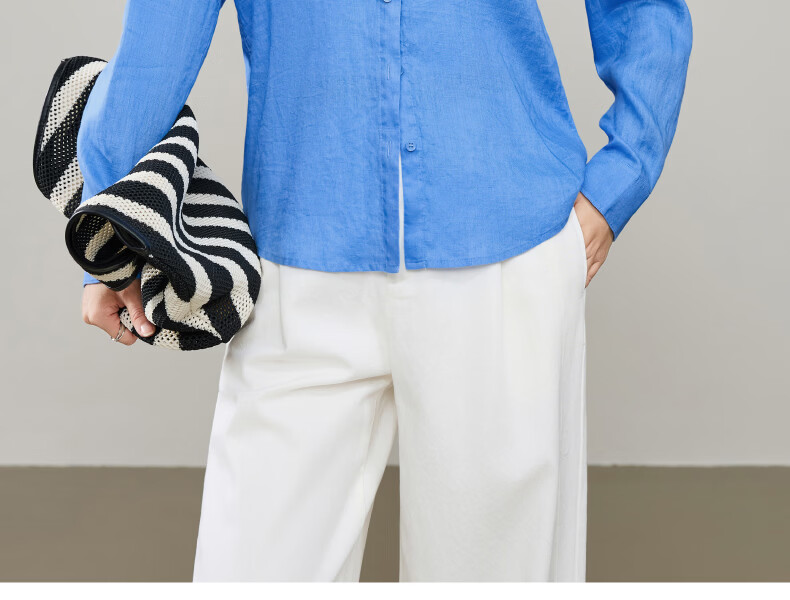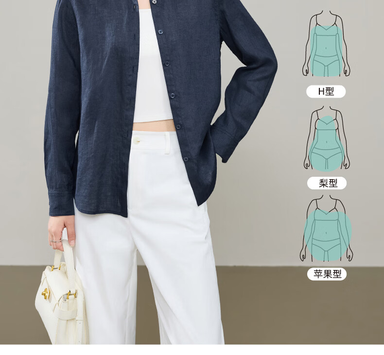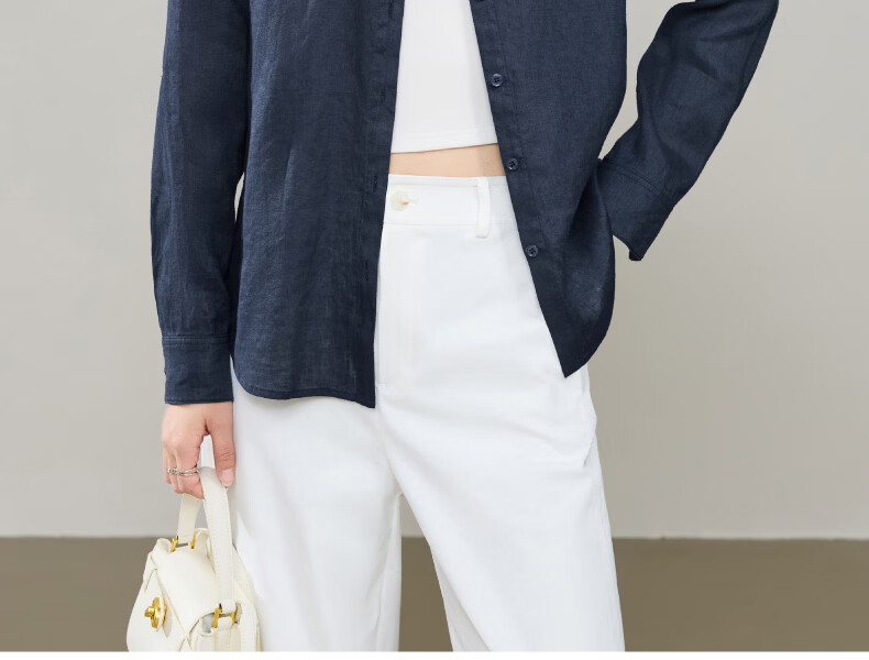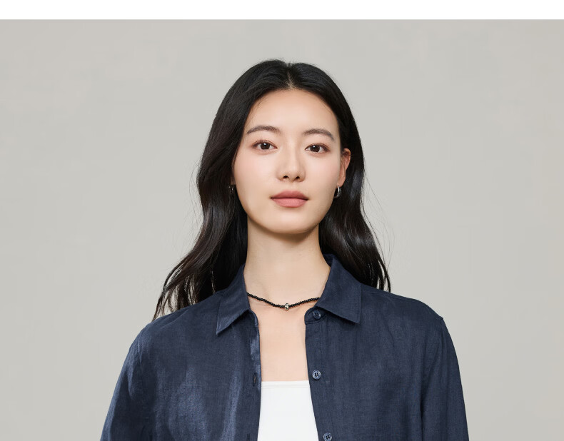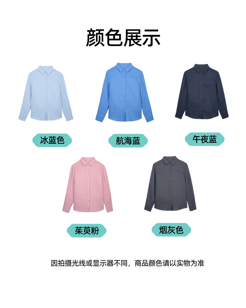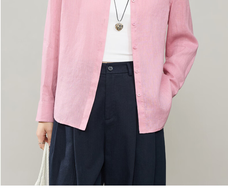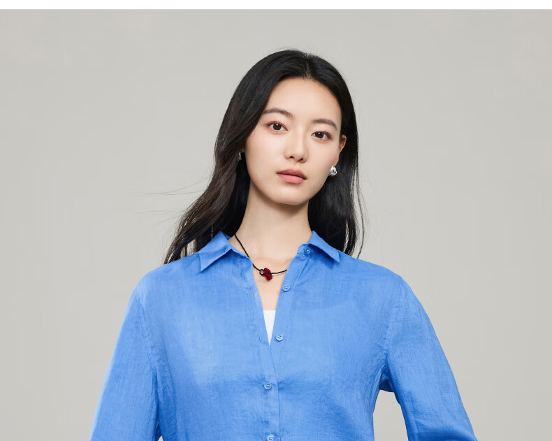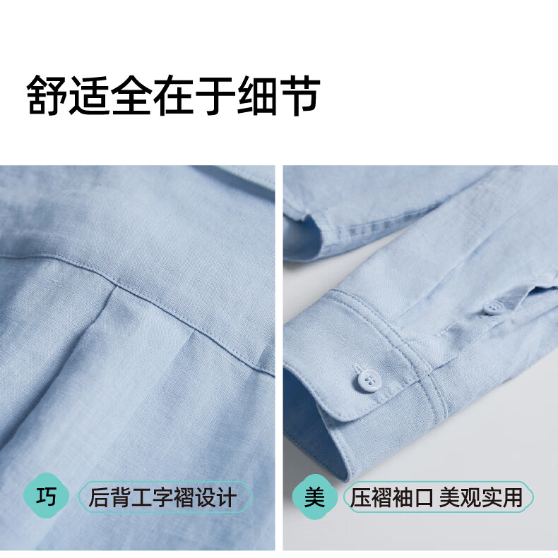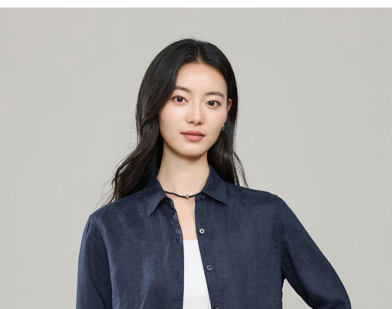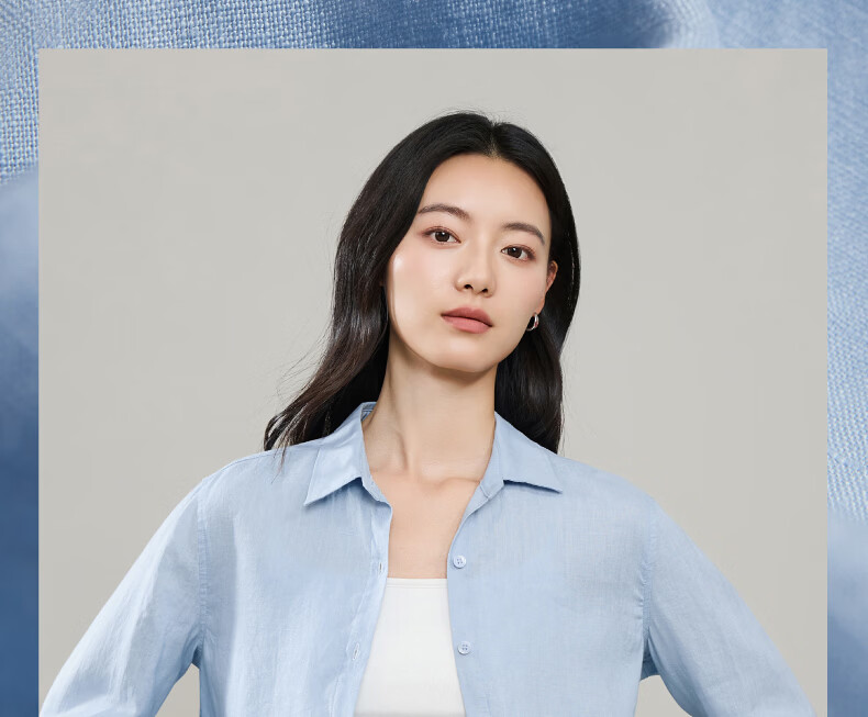 Yiyang (ESE-Y) 100% linen shirt for women 2026 spring new style right shoulder slim loose inner long-sleeved cardigan jacket shirt ice blue S