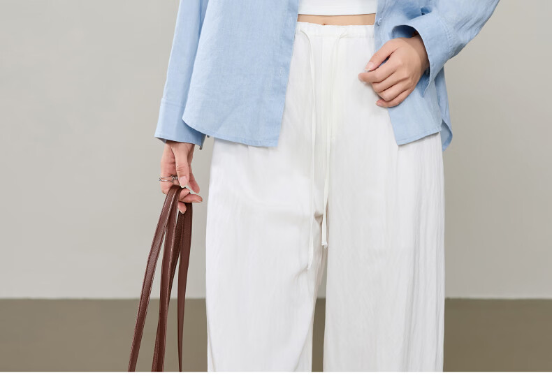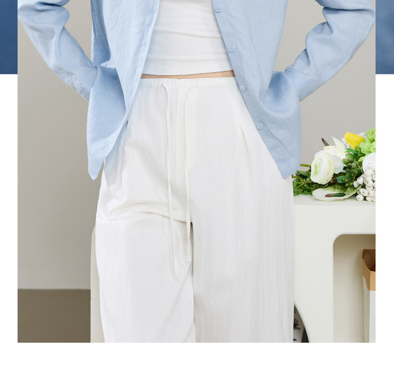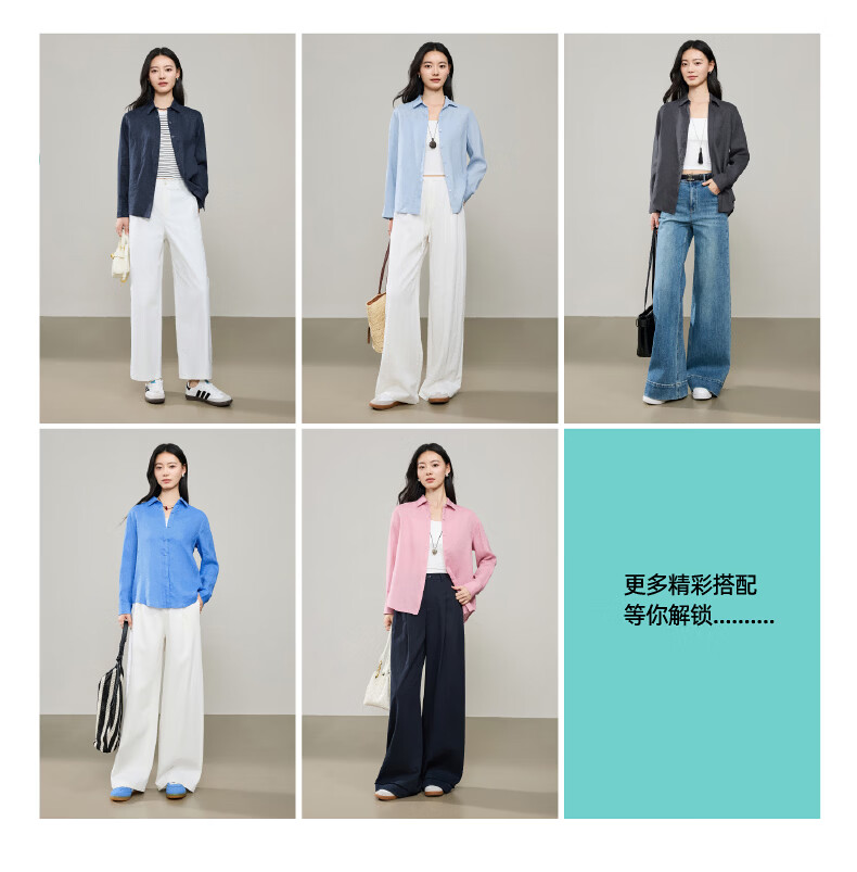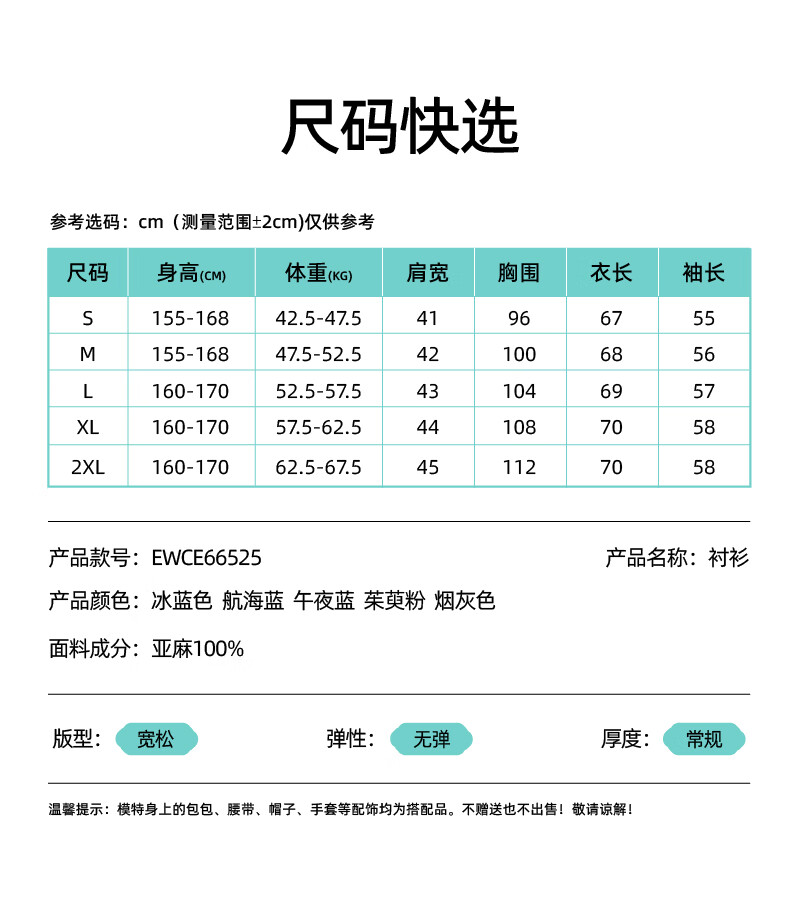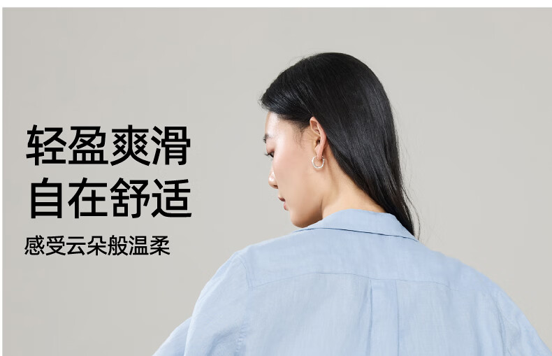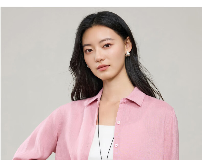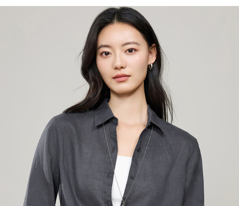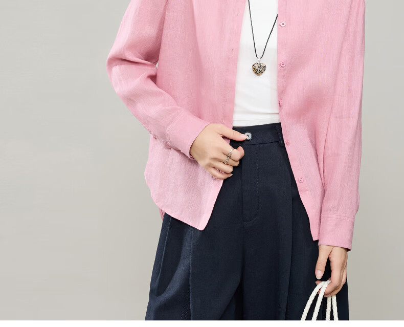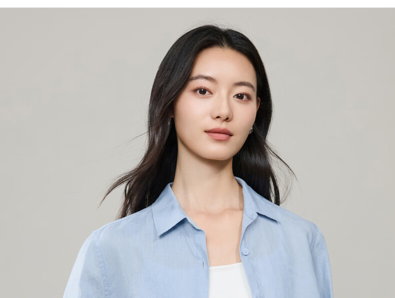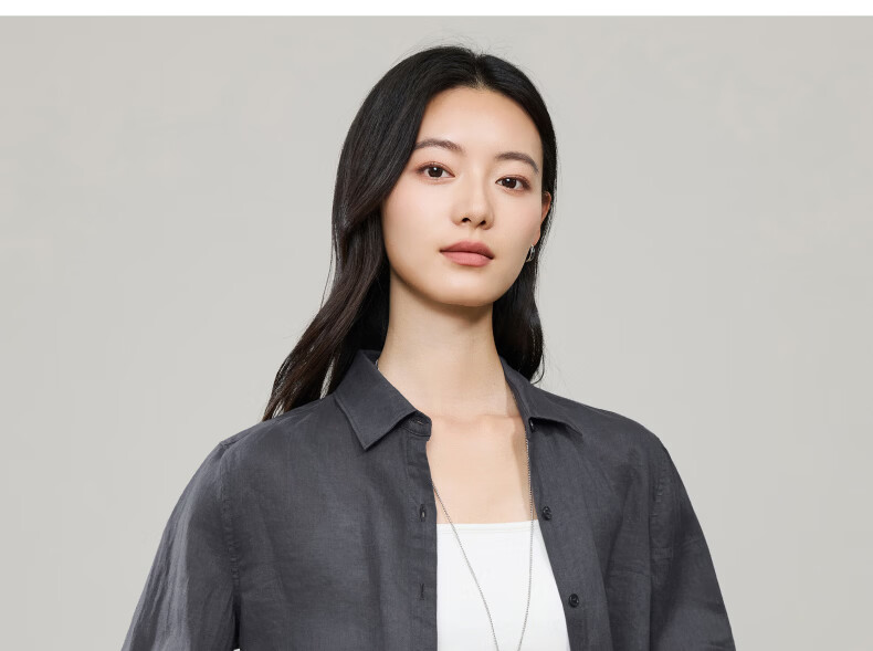 Yiyang (ESE-Y) 100% linen shirt for women 2026 spring new style right shoulder slim loose inner long-sleeved cardigan jacket shirt ice blue S