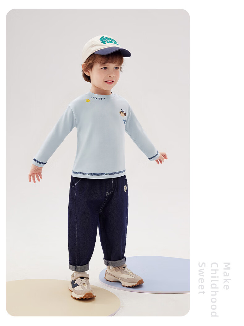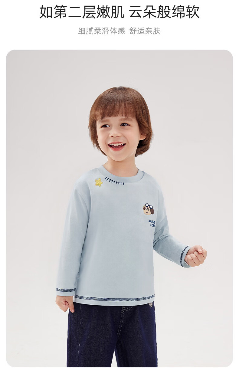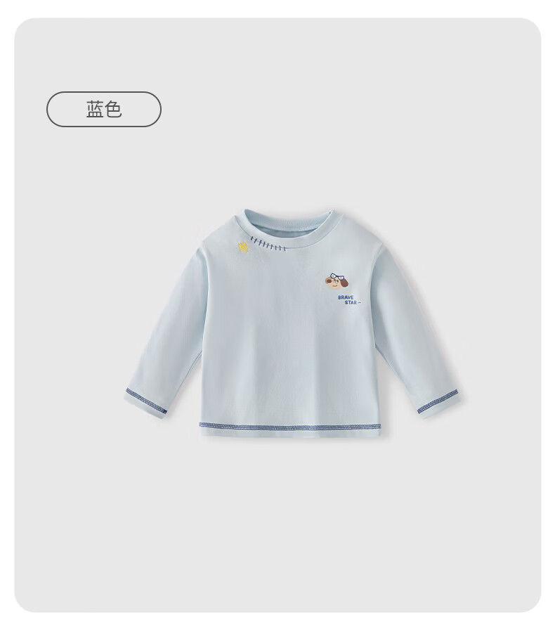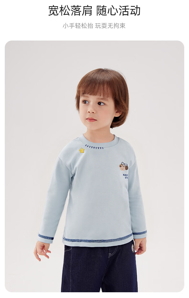 JELLYBABY 2026 spring new product boy T-shirt versatile top spring print solid color simple 6-year-old boy clothes children blue 90