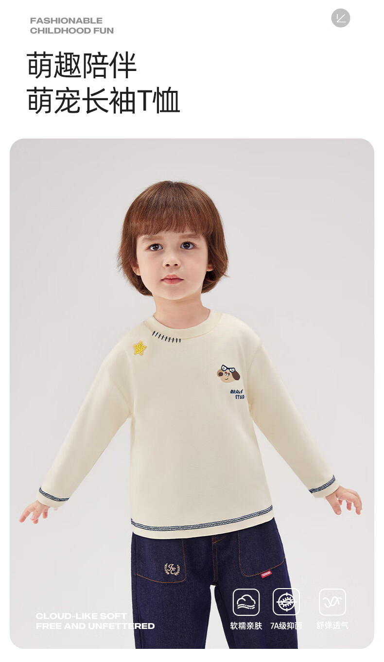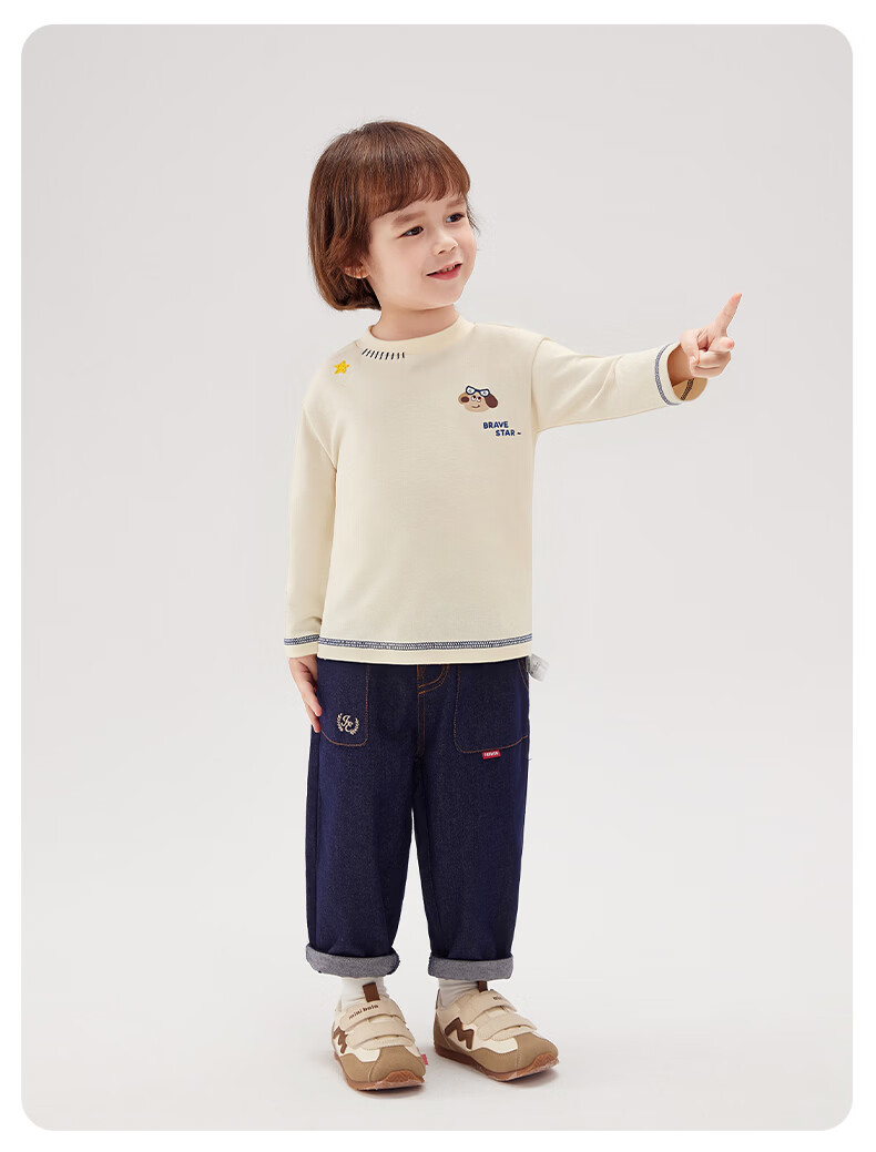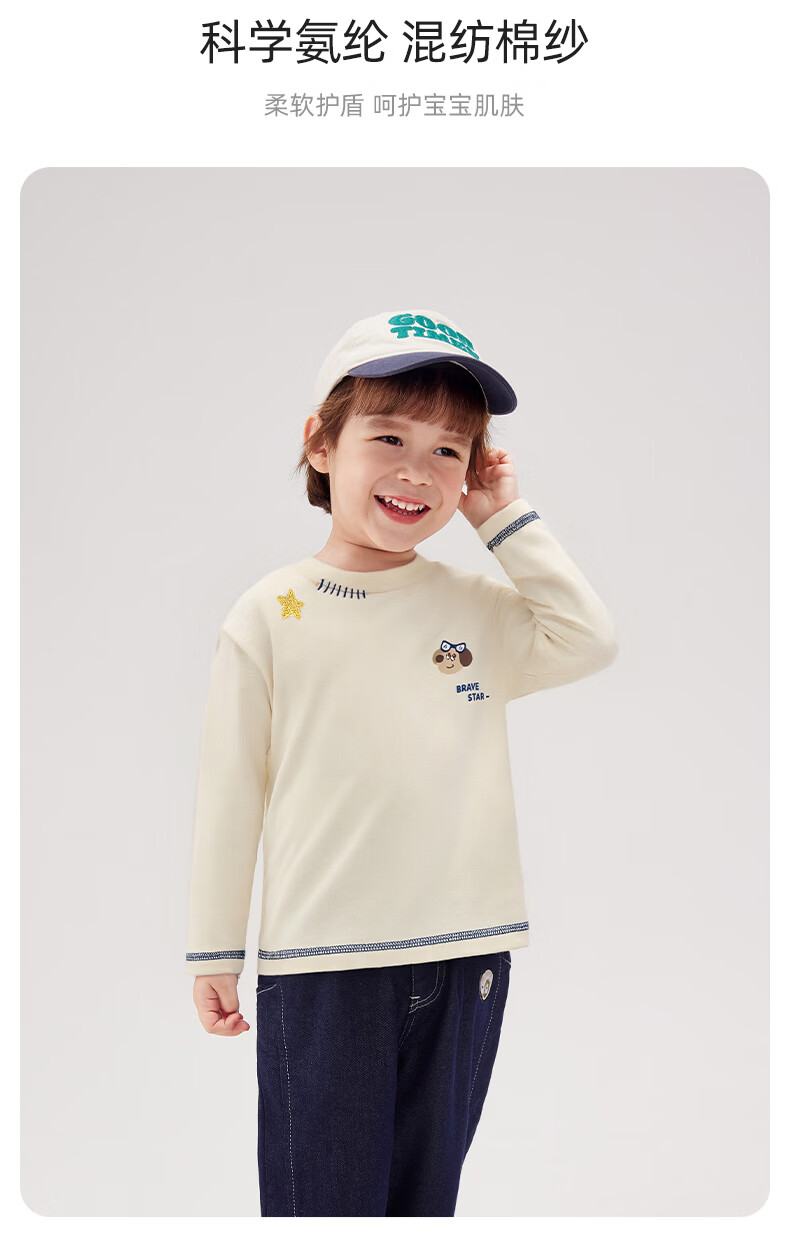 JELLYBABY 2026 spring new product boy T-shirt versatile top spring print solid color simple 6-year-old boy clothes children blue 90