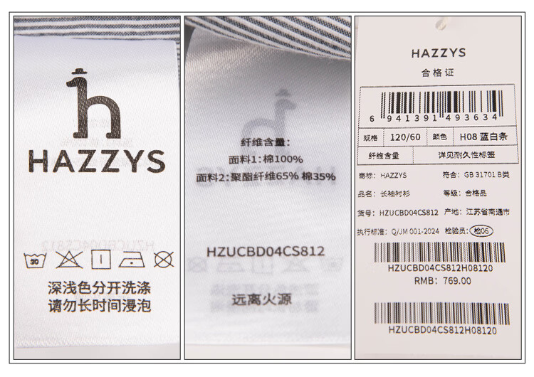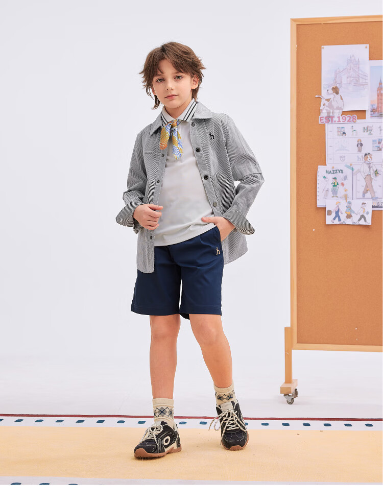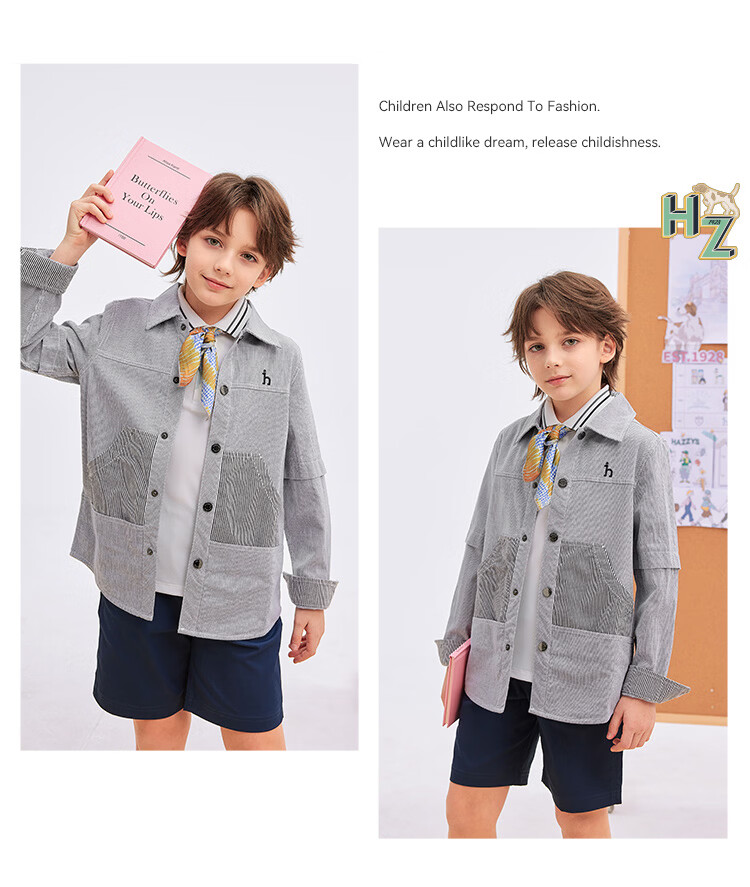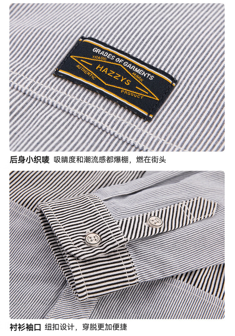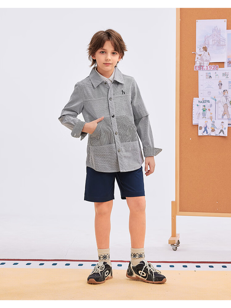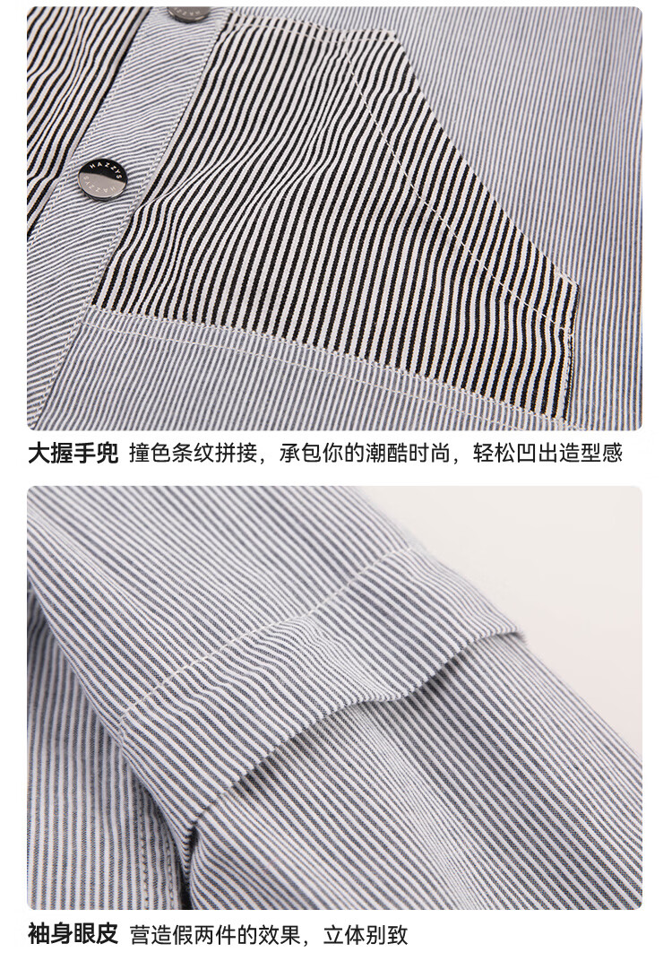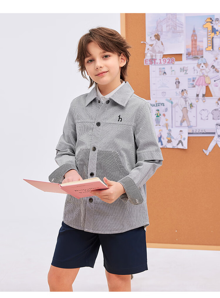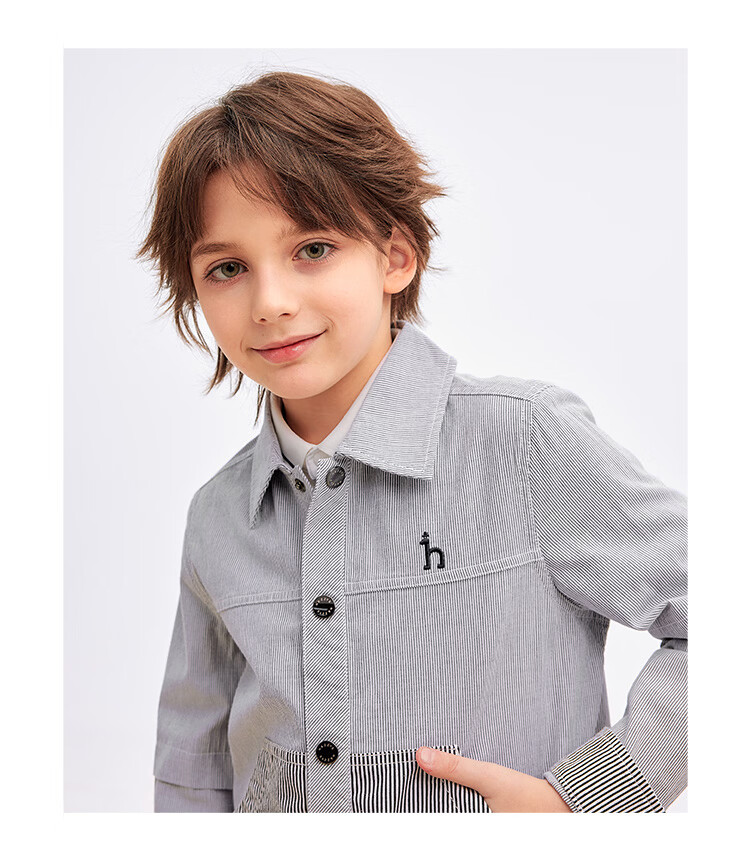 HAZZYS children's clothing boys' shirts 2026 spring new woven thin denim casual long-sleeved tops blue and white stripes 165