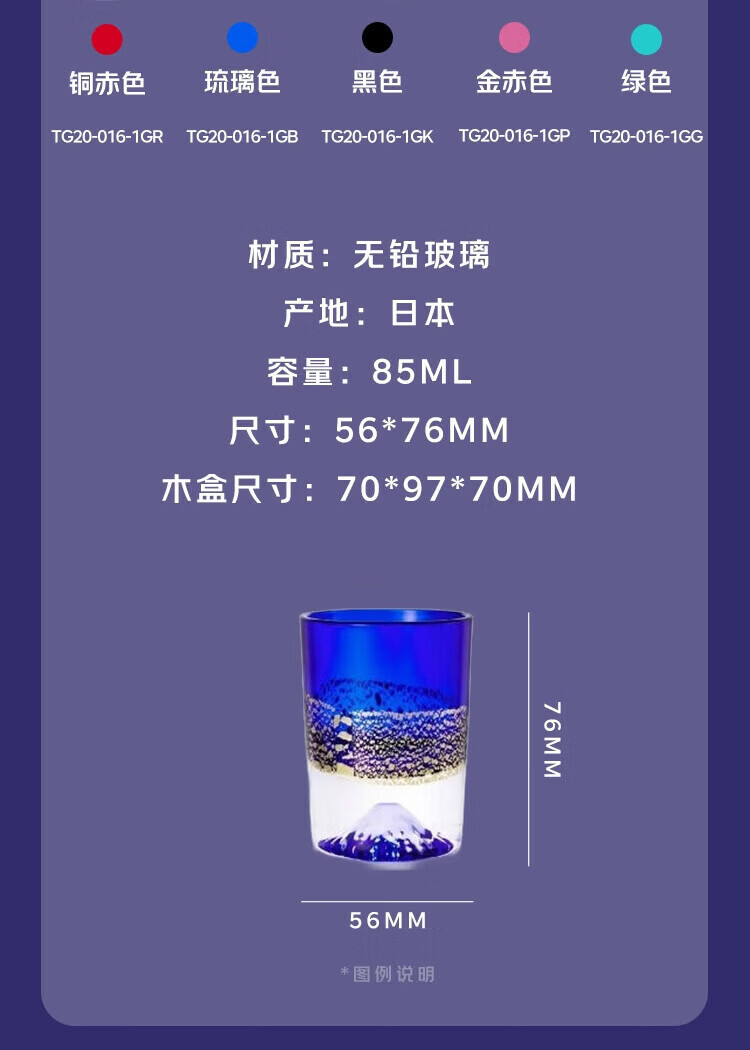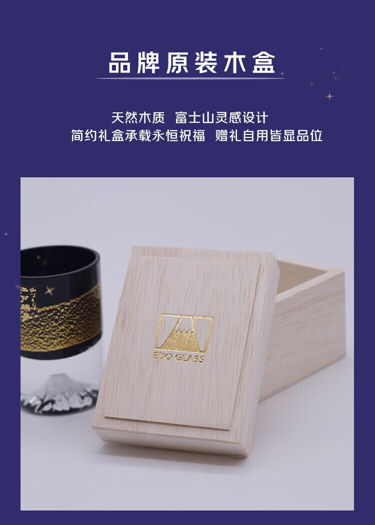 Tajima Glass Copper Red Gold Foil Mount Fuji Cold Wine Glass Original Wooden Box Imported from Japan