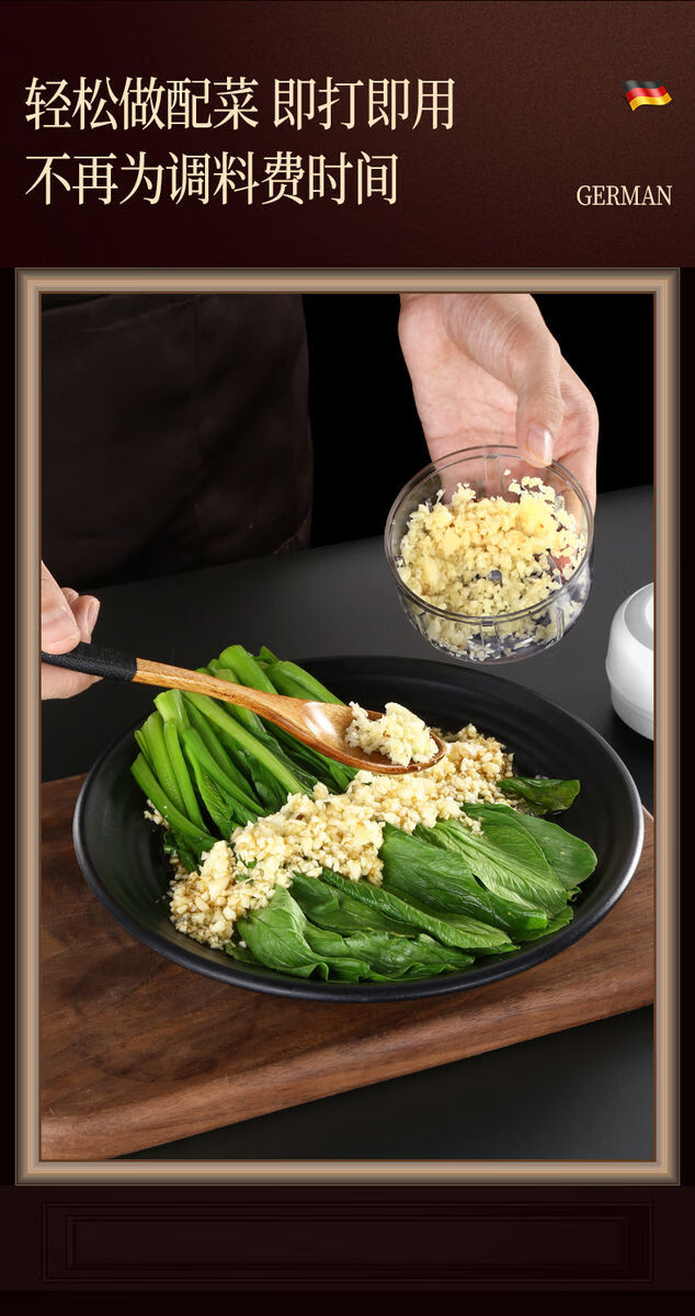 Fantasy design garlic masher with mini mincer, enhanced power, portable manual garlic pounder, enhanced power + high borosilicate glass container green (150ml)