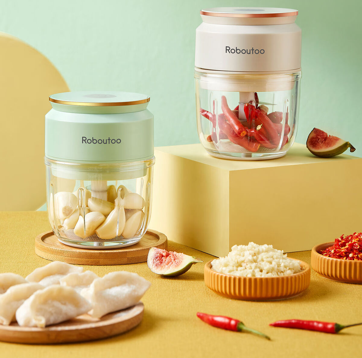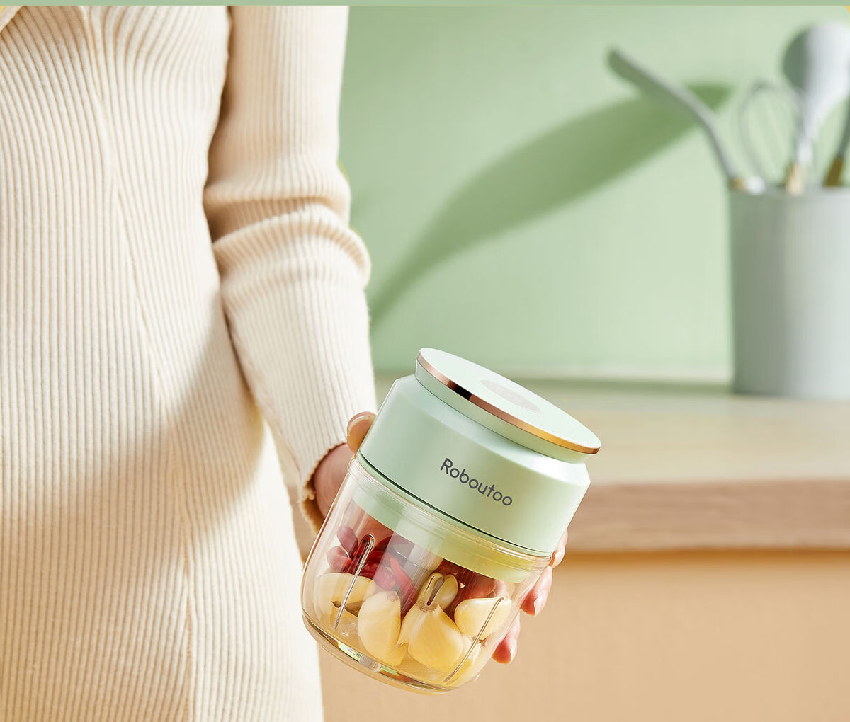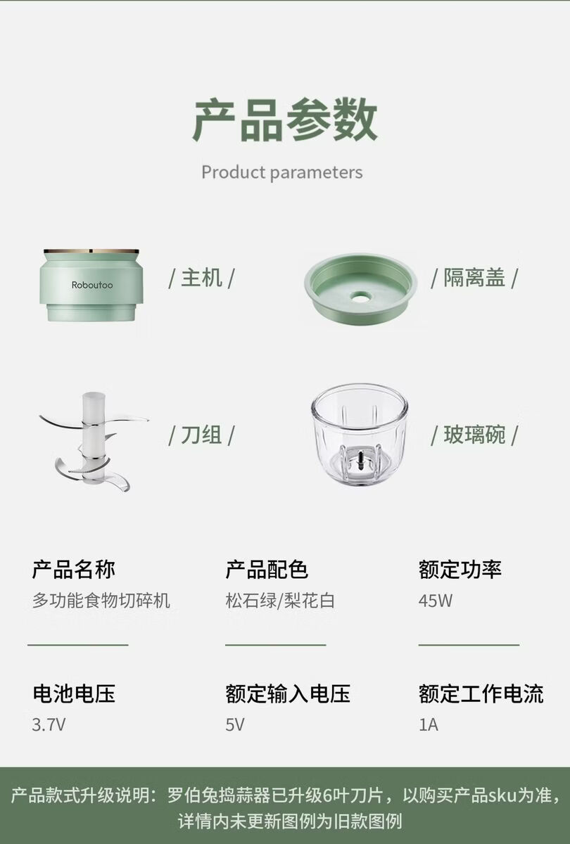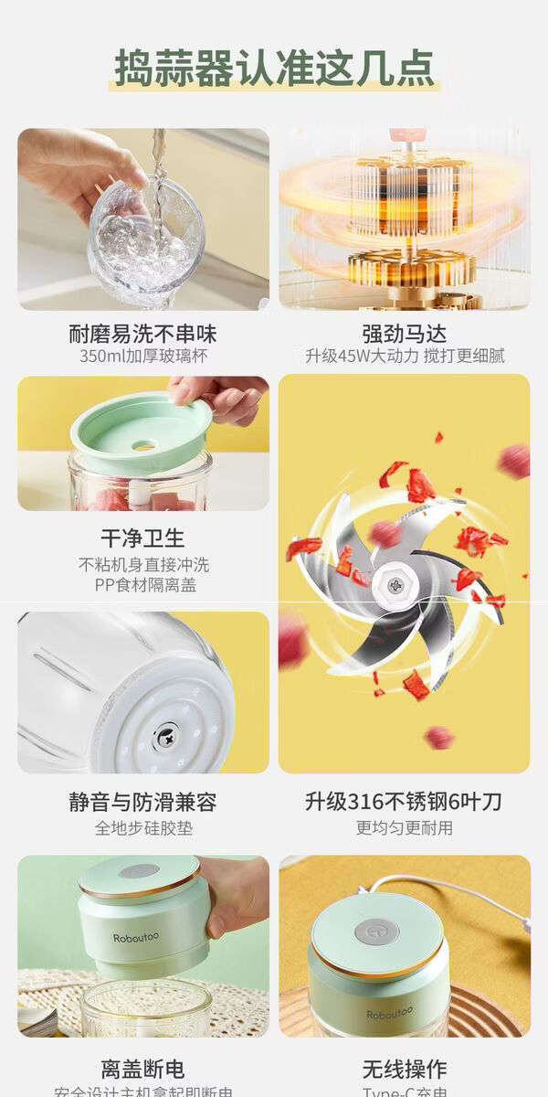 Fantasy Garlic Pounding Machine Garlic Pounding Machine Small Garlic Pounding Machine Green Green丨Thickened Plastic Cup丨316 Stainless Steel 4-Leaf Knife + Powerful Garlic Pounding Machine
