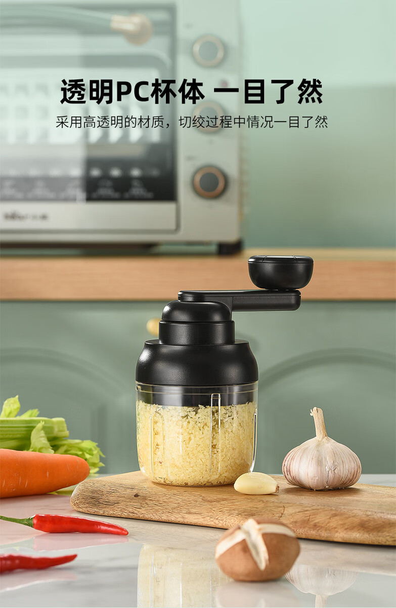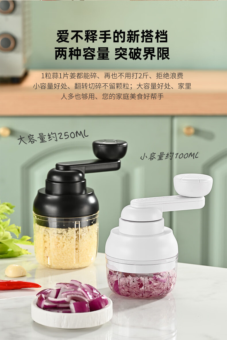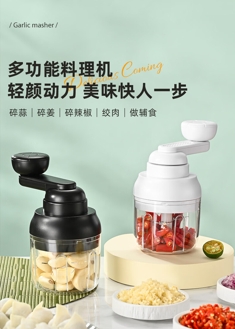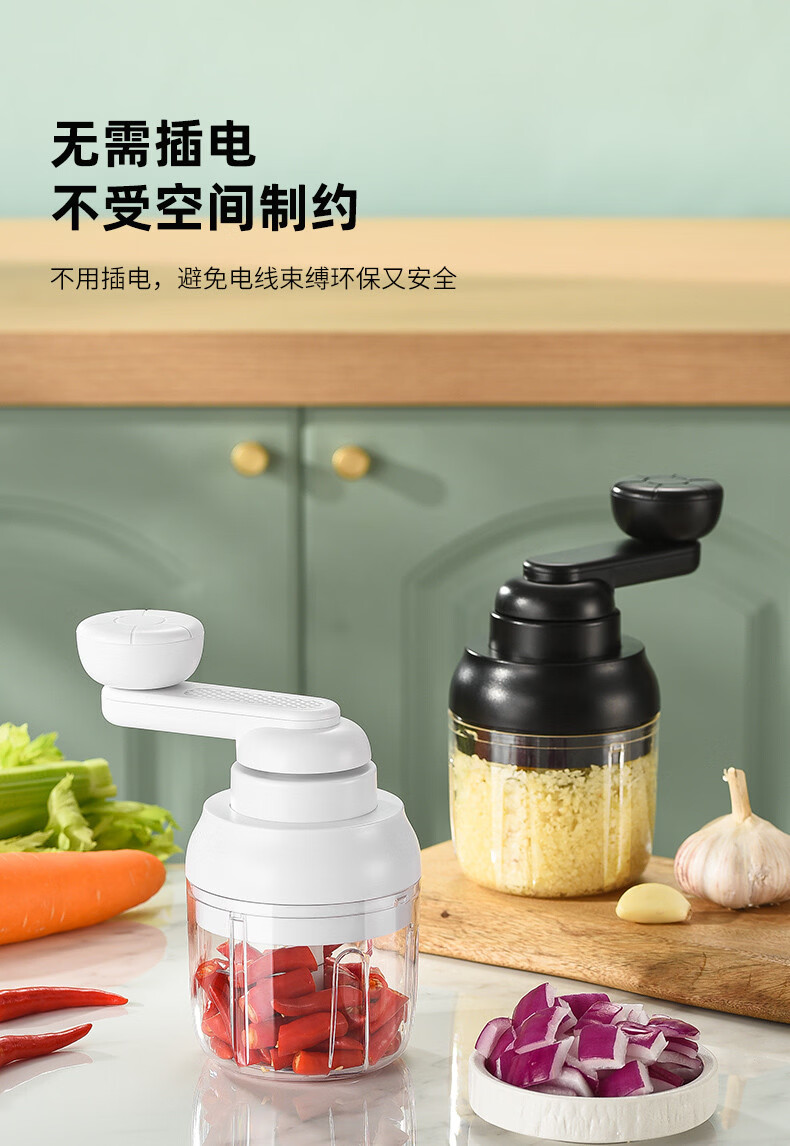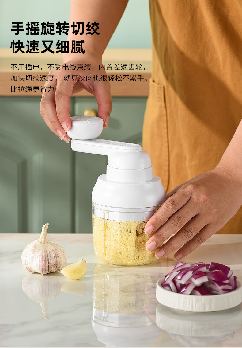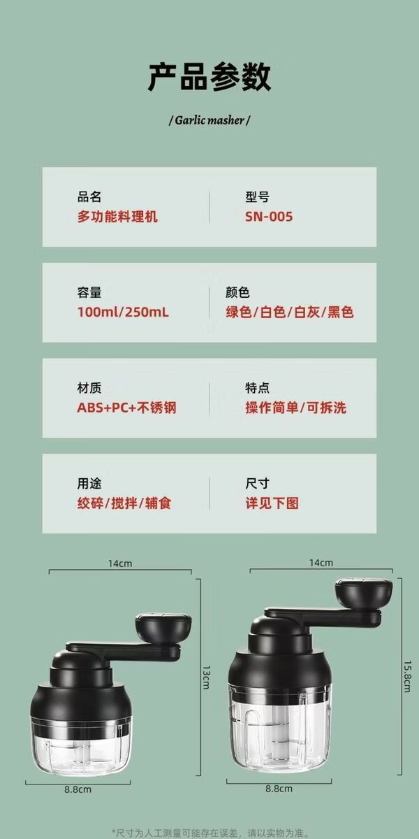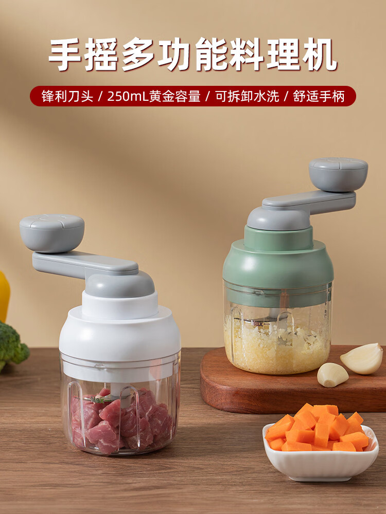 Fantasy hand-cranked garlic artifact meat grinder, small household manual garlic, electric stirring, pulling, cutting, minced garlic crushing H8 hand-cranked garlic meat grinder, matcha green, mini trumpet + 2-leaf knife