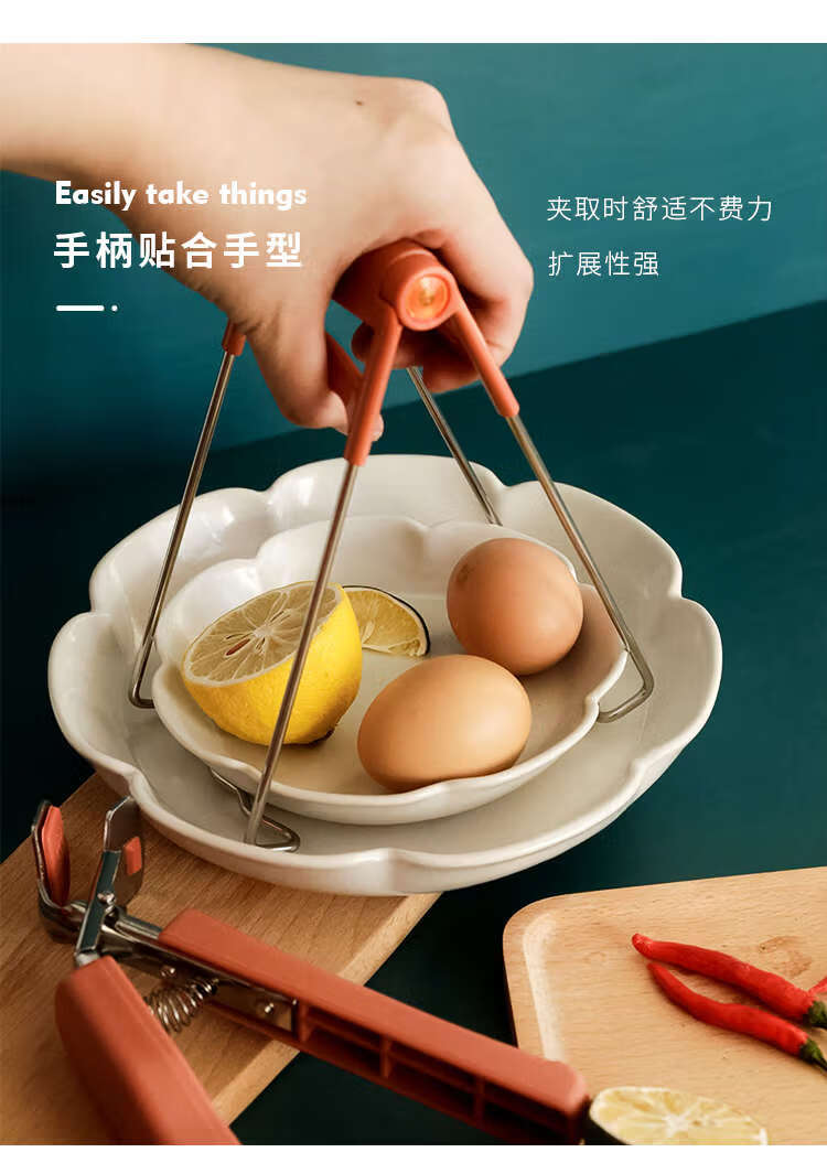 Yusenyi Plate Lifter Home Non-slip and Anti-scalding Bowl Clamp Kitchen Clamp Plate Clamp Steaming Vegetable Steamer Insulated Clamp Plate Lifter + Dark Blue