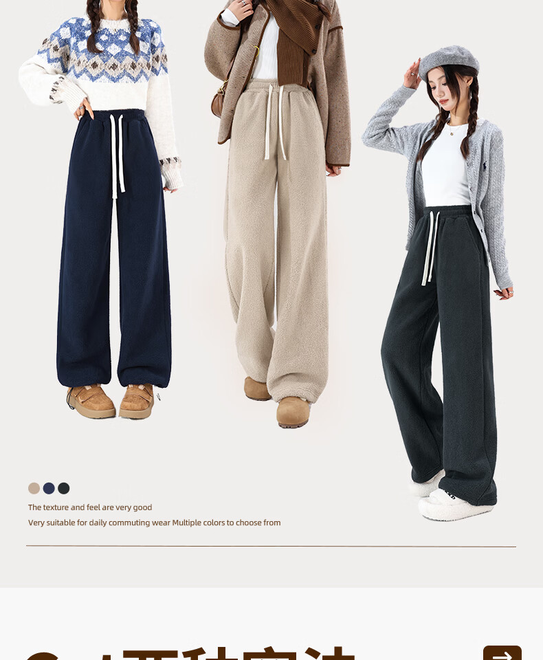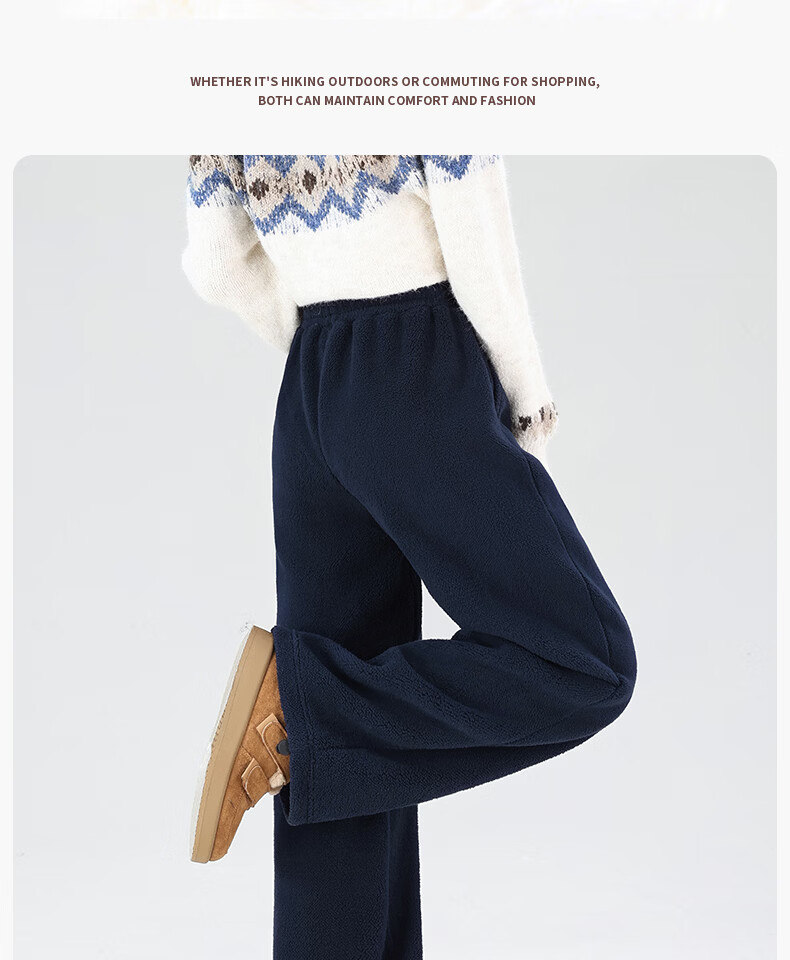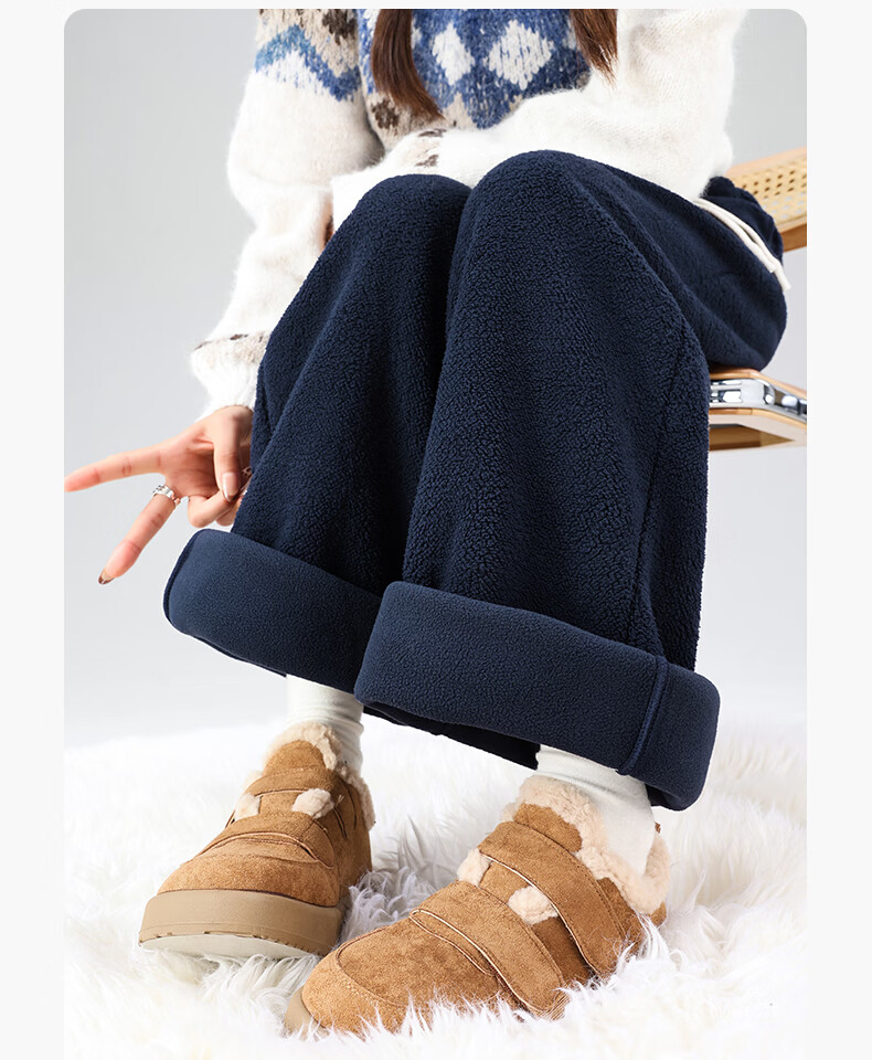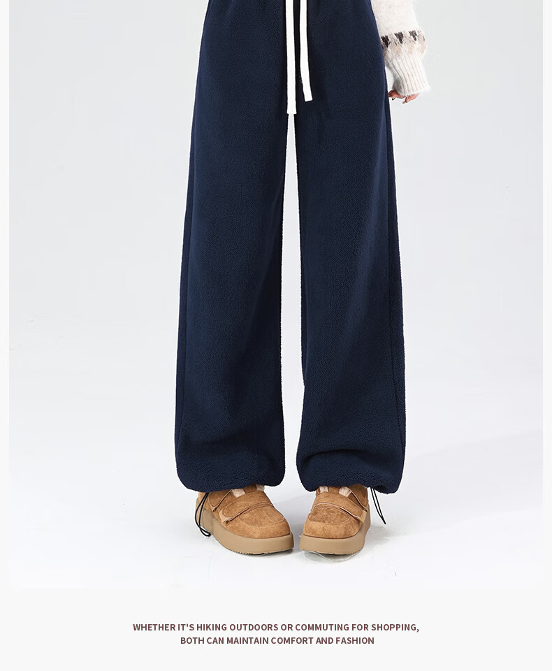 Snow Flying (SNOWFLYING) fleece casual high-waisted sweatpants for women 2026 spring new fashion simple polar fleece thickened wide-leg long pants navy blue S 155/62A 85-100Jin Jin equals 0.5 kg