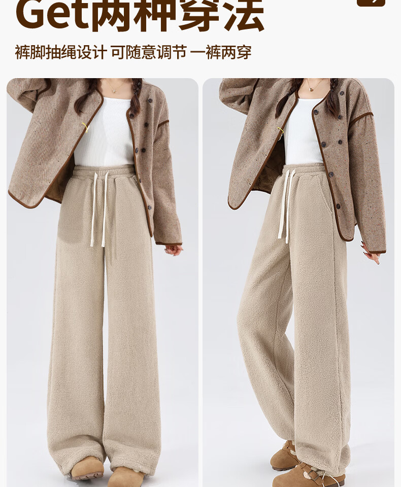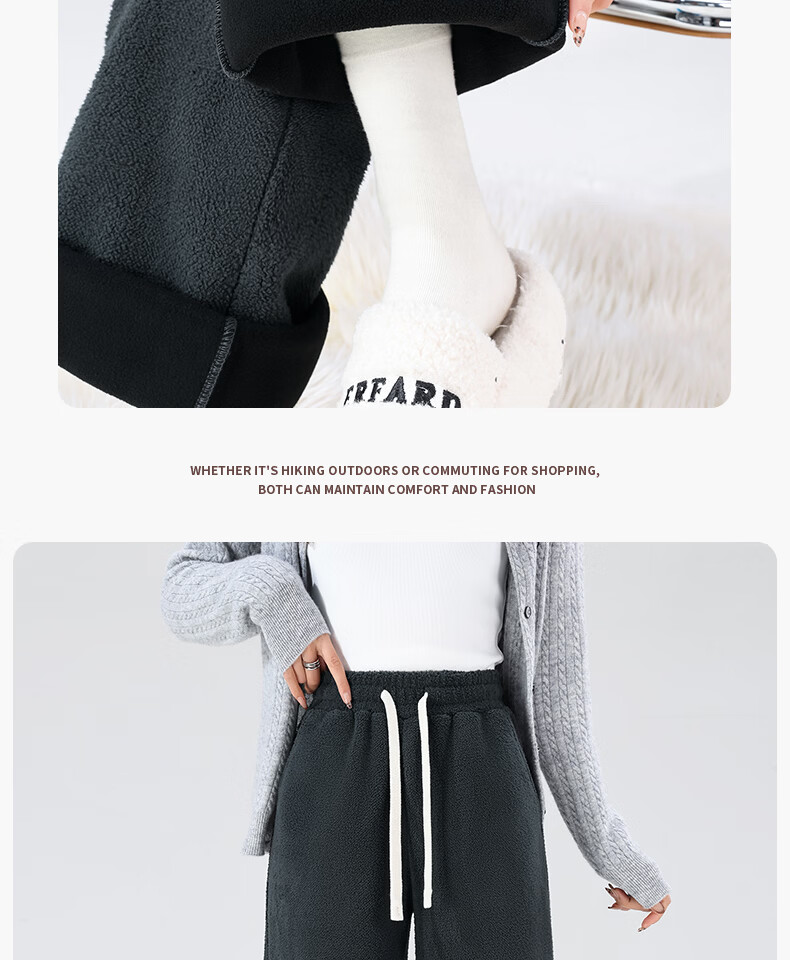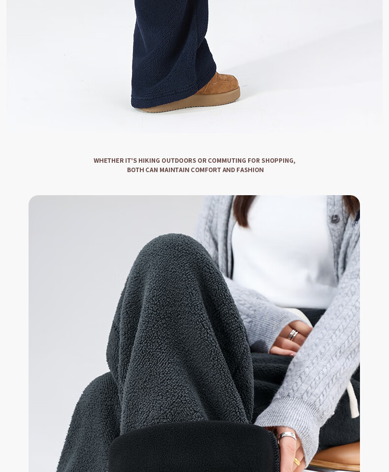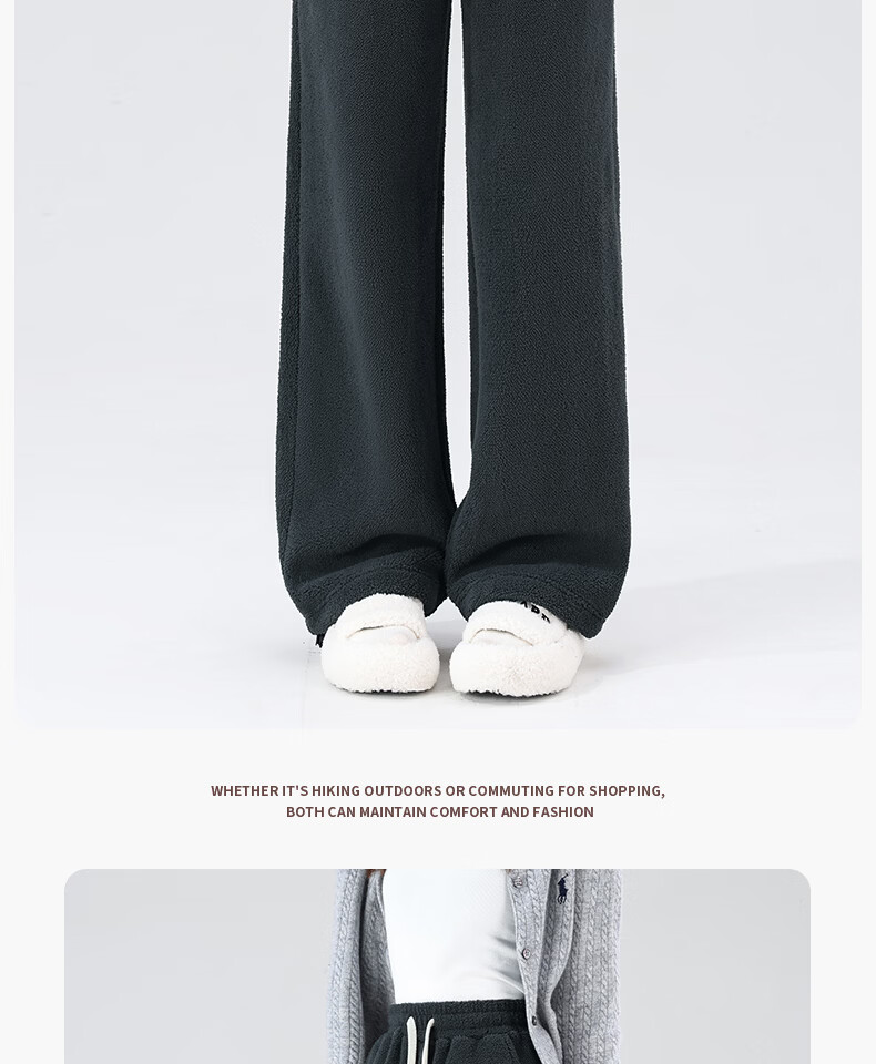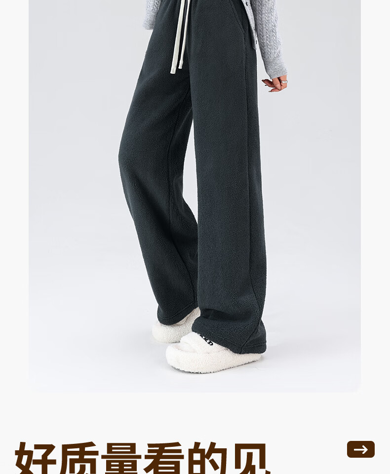 Snow Flying (SNOWFLYING) fleece casual high-waisted sweatpants for women 2026 spring new fashion simple polar fleece thickened wide-leg long pants navy blue S 155/62A 85-100Jin Jin equals 0.5 kg