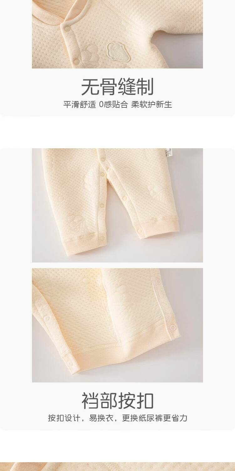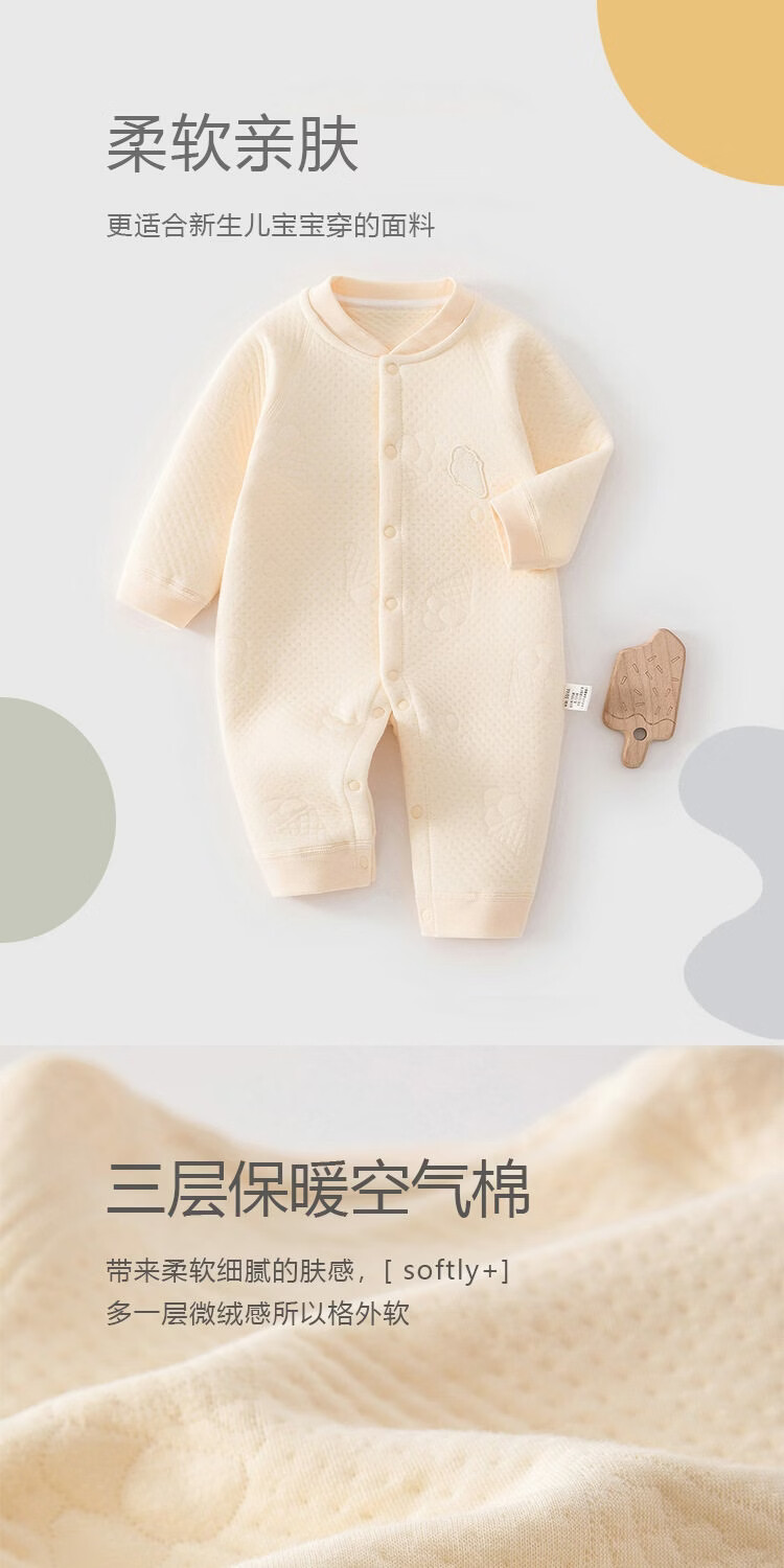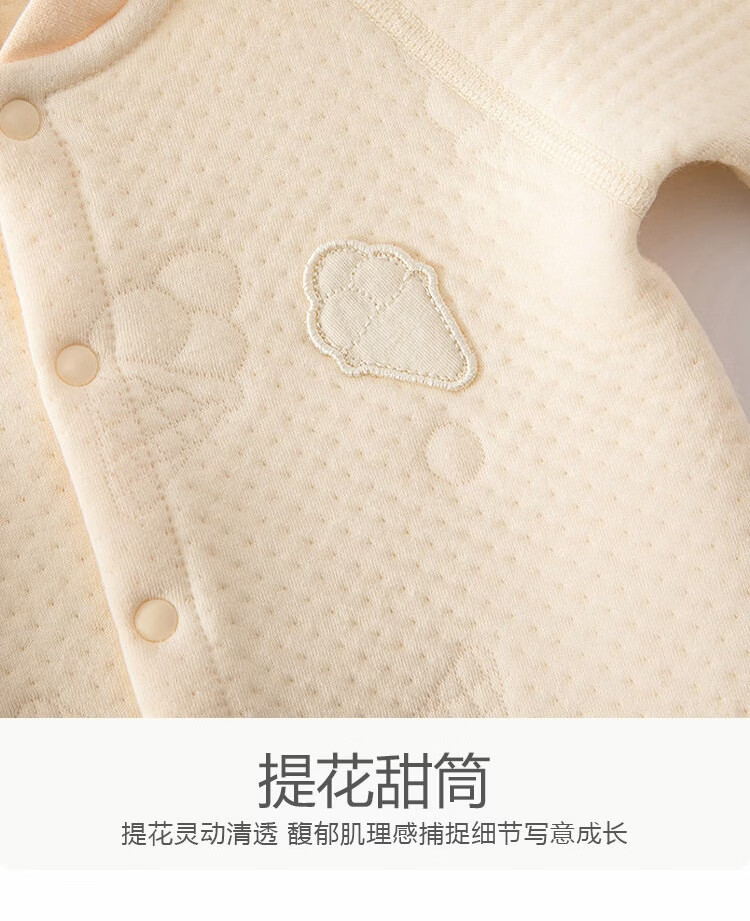 JOYNCLEON baby warm jumpsuit autumn and winter newborn quilted half-buttoned long-sleeved jumpsuit baby thickened crawling suit mid-open warm jumpsuit jacquard cone yellow 80cm 9-12 months recommended weight 8.5-10kg