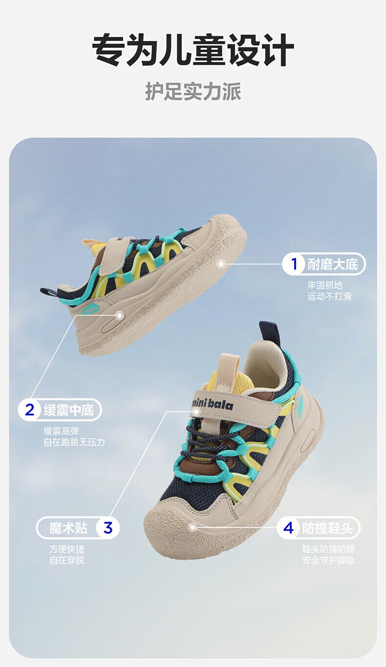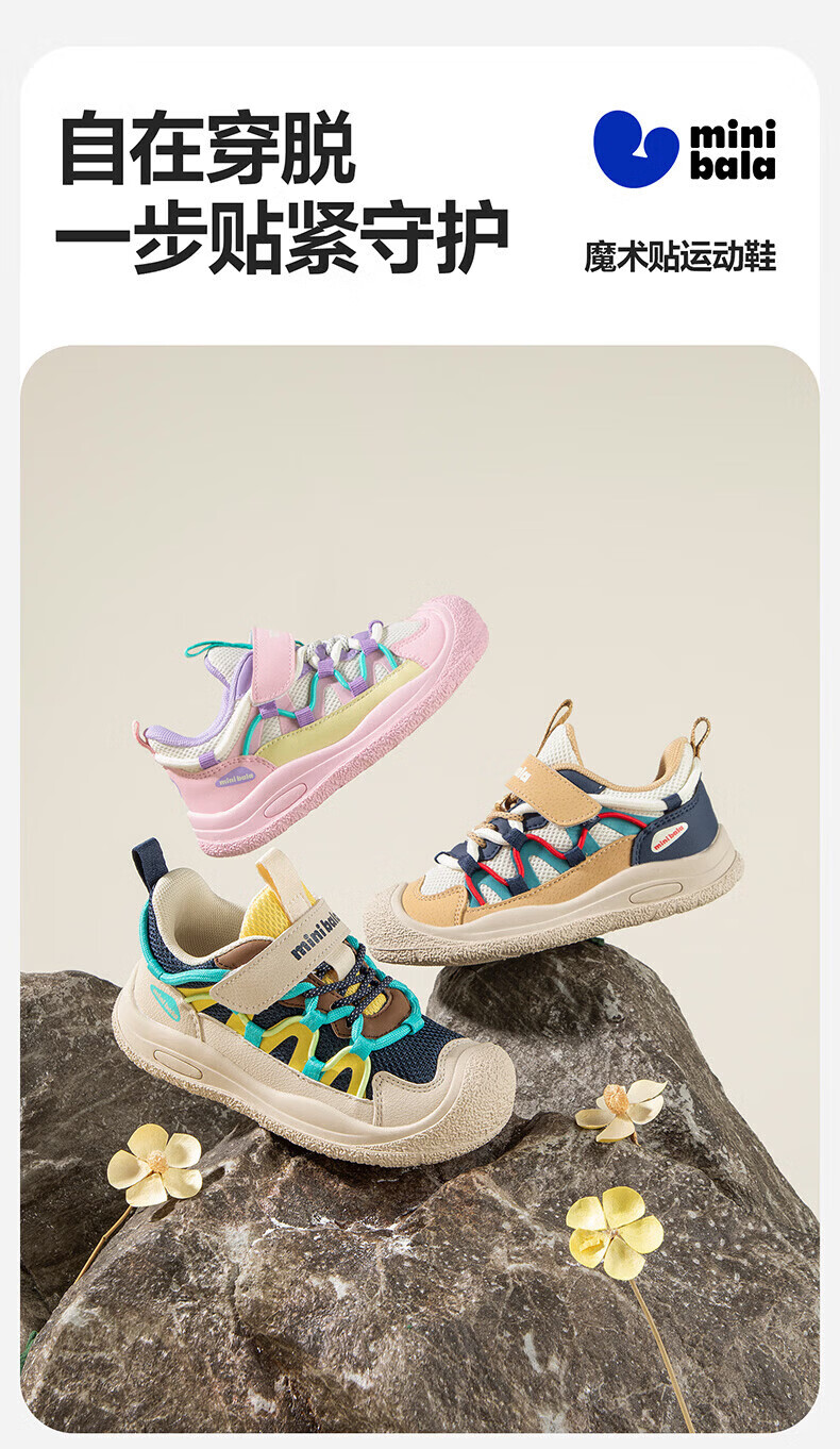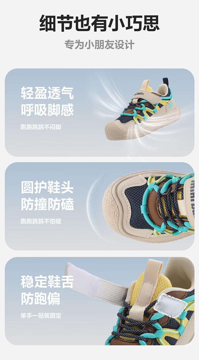 Minibala (minibala) 50% off children's shoes, boys' sports shoes, spring new children's wear-resistant, cushioning and anti-collision casual shoes for girls, outdoor, blue, size 24, suitable for feet 13.8-14.3cm long