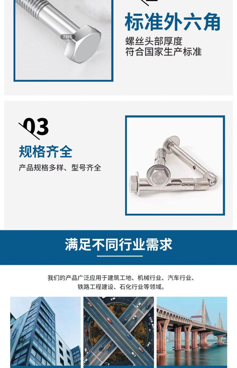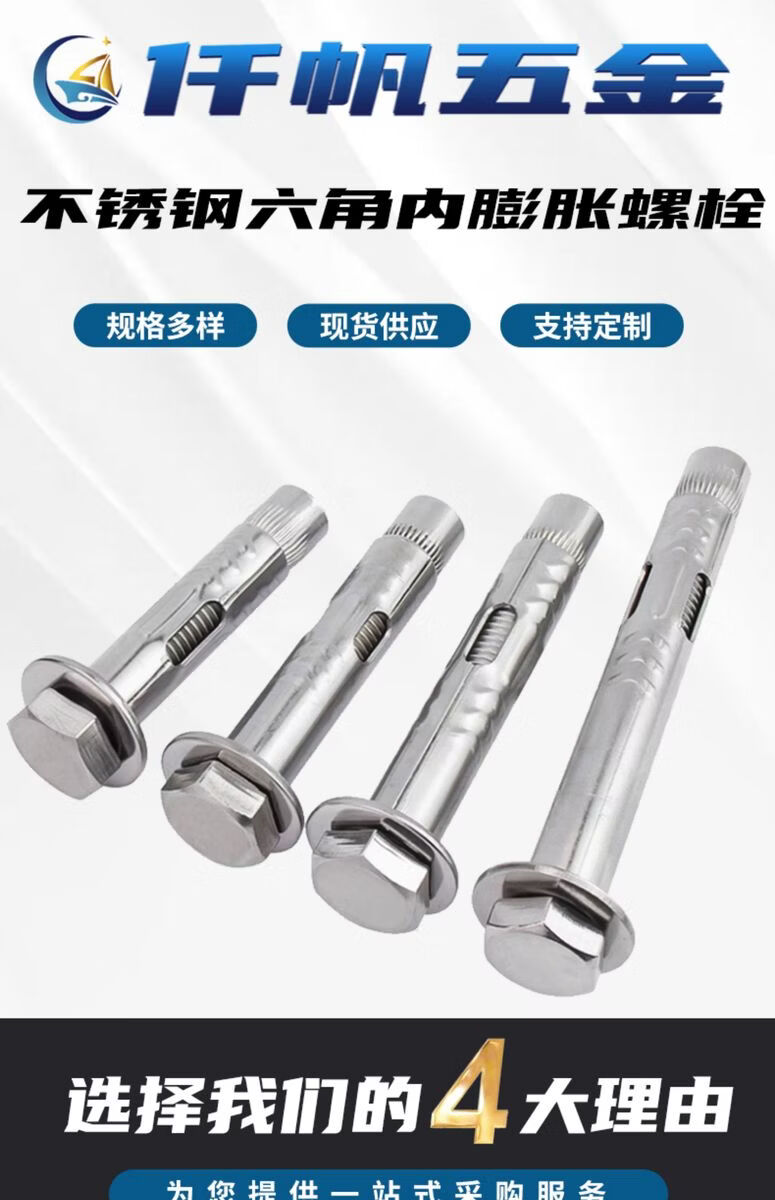 304201 stainless steel external hexagonal internal expansion screw built-in expansion bolt floor implosion pull screw 6 120 60 pieces 304