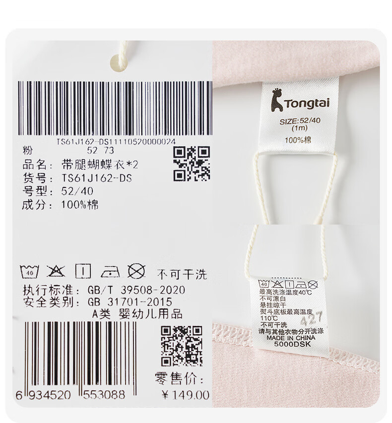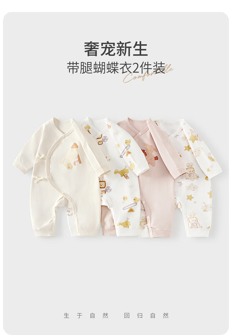 Tongtai (TONGTAI) baby jumpsuit spring and autumn pure cotton newborn clothes newborn baby butterfly romper full moon suit off-white 59cm