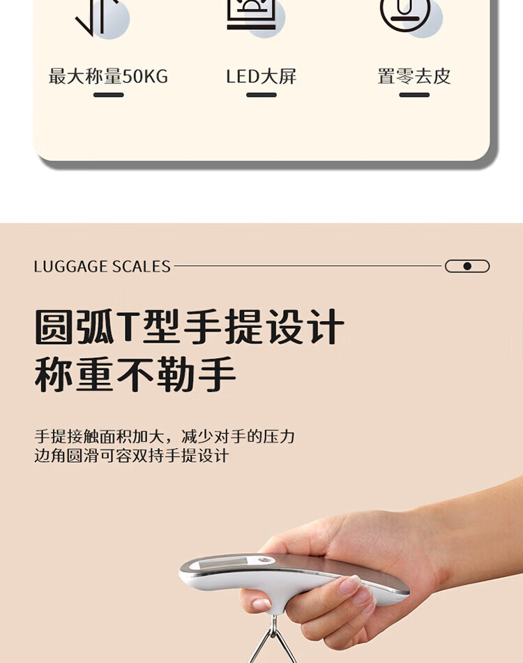 Shantou Lincun Portable Scale Electronic Scale Portable Spring Scale Travel Luggage Scale Express Scale Household Small Hanging Scale Hook Scale 0.05kg Portable Scale-50kg Curved Hook Model