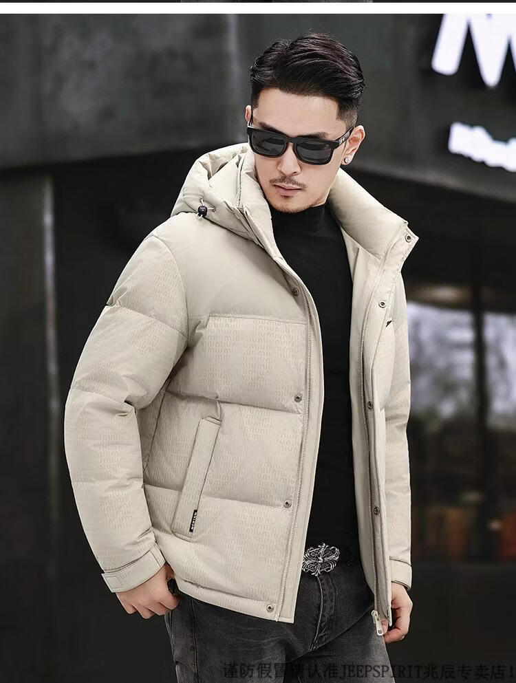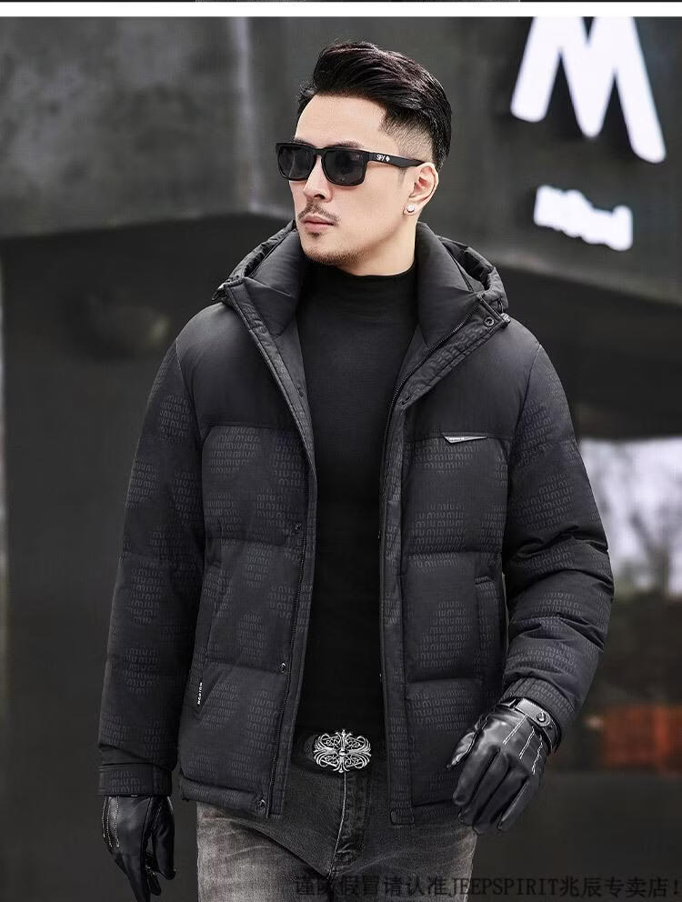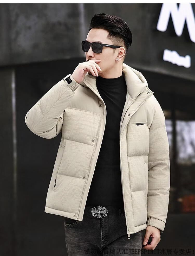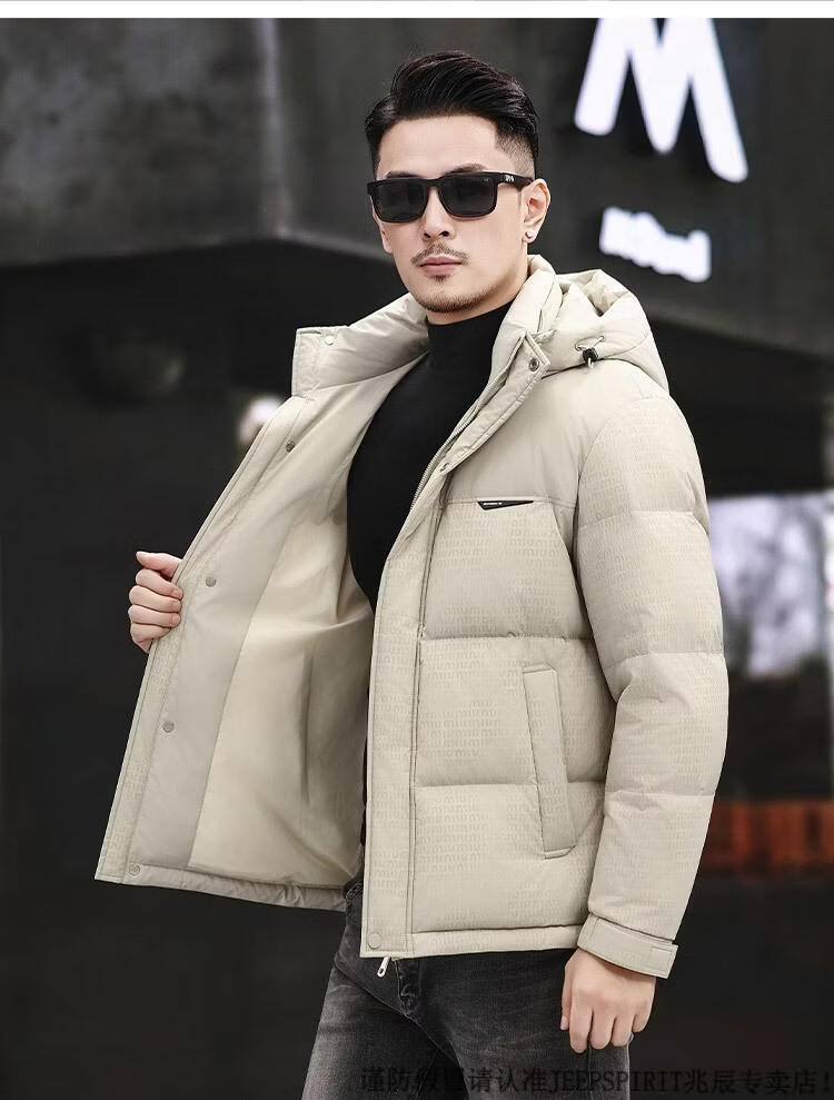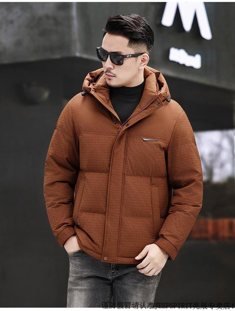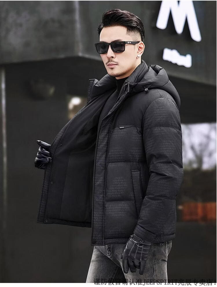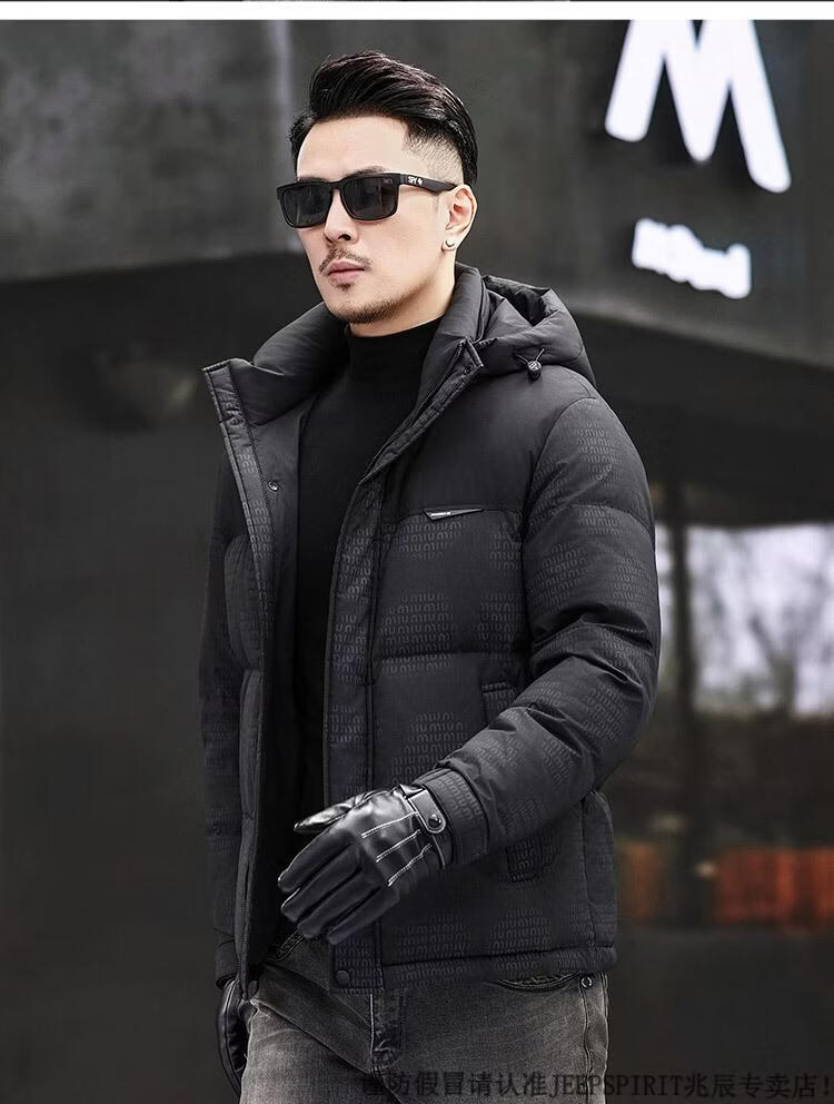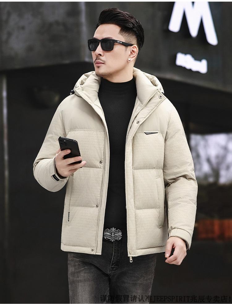 JEEP SPIRIT Men's Removable Hood Down Jacket 2025 New Thickened Trendy Fashion Hooded Casual White Duck Down Warm Jacket Black M 170