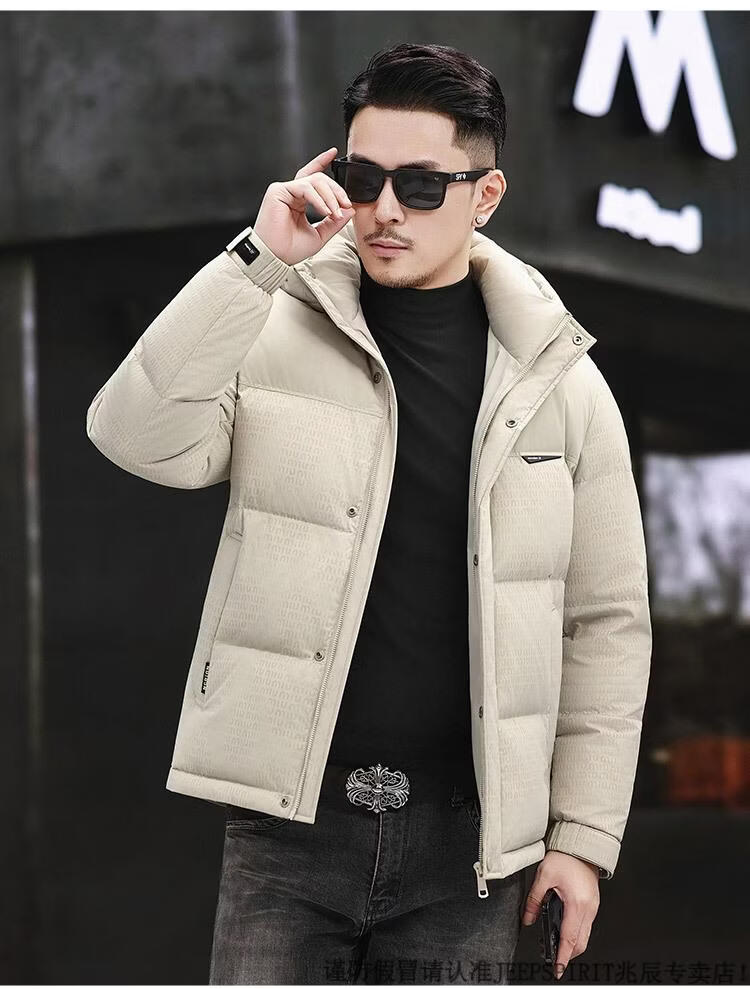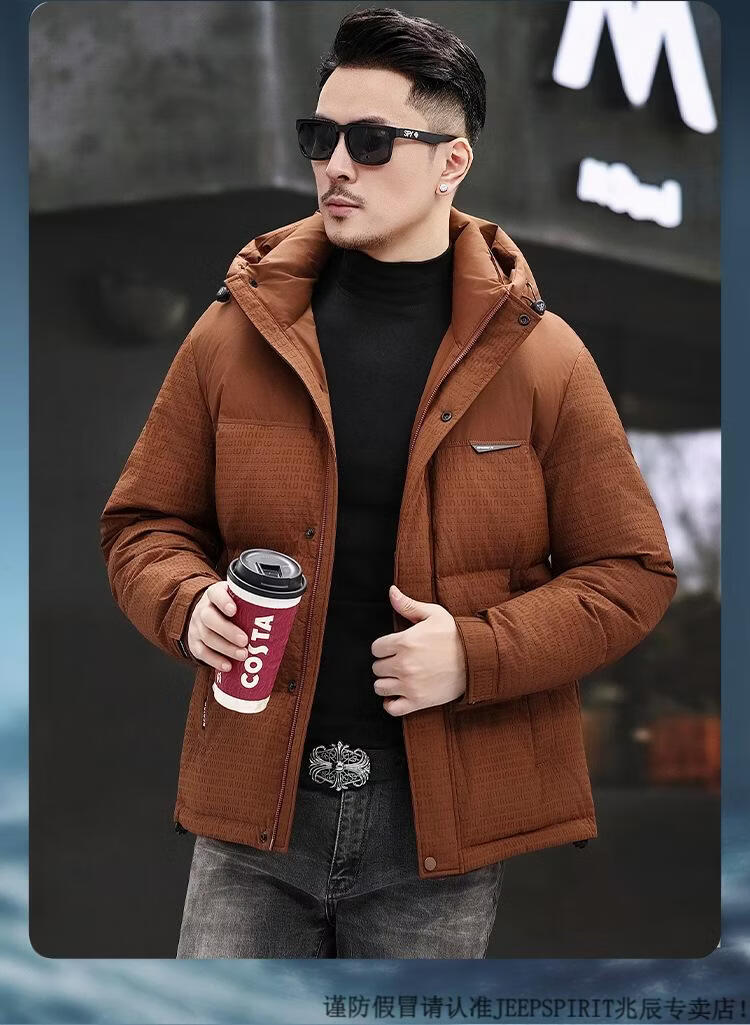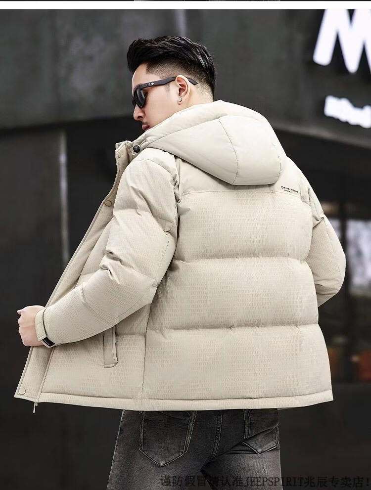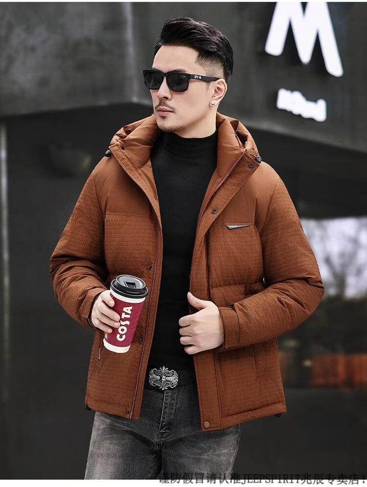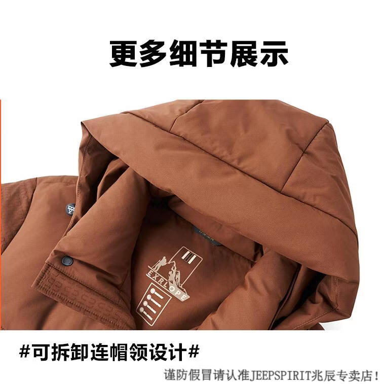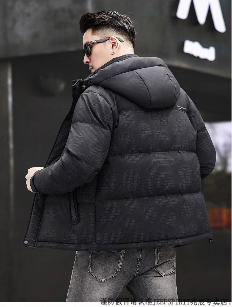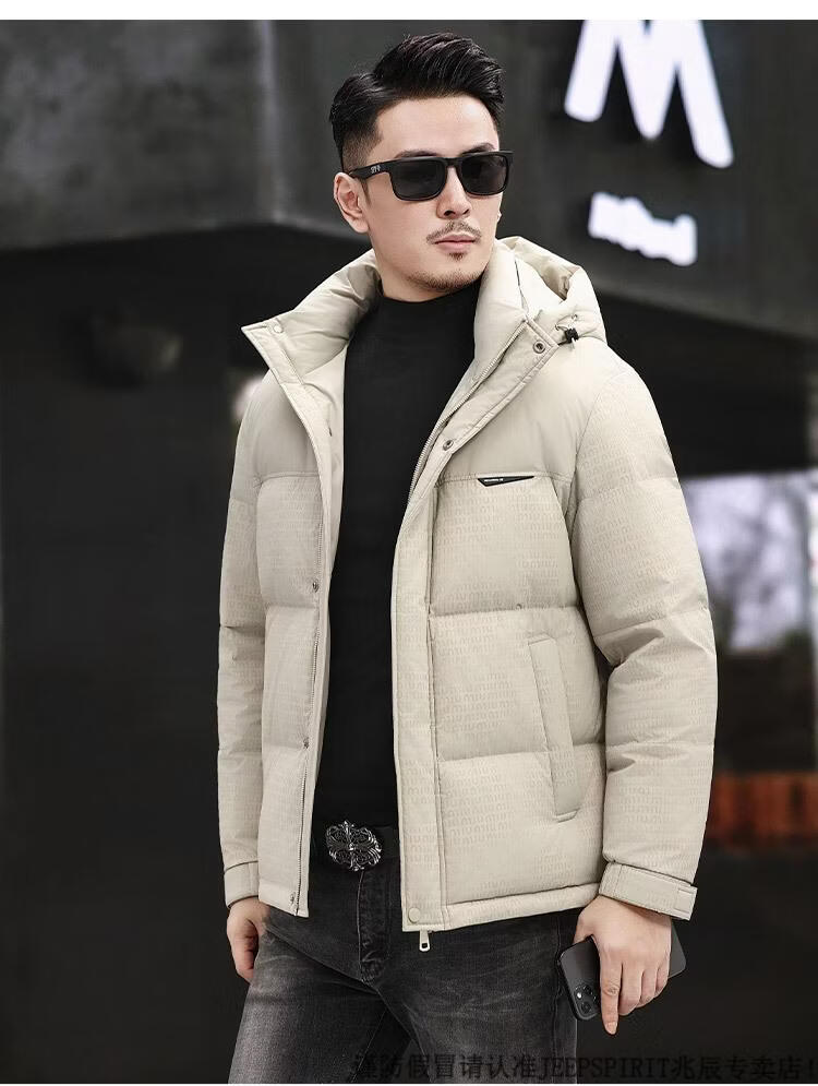 JEEP SPIRIT Men's Removable Hood Down Jacket 2025 New Thickened Trendy Fashion Hooded Casual White Duck Down Warm Jacket Black M 170