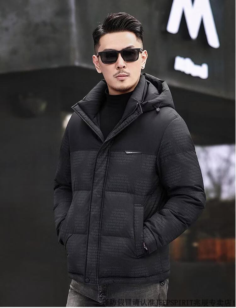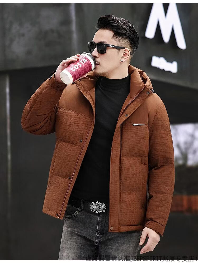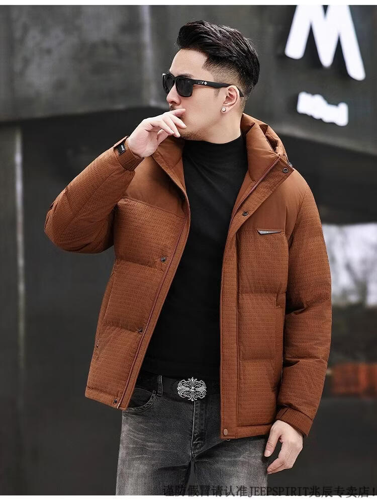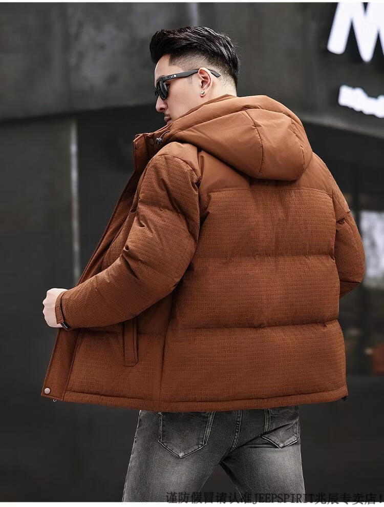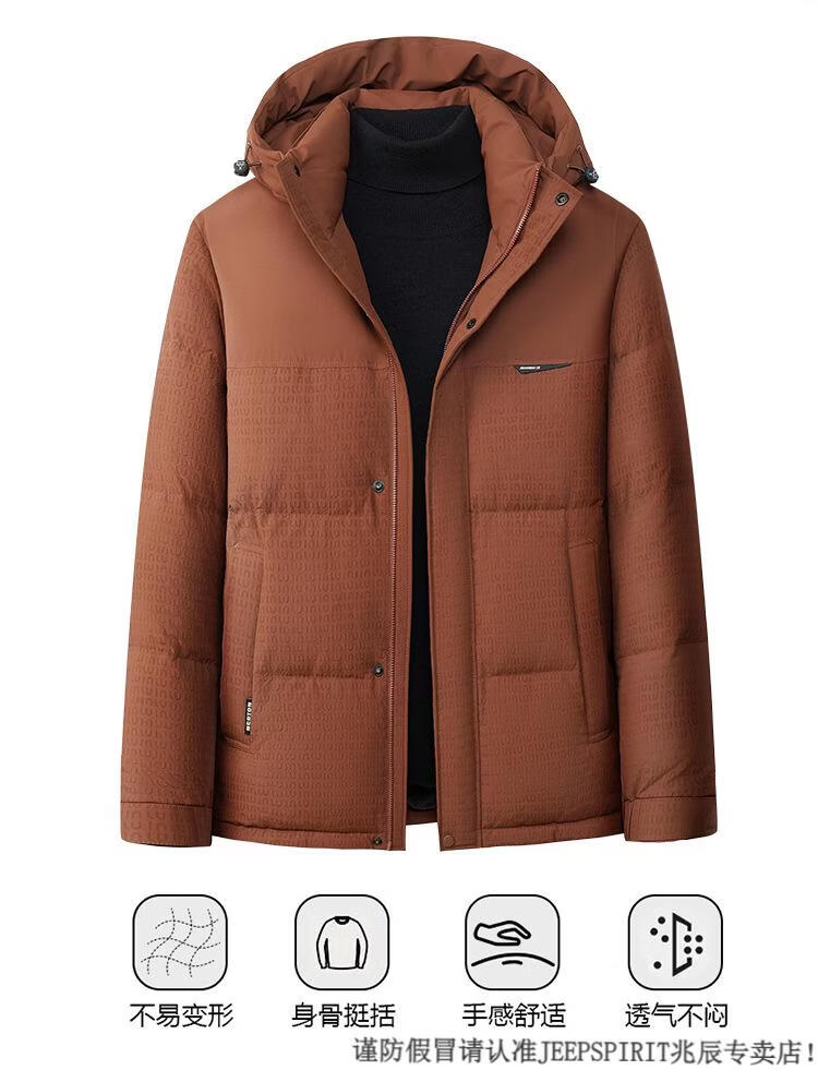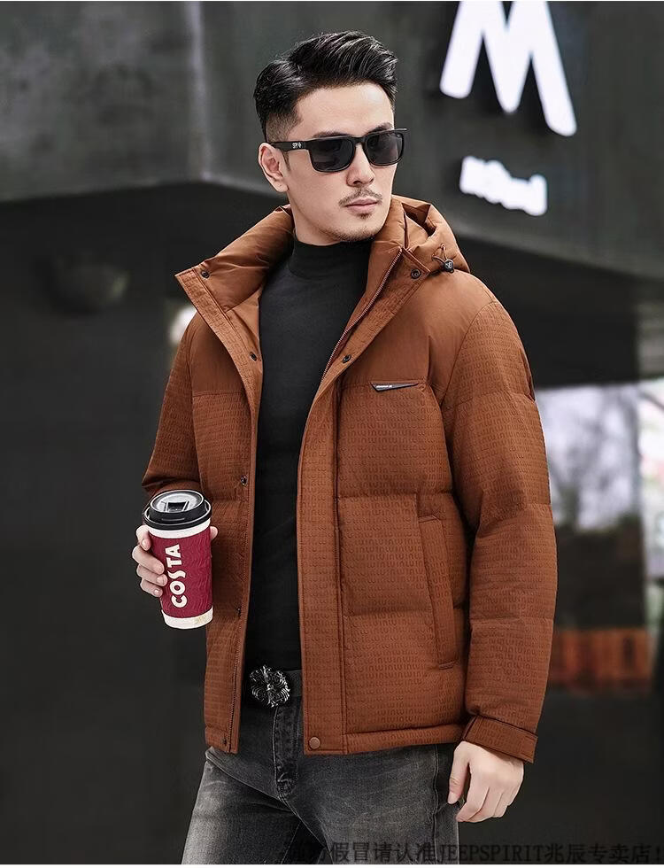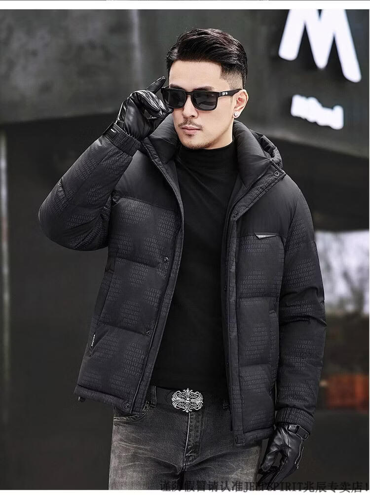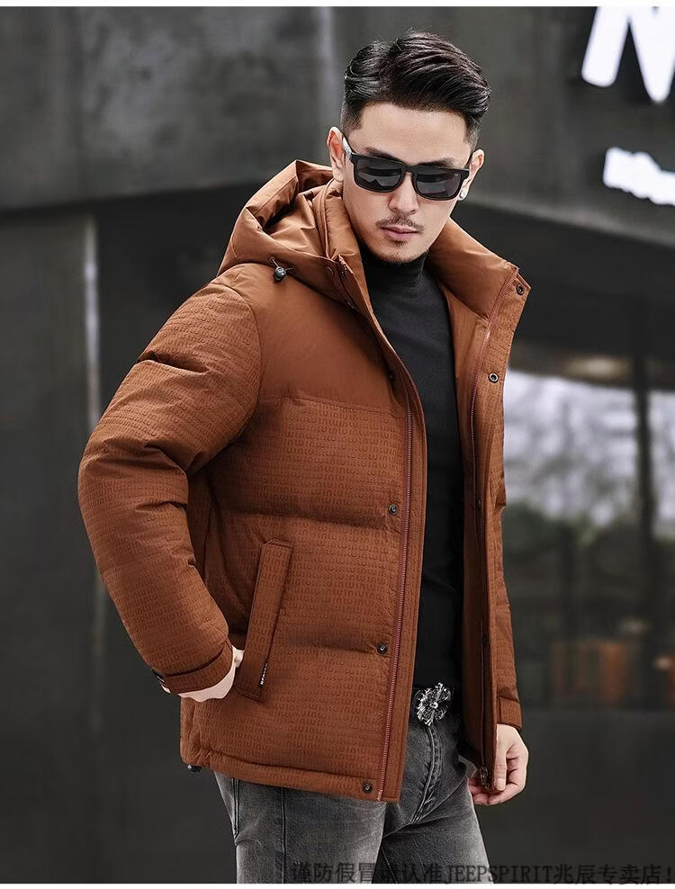 JEEP SPIRIT Men's Removable Hood Down Jacket 2025 New Thickened Trendy Fashion Hooded Casual White Duck Down Warm Jacket Black M 170
