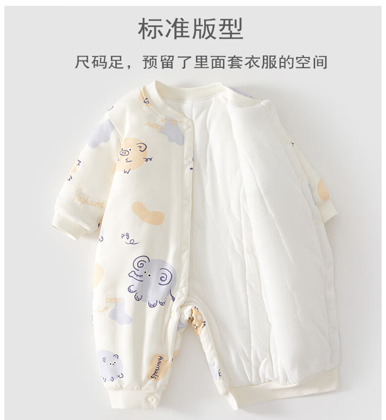 JOYNCLEON Newborn Cotton Clothes Autumn and Winter Newborn Baby Padded Jumpsuit Baby Thickened Cotton Jacket Outer Clothes Winter Style Dinosaur Straight Open 59cm