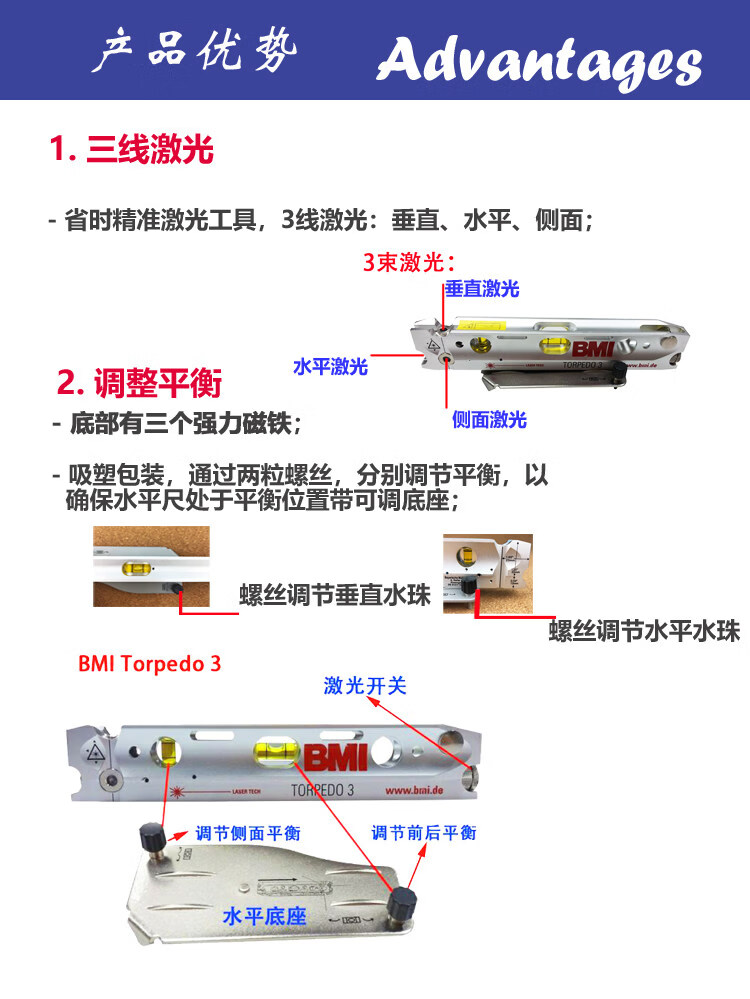 Shangde (D&C) German BMI Torpedo3 three-point torpedo laser level 650024635M-SET Torpedo 3