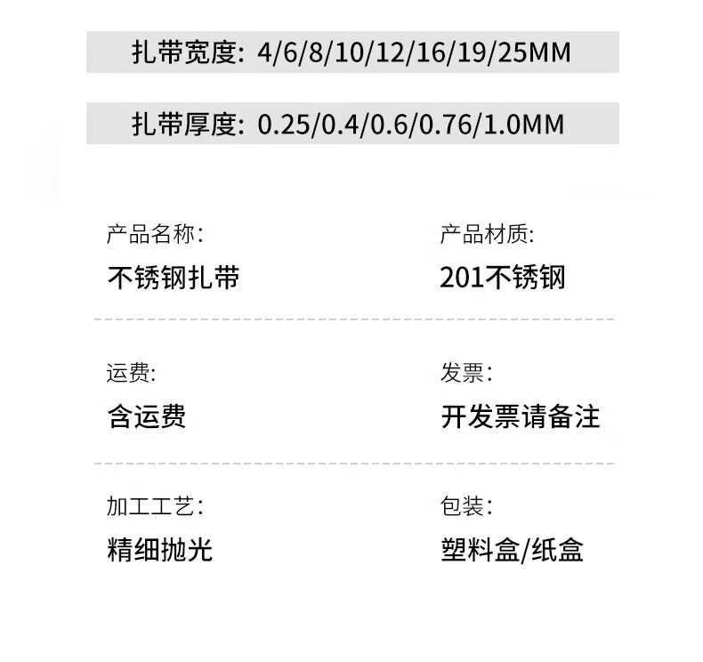 Stainless steel tie 201 stainless steel tie reel with wire pole hoop sign board packing tape marine metal 19*0.76mm (30 meters/roll)