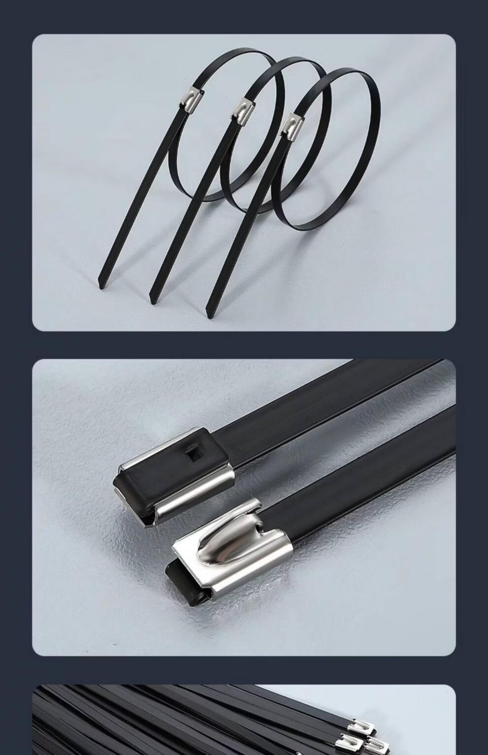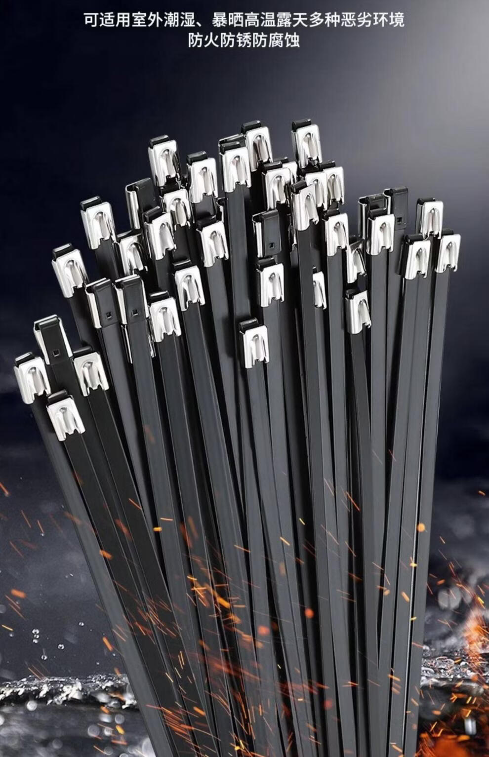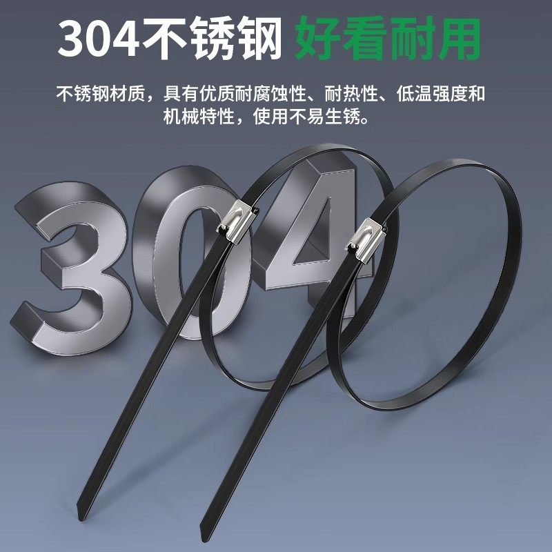 Stainless steel tie German 304 spray-painted stainless steel tensioner high strength anti-aging new self-locking metal resistant 4.6*400mm (100 strands 1 pack) 304 material