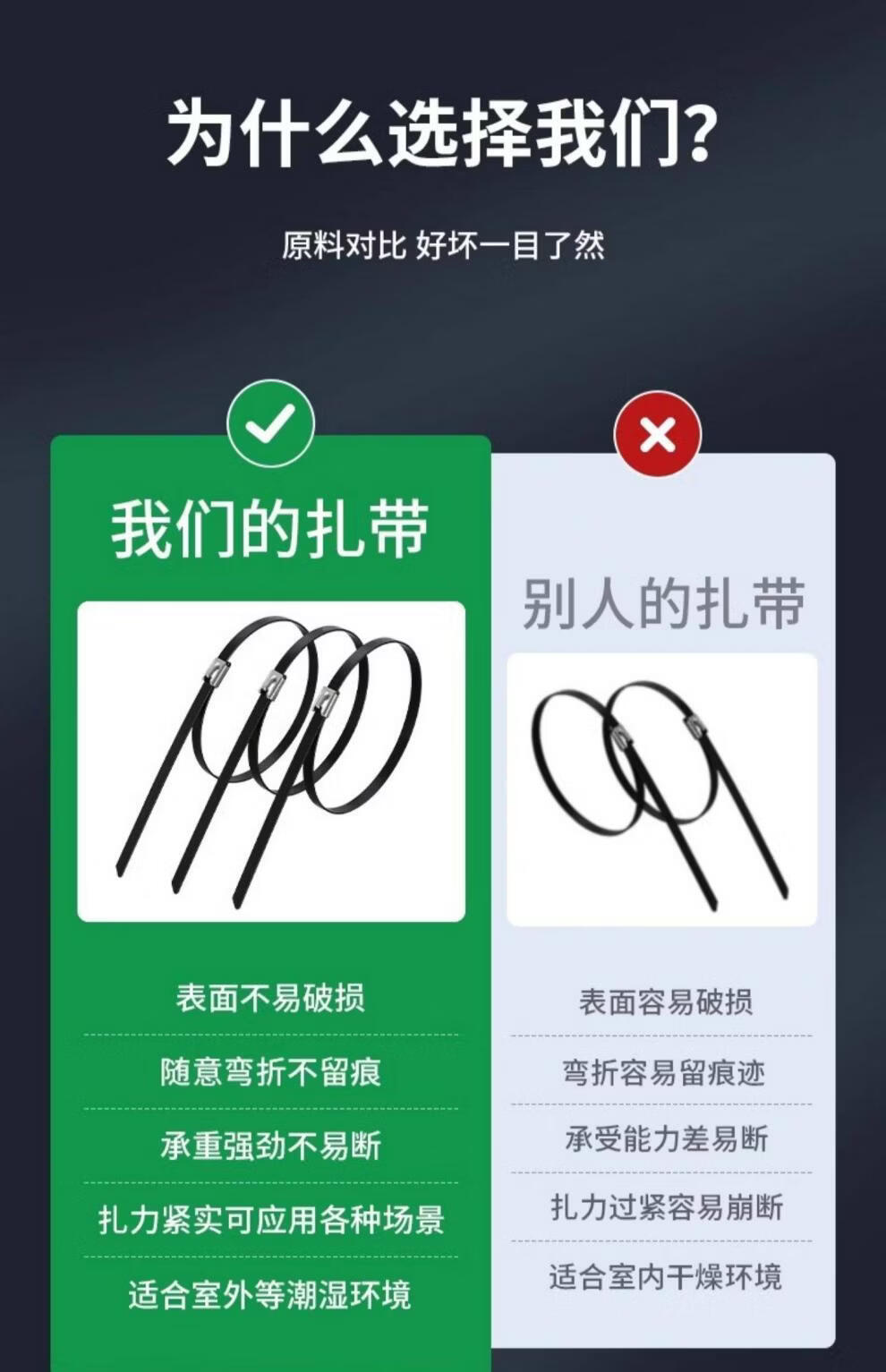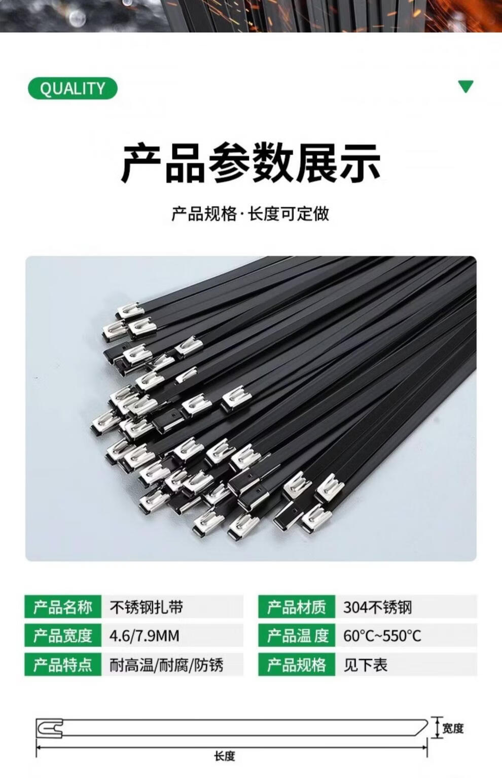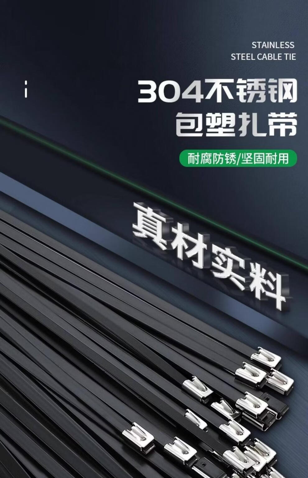 Stainless steel tie German 304 spray-painted stainless steel tensioner high strength anti-aging new self-locking metal resistant 4.6*400mm (100 strands 1 pack) 304 material