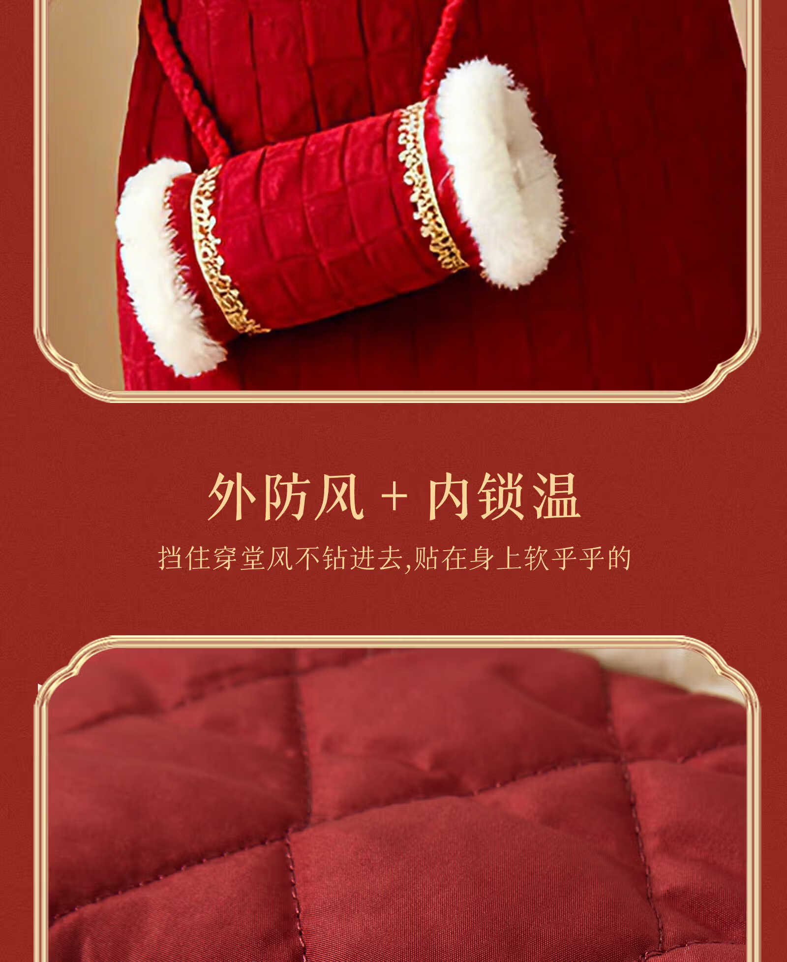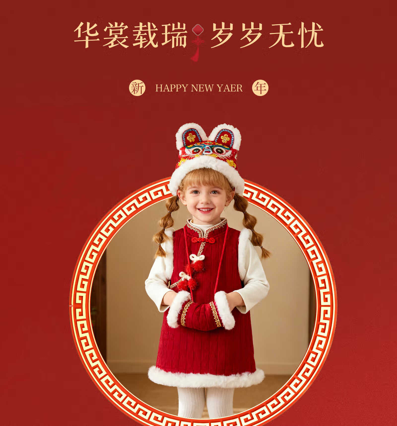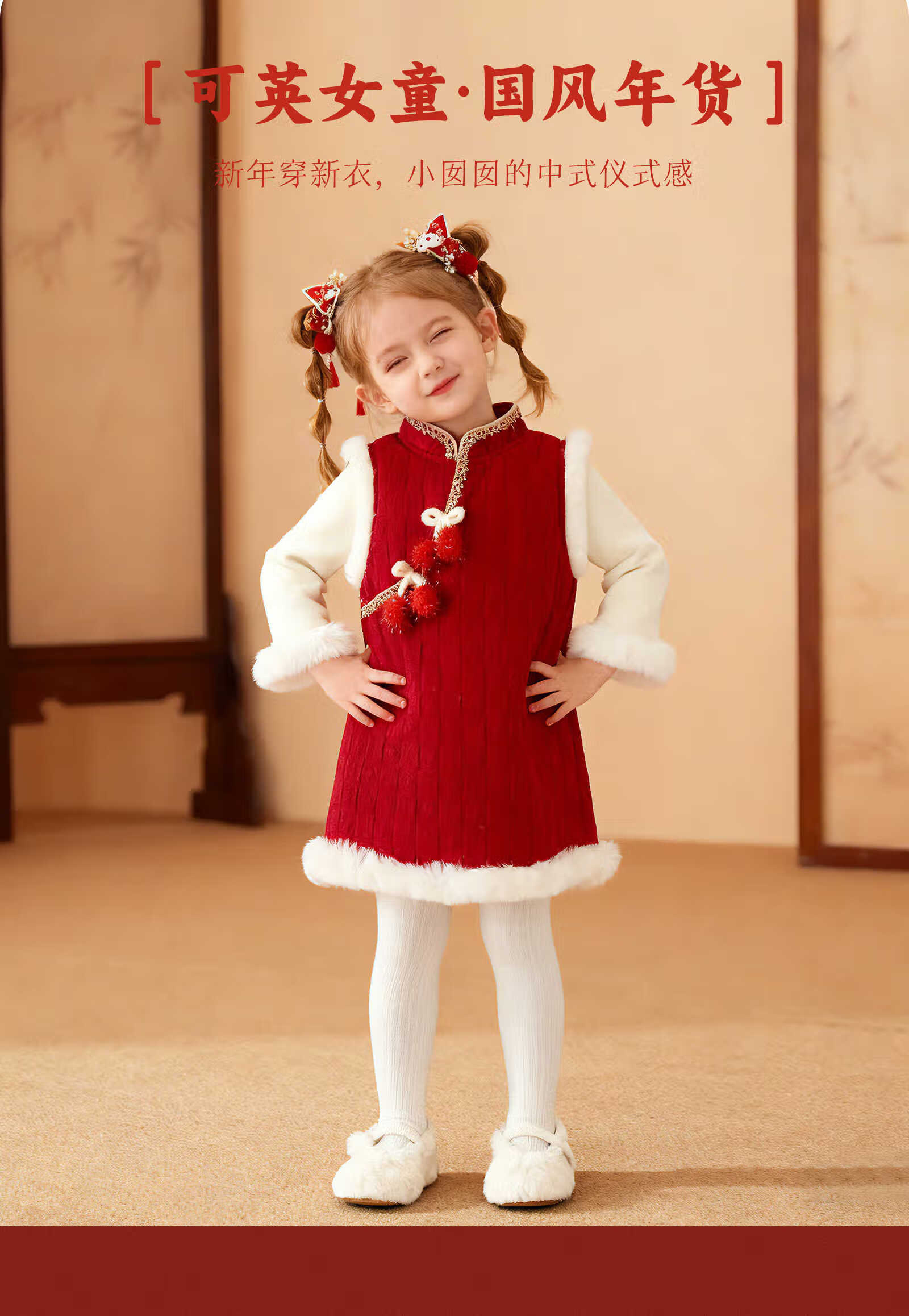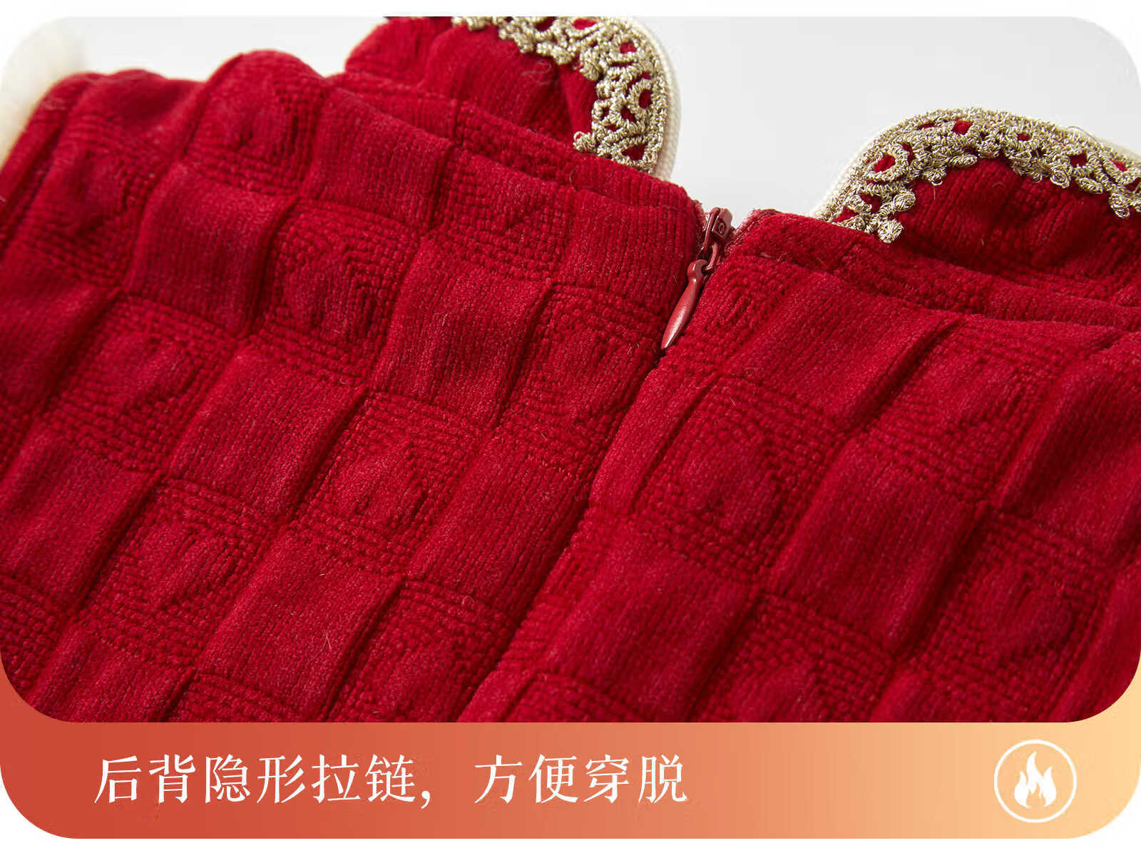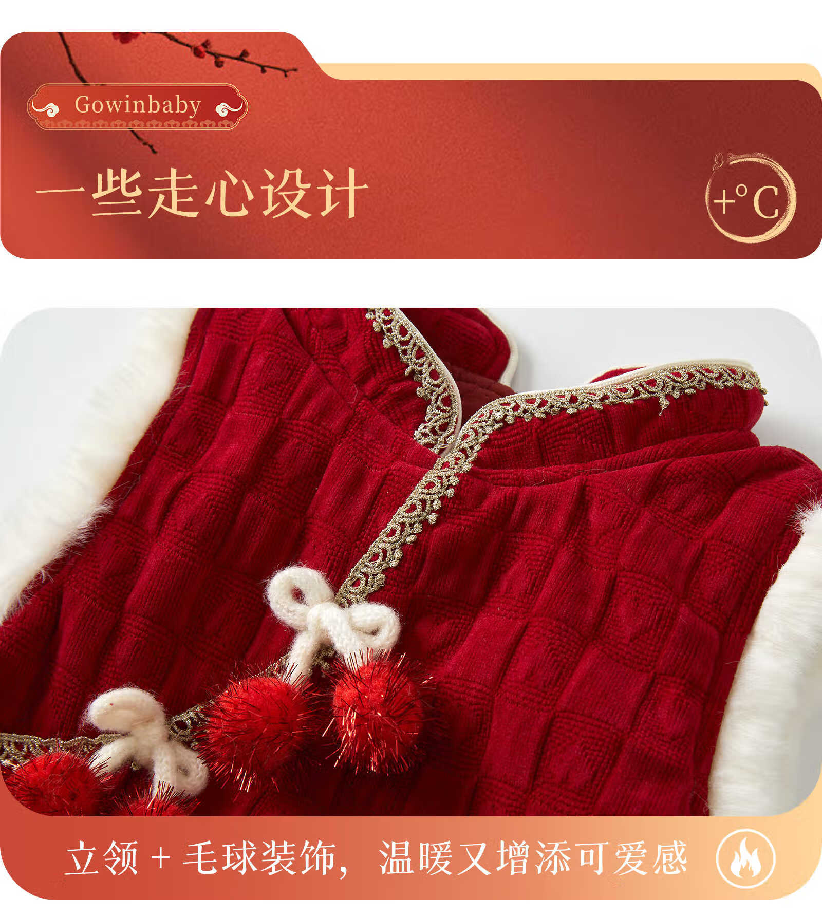 Keying GOWINBABY children's clothing girls vest dress warm 2025 winter new girl dress national style baby girl New Year's greetings dress thick red 90 (suitable for height 80cm-90cm)