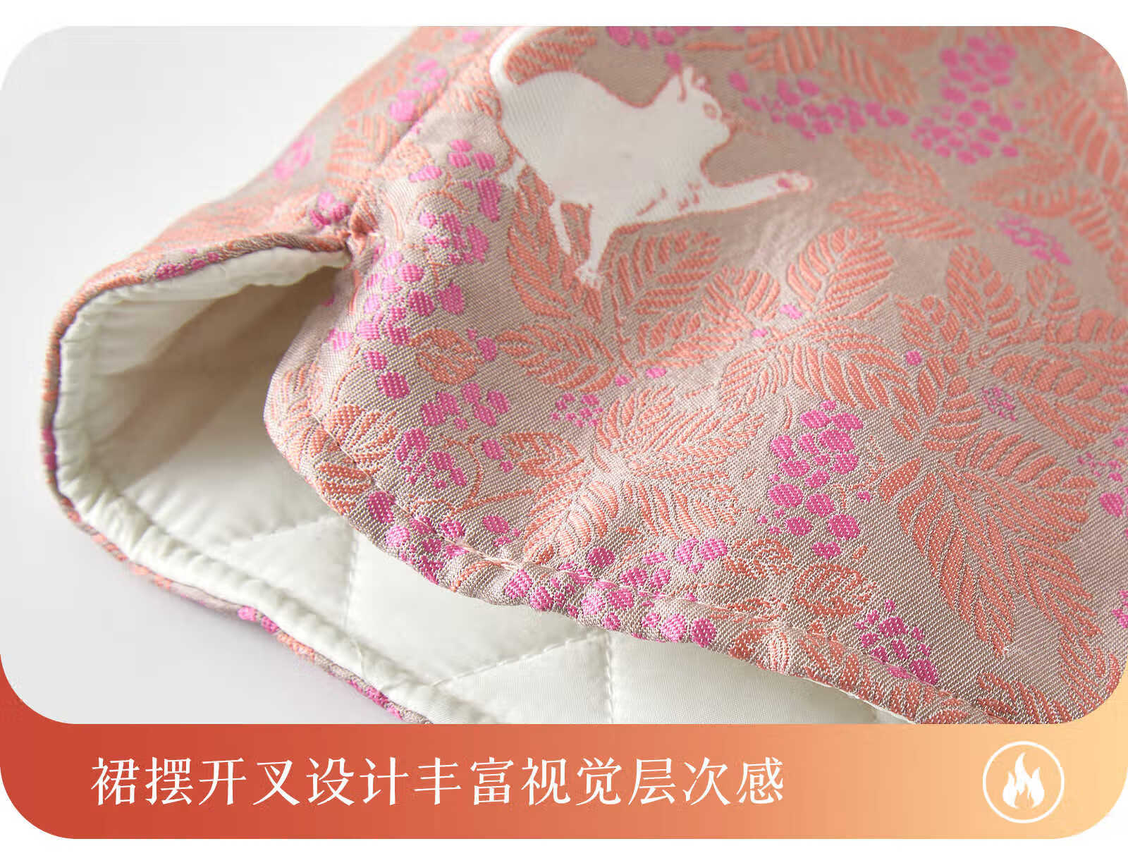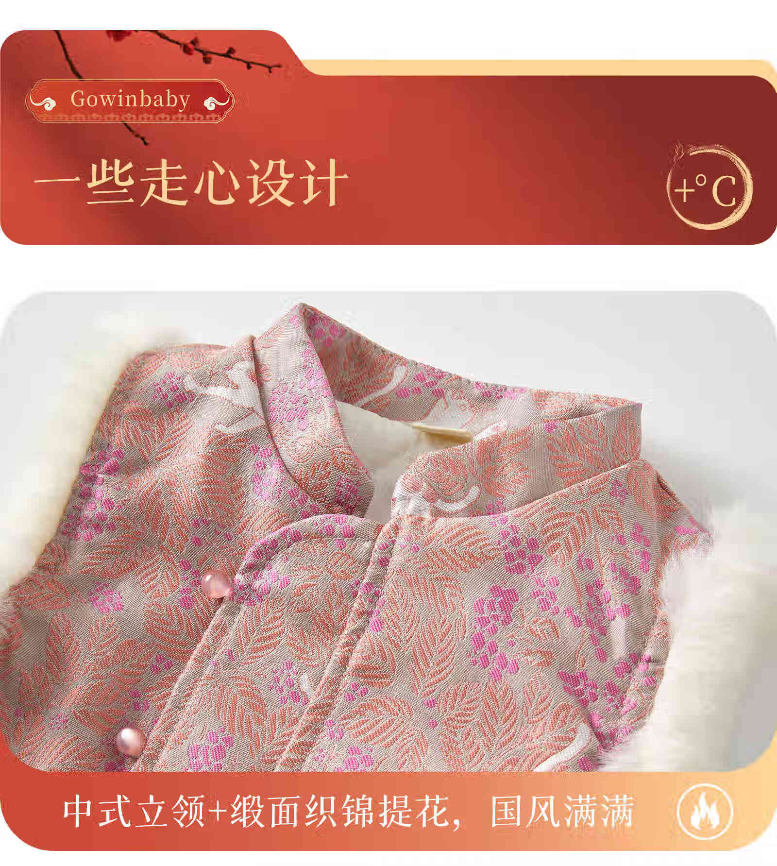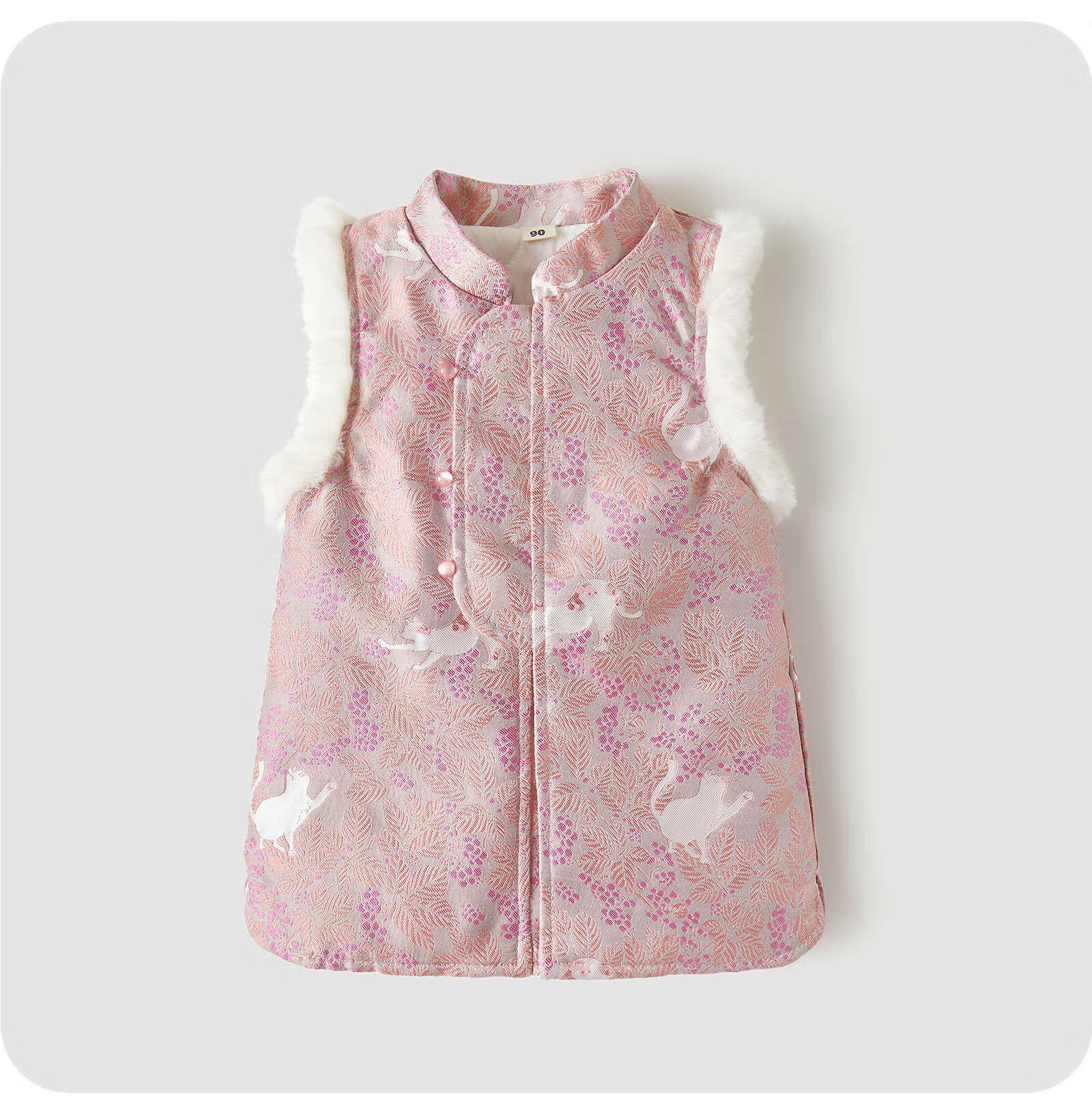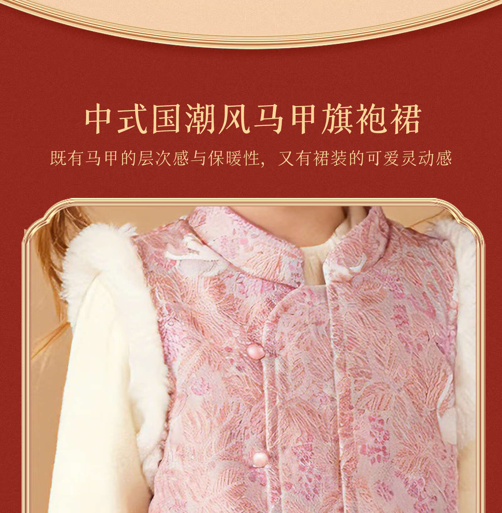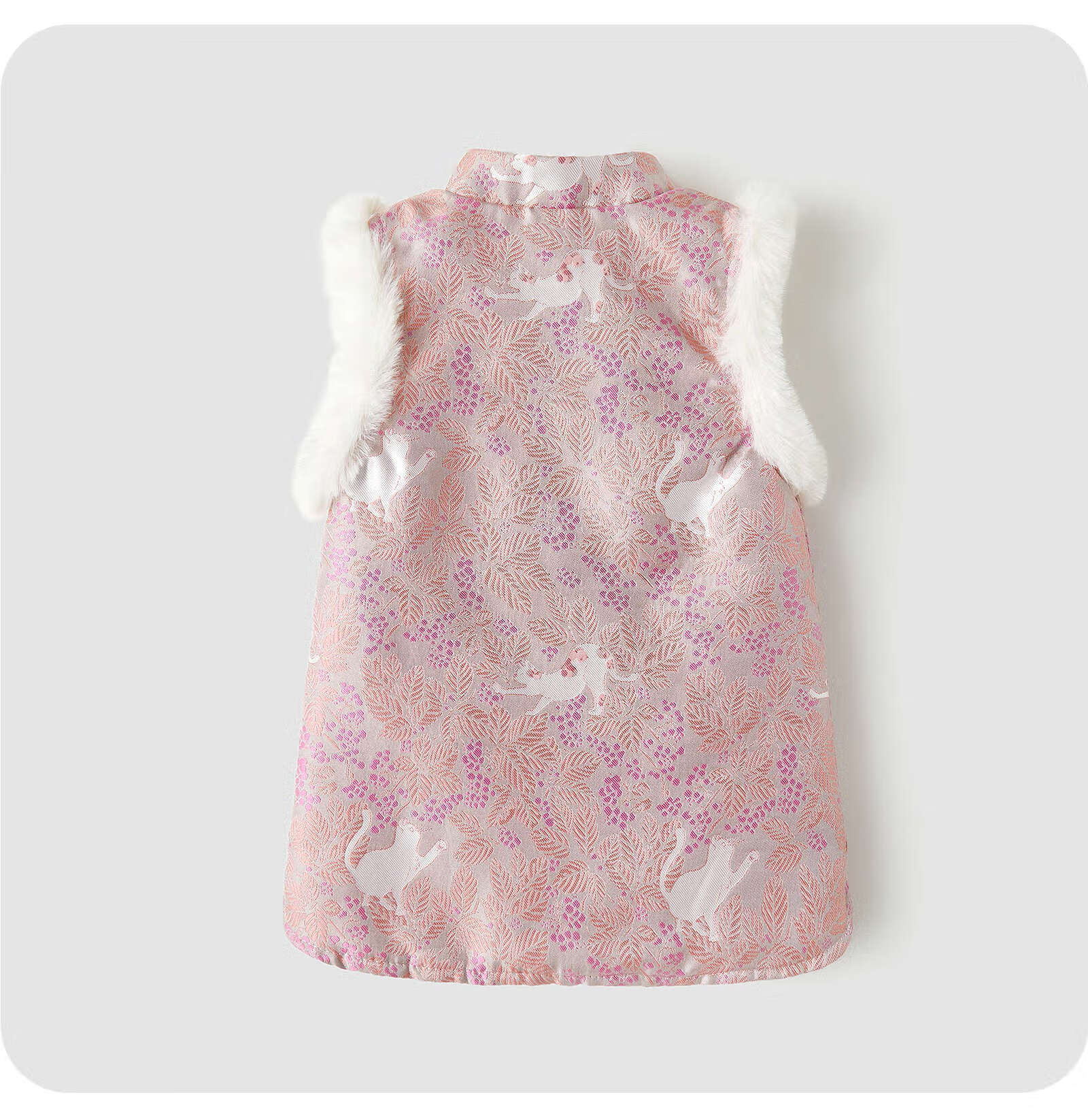 Keying GOWINBABY children's clothing girls' cheongsam skirt thickened 2025 winter girl dress new Chinese style baby girl New Year national style vest dress pink 90 (suitable for height 80cm-90cm)