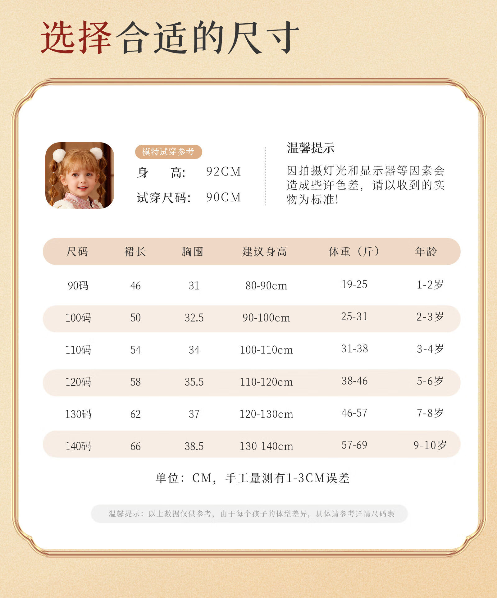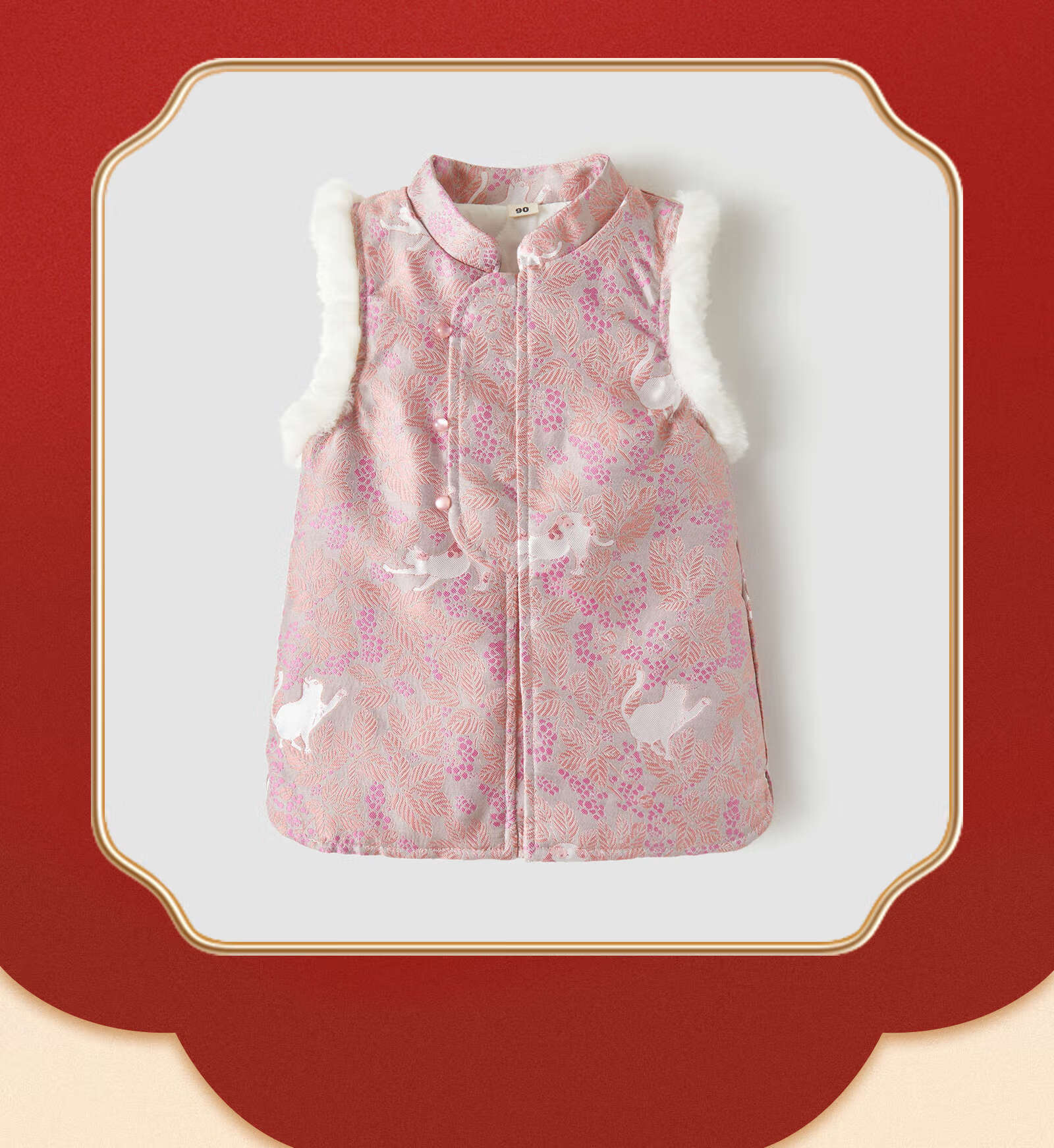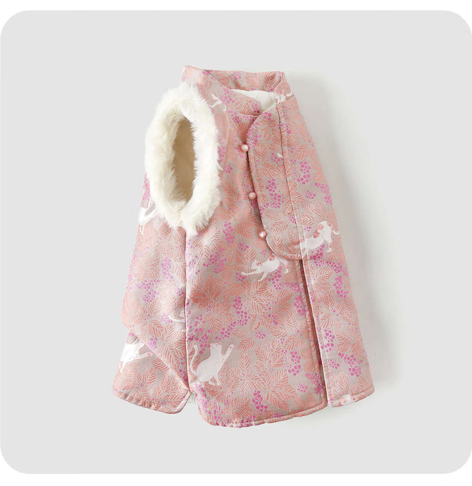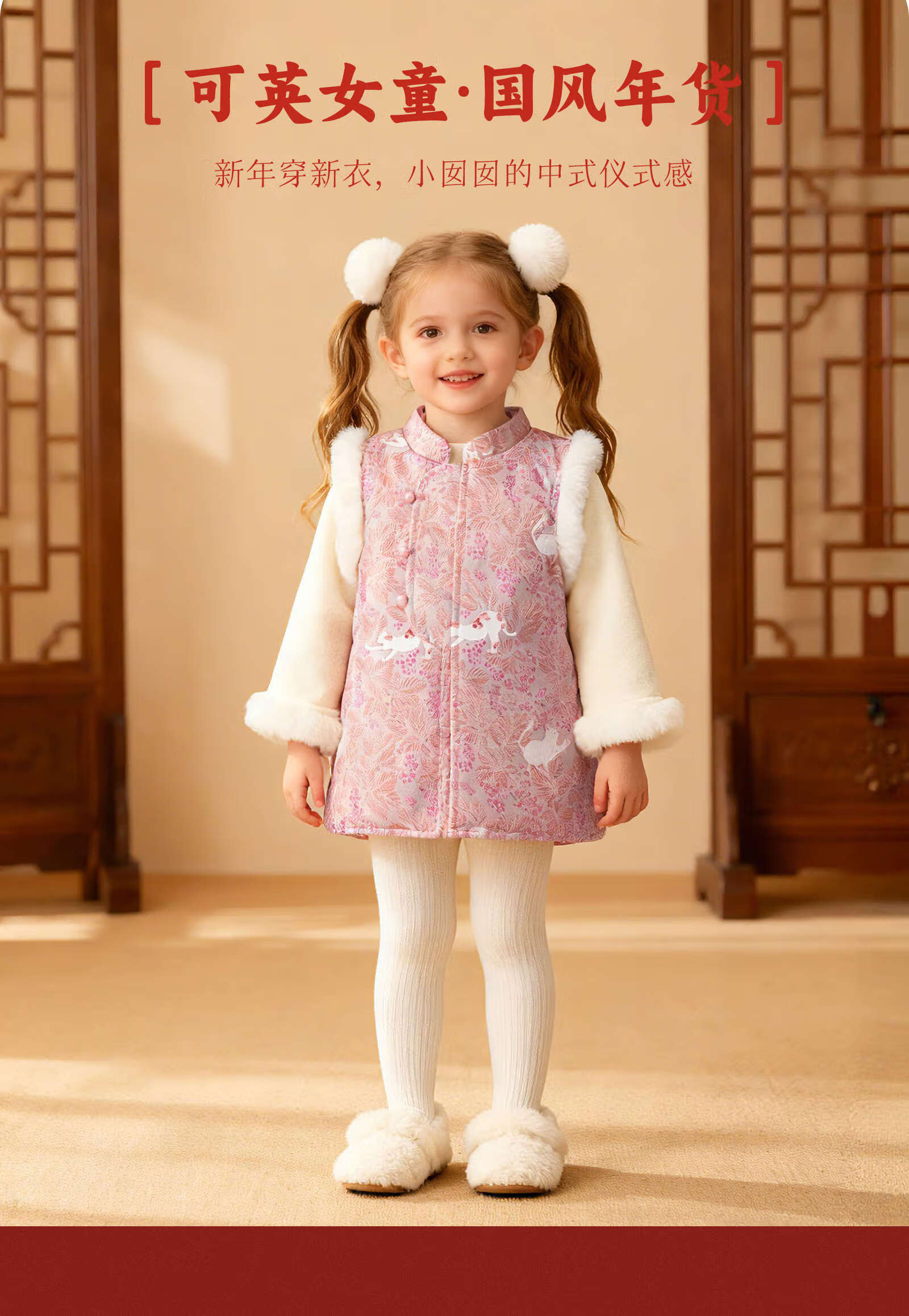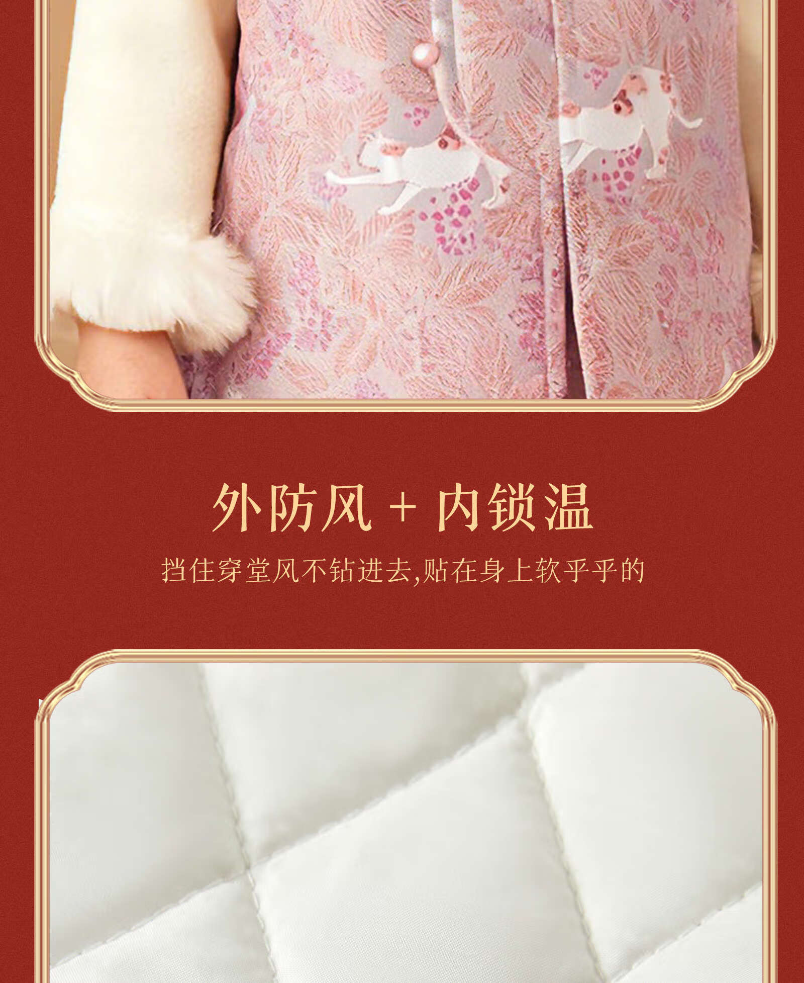 Keying GOWINBABY children's clothing girls' cheongsam skirt thickened 2025 winter girl dress new Chinese style baby girl New Year national style vest dress pink 90 (suitable for height 80cm-90cm)