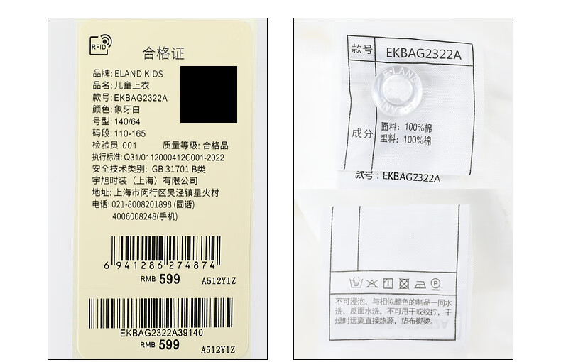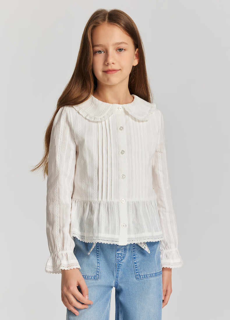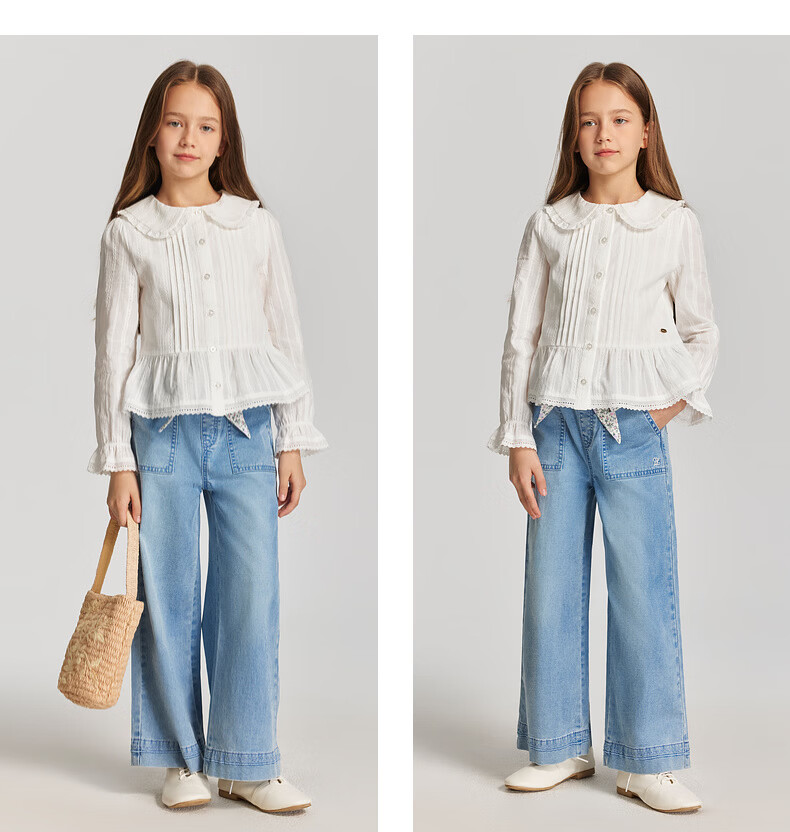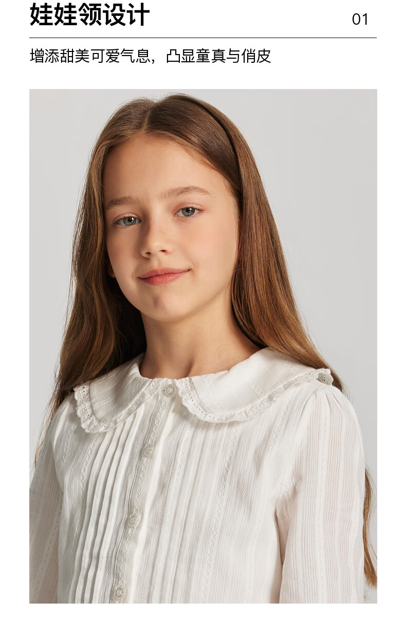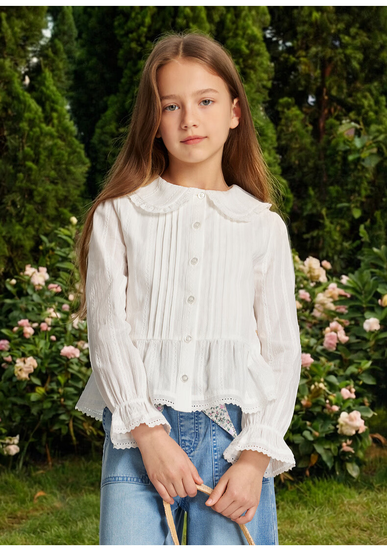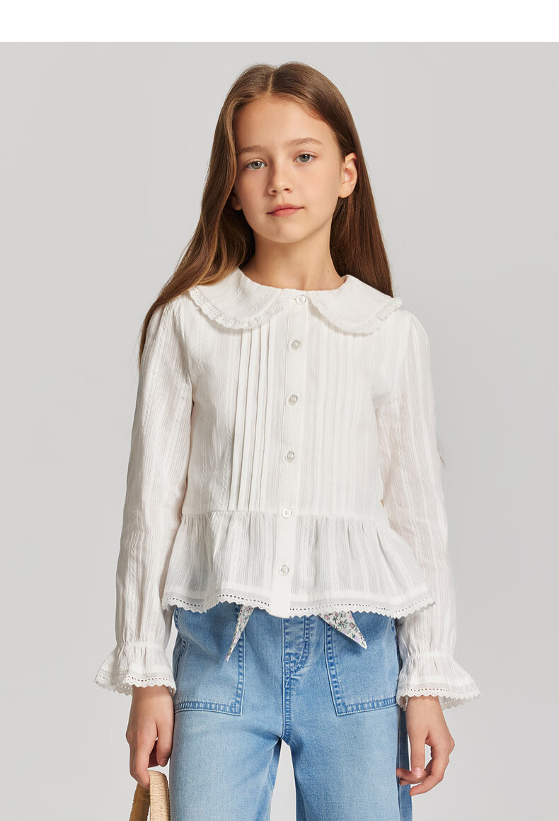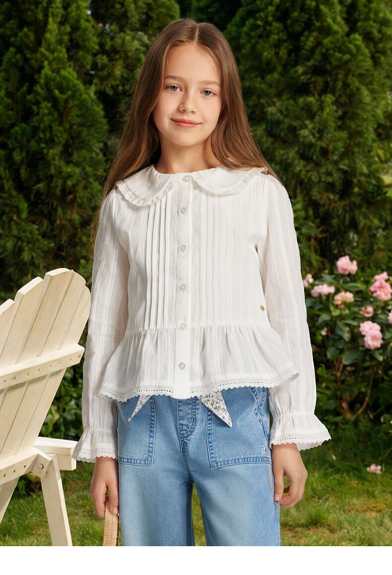 E LAND KIDS children's clothing girls' shirt 2026 spring new French preppy style doll collar top Ivory ivory/39 165