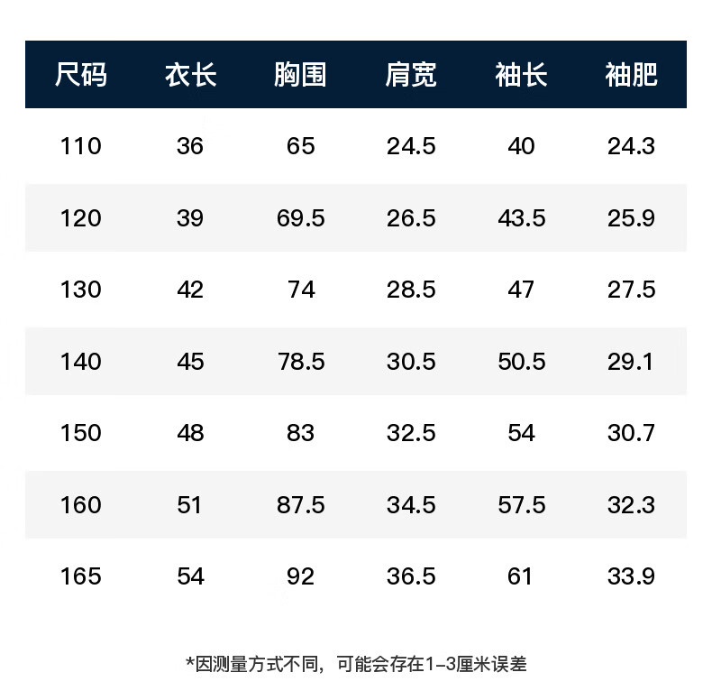 China (cm) 165 / 88-90 170 / 96-98 175 / 108-110 180 / 118-122 185 / 126-130