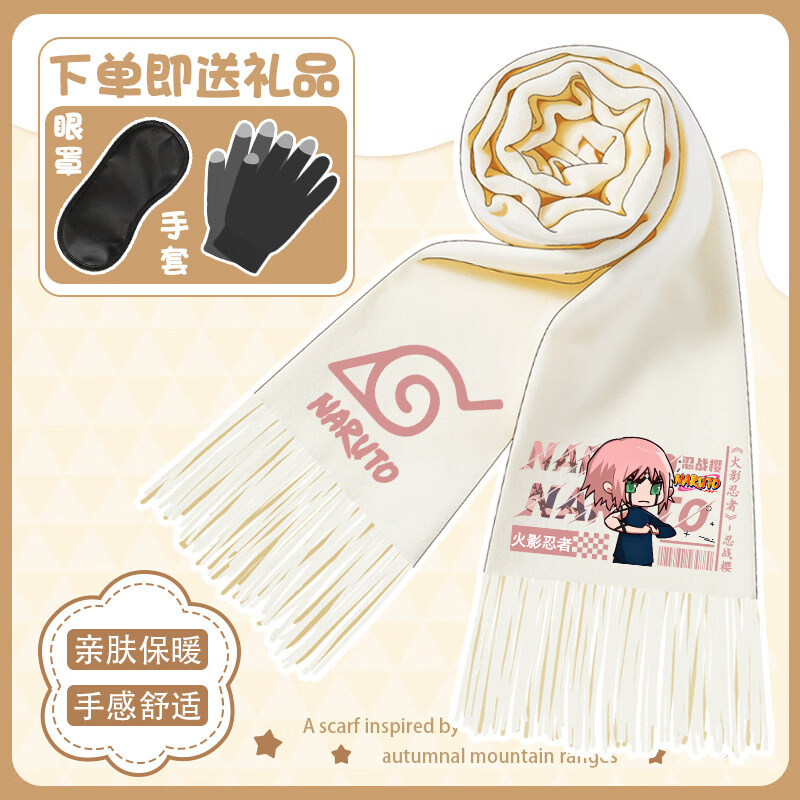 Yunqiang Naruto Winter Scarf Scarf Cartoon Q Version Sasuke Naruto Obito Cold Warm Printed Versatile Scarf Gray-X-89-Kuroto A + Eye Mask + Gloves
