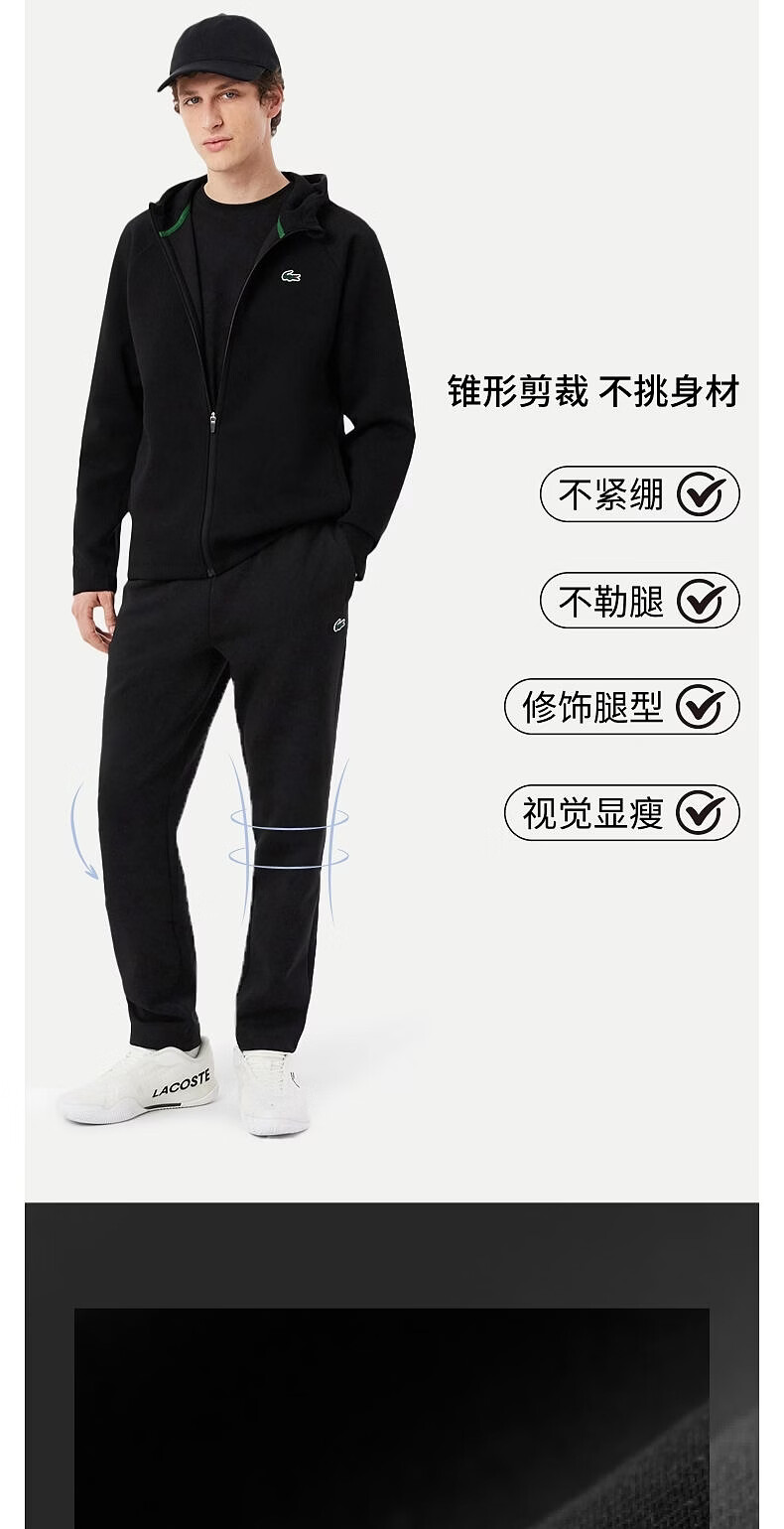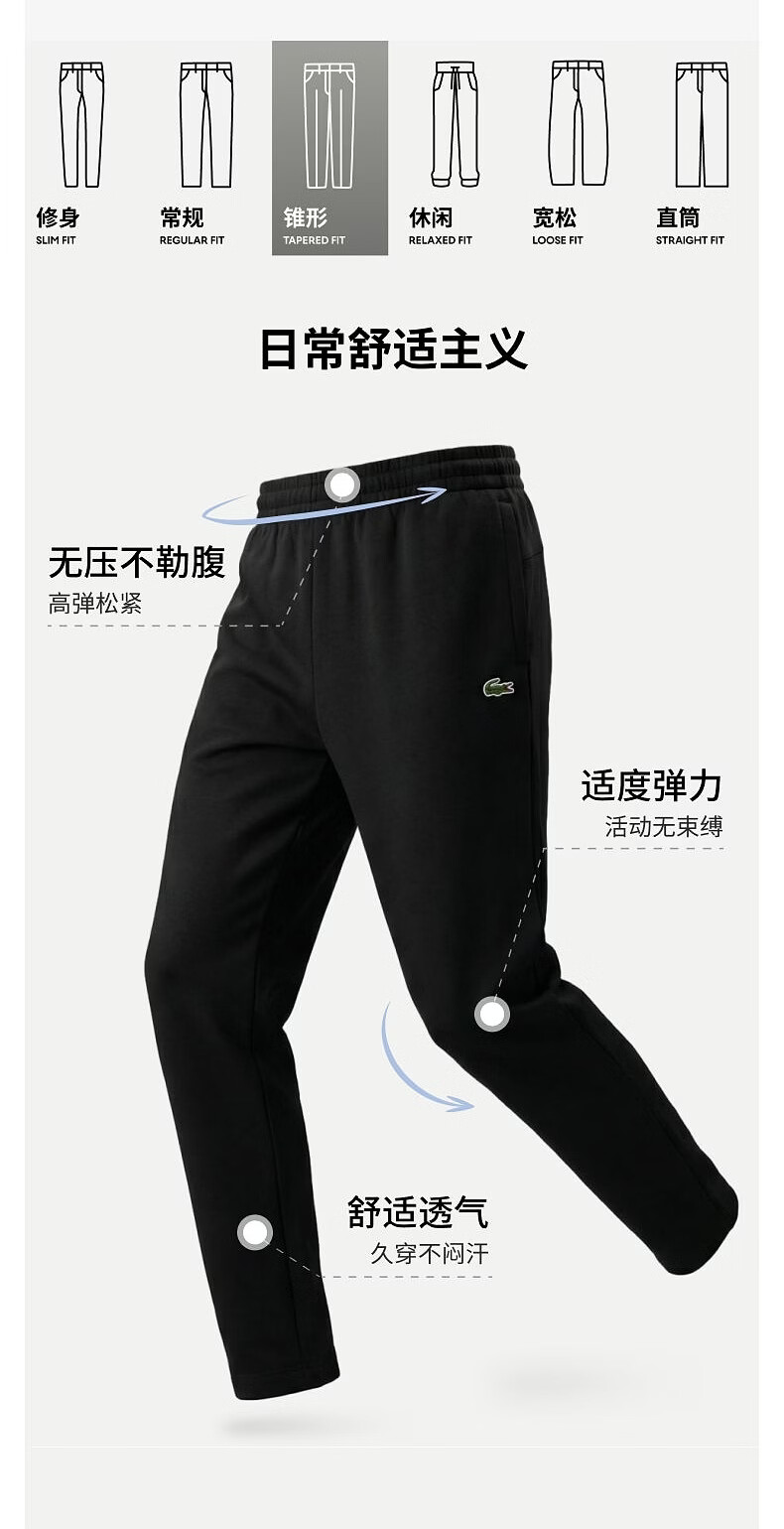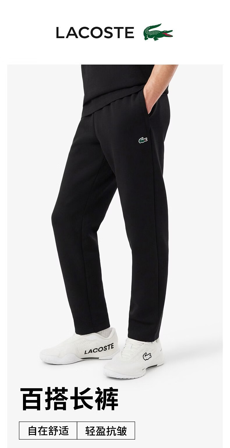 LACOSTE French crocodile men's 26 spring and summer new elastic simple and comfortable tapered sports trousers | XH0142 031/black M 4
