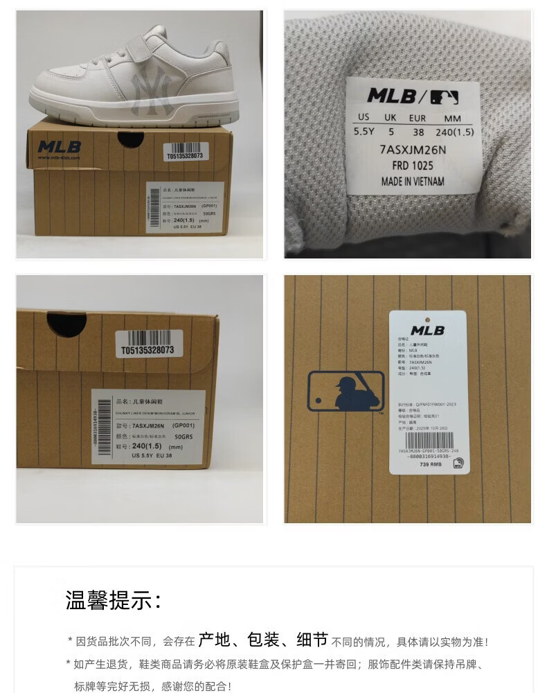 MLB Official Sports Shoes Women's Shoes 26 New Children's Sports Shoes Presbyopia Casual Shoes Fashion Shoes 7ASXJM26N New York Yankees/Gray 37 235mm