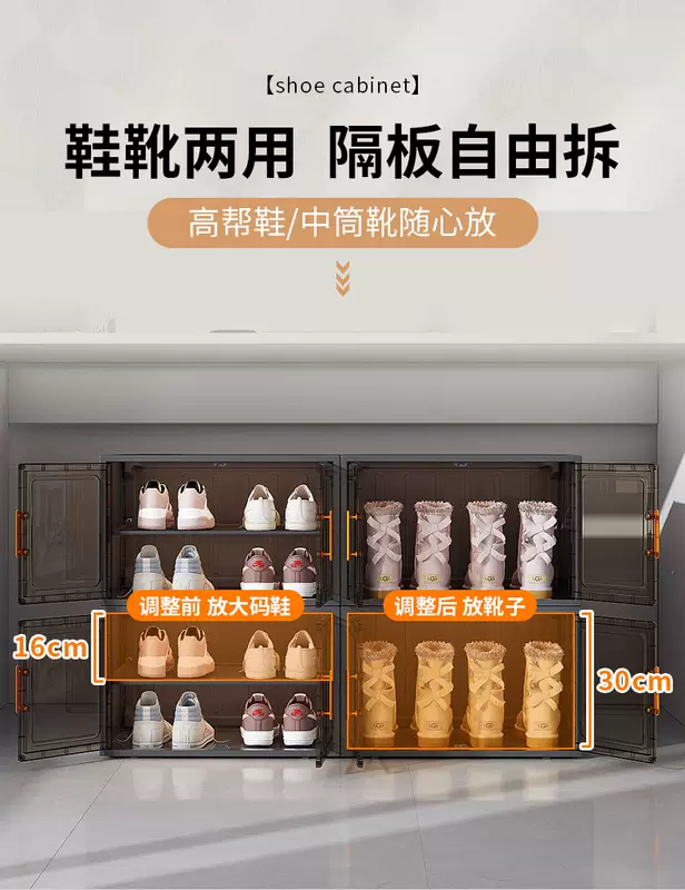 Yusenyi Shoe Box Storage Box Transparent Shoe Storage Artifact Dormitory Under Desk Shoe Cabinet Door Office Small Dustproof Shoe Rack (Double Doors with Handles) Thickened 2 Columns 6 Layers 12 Grids Gray Holds 24 Pairs of Large Size Shoes