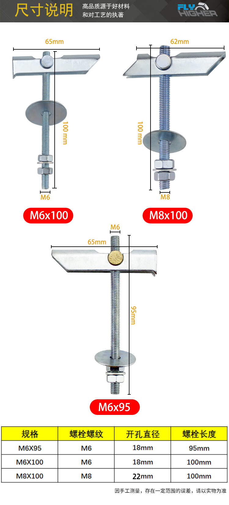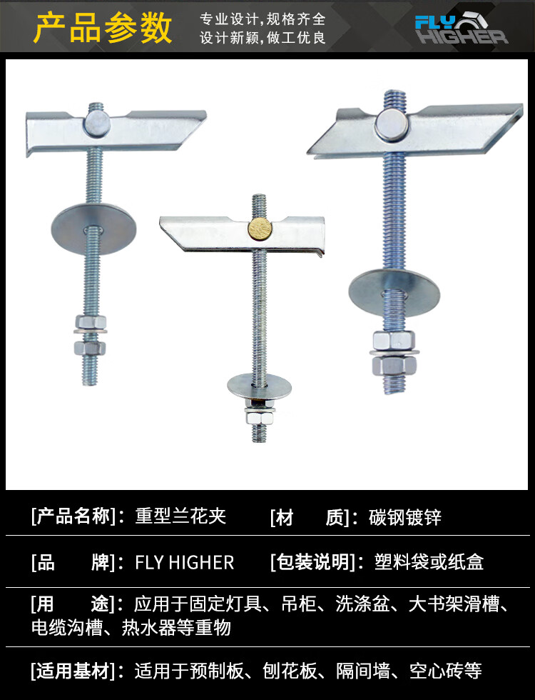 Jieyimao Heavy-duty Orchid Clamp Iron Aircraft Prefabricated Board Hollow Brick Air Conditioning Screw Ceiling Heavy Object Fixing Expansion Bolt M6 Clip with Nut Washer 10 Pcs