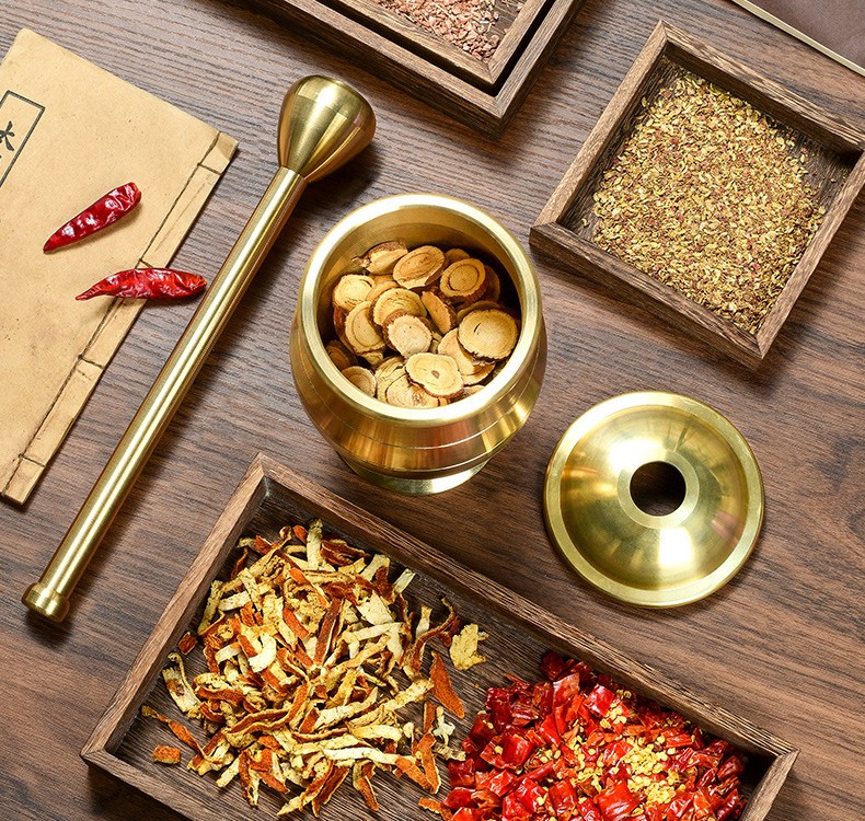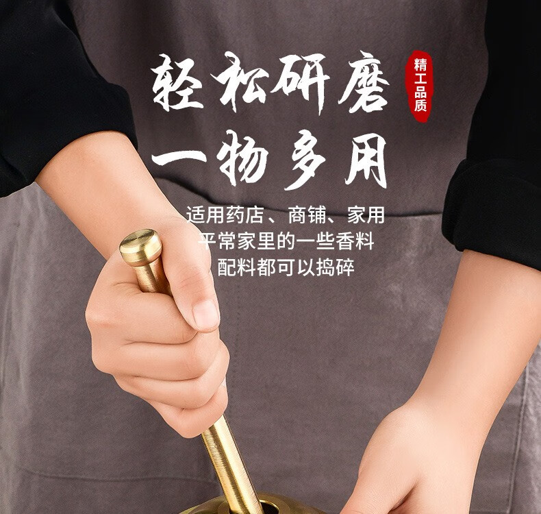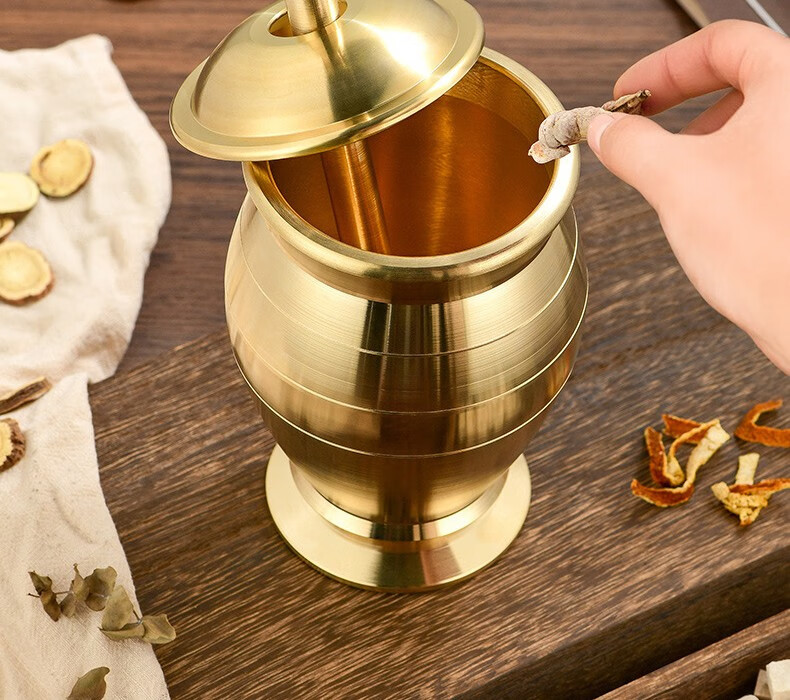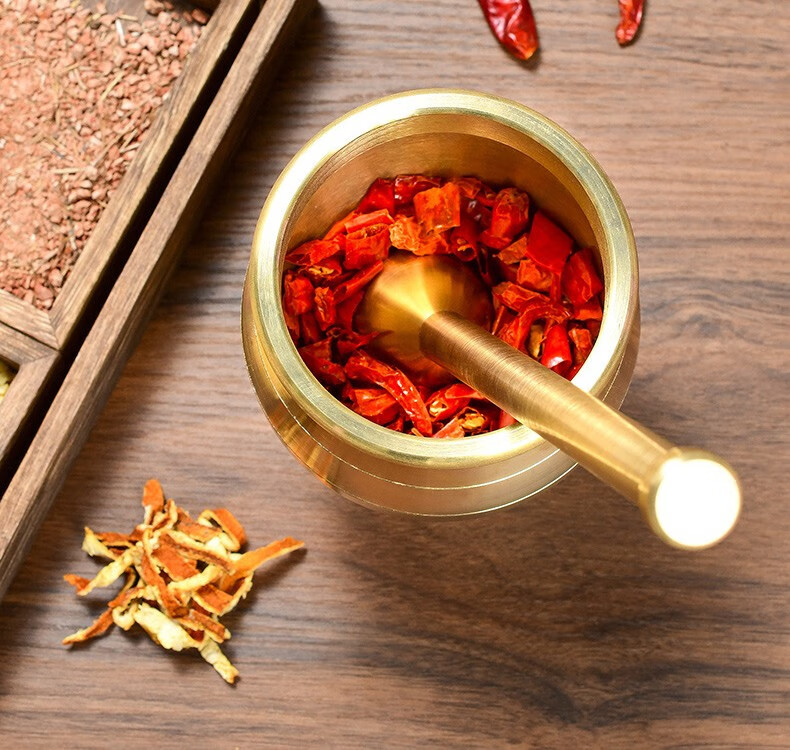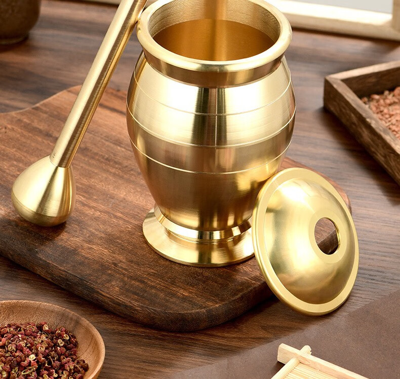 Yilianjia solid brass pounding jar brass pounding device handmade old jar garlic pounding jar brass cup medium jar mouth 90mm inner depth 10mm