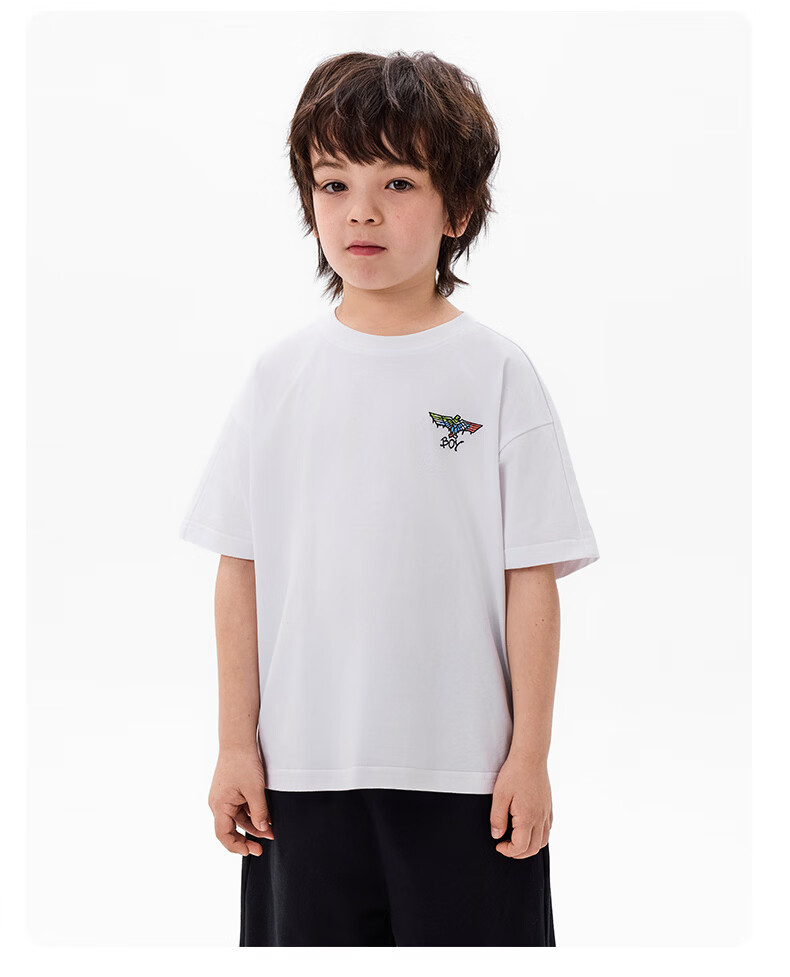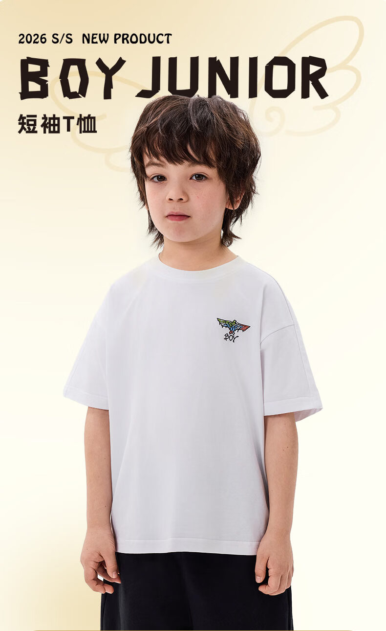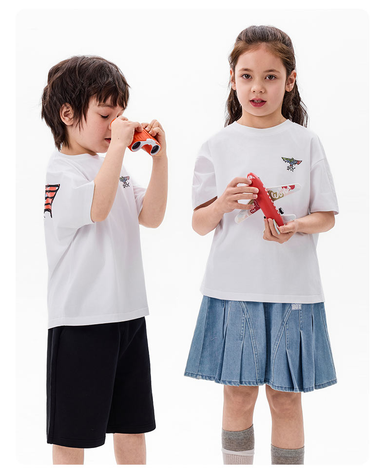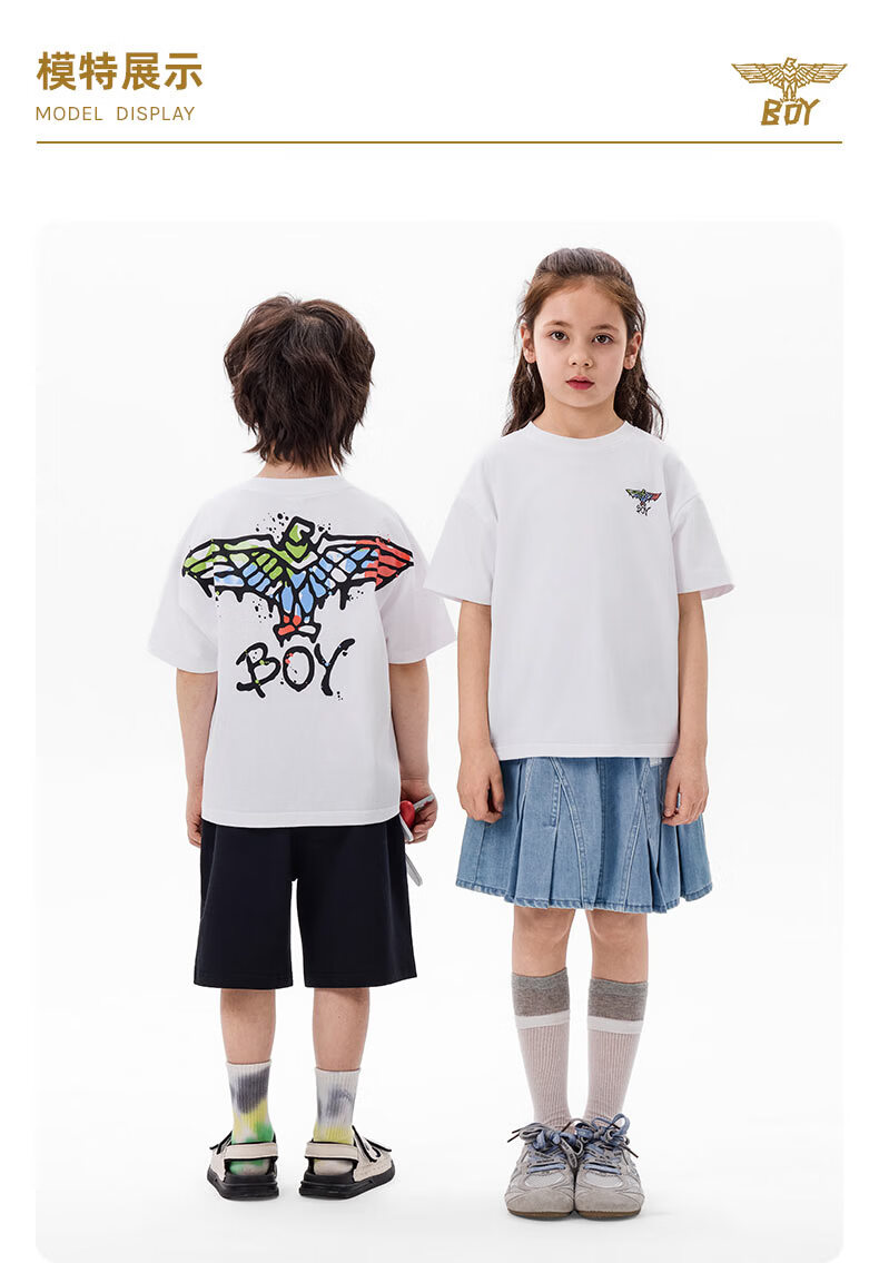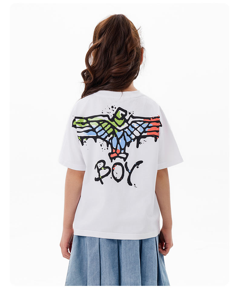 BOY JUNIOR trendy graffiti loose short-sleeved T-shirt for boys and girls, white 120