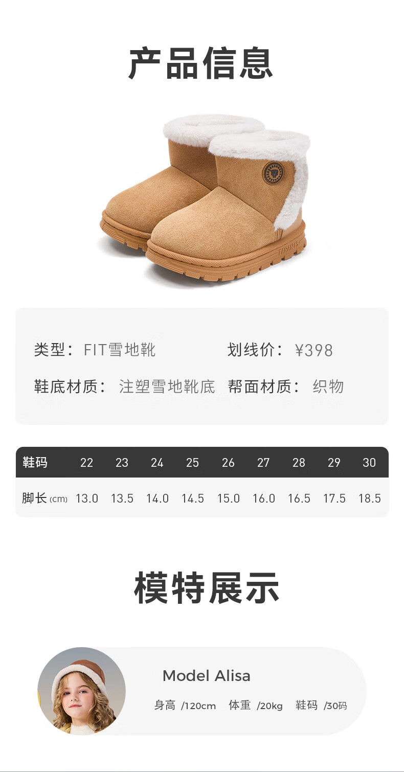 Tyrannis children's shoes winter snow boots plus velvet warm cotton shoes for boys and children thickened plus velvet large cotton shoes for girls yellow 22 inner length 14.5cm suitable for feet 13.0cm long
