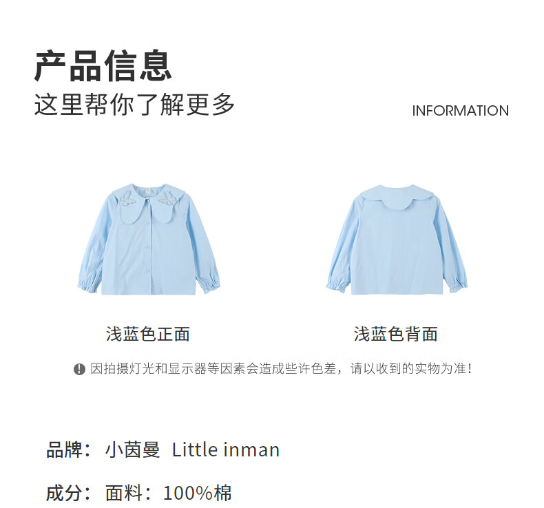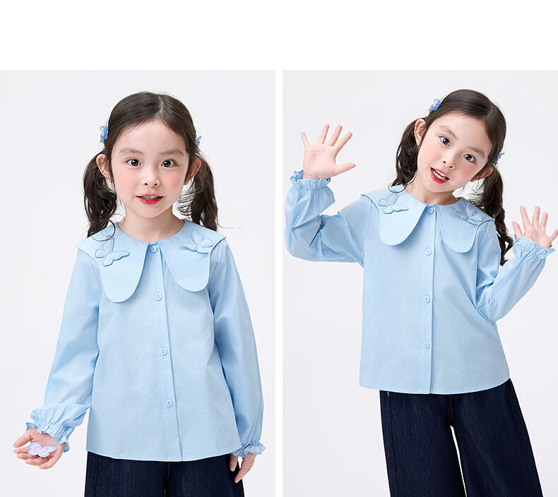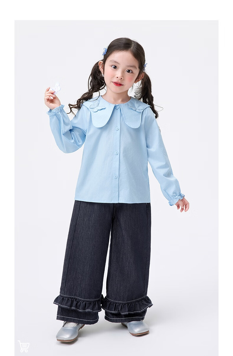 Xiaoyinman Inman children's clothing girls pure cotton shirt three-dimensional bow 26 spring spring collar casual top for children and middle-aged children light blue 105