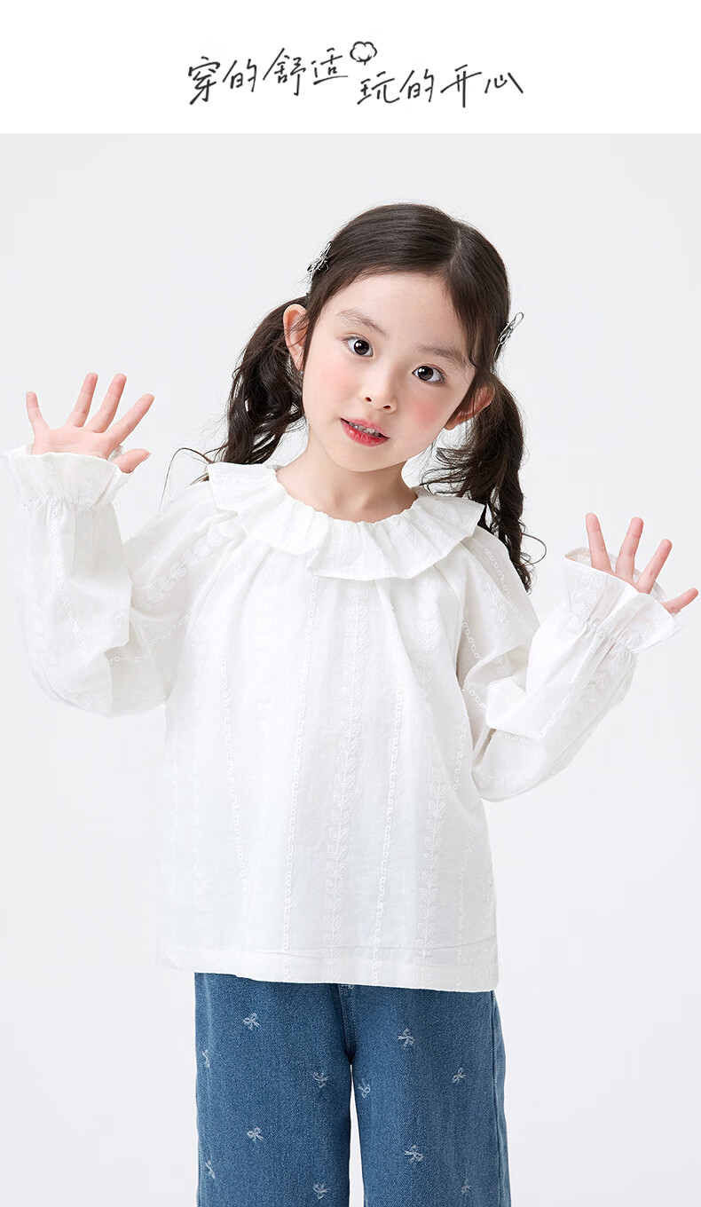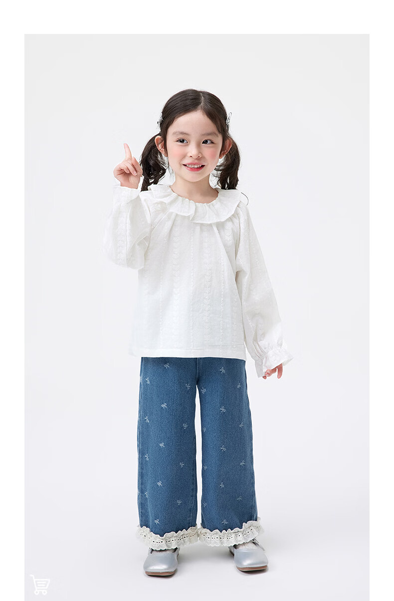 Xiaoyinman children's clothing girls pure cotton shirt lace round neck 26 spring new style sweet casual top for small and medium-sized children and girls off-white 105