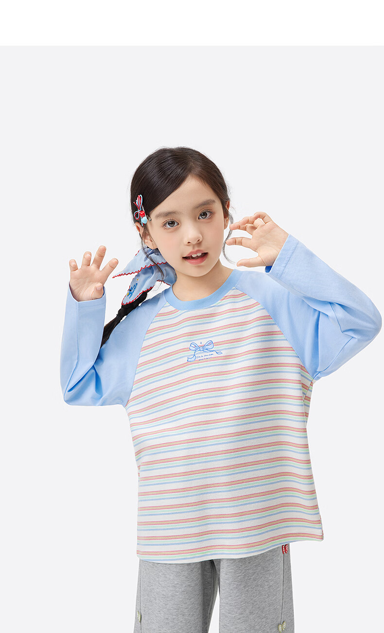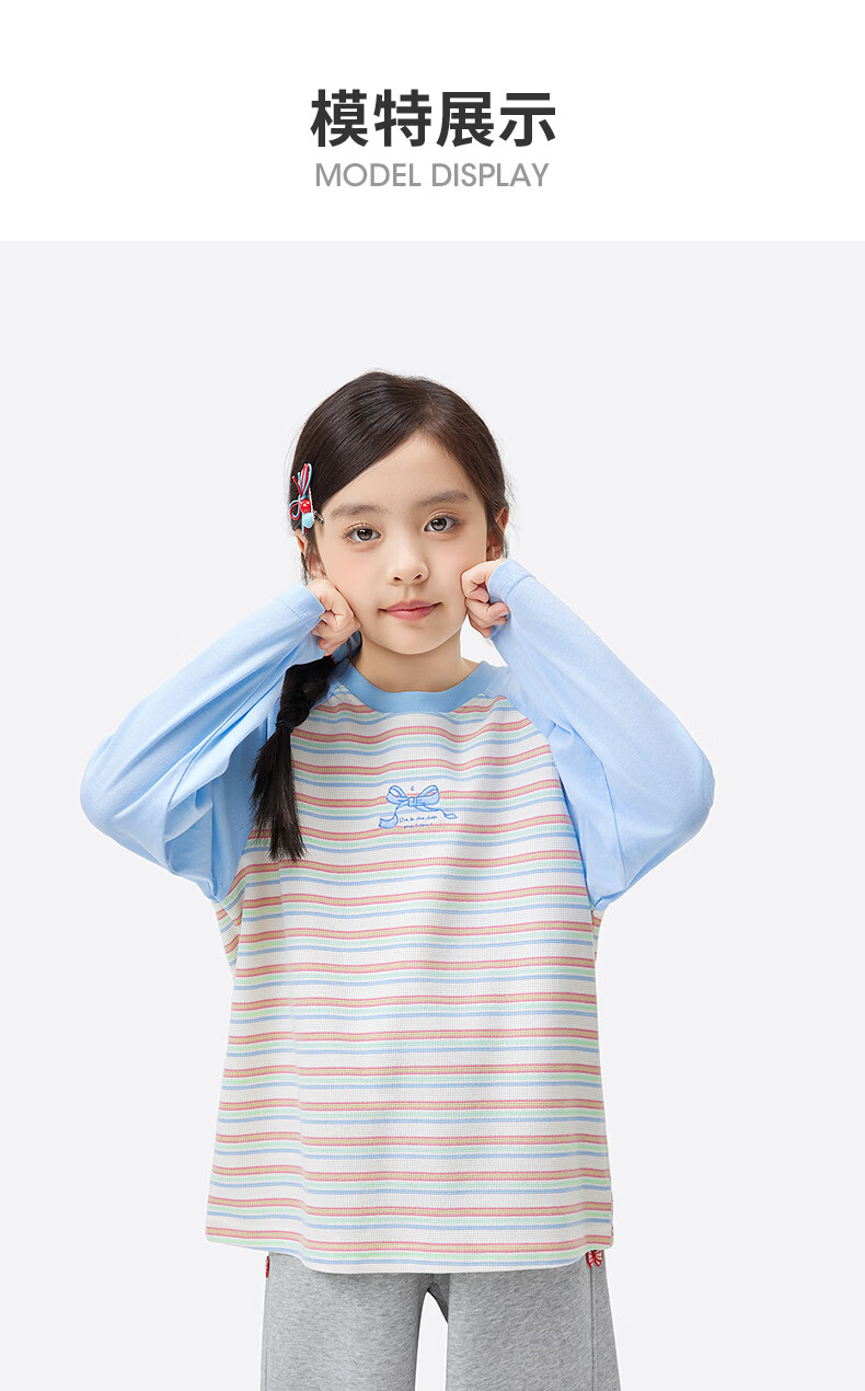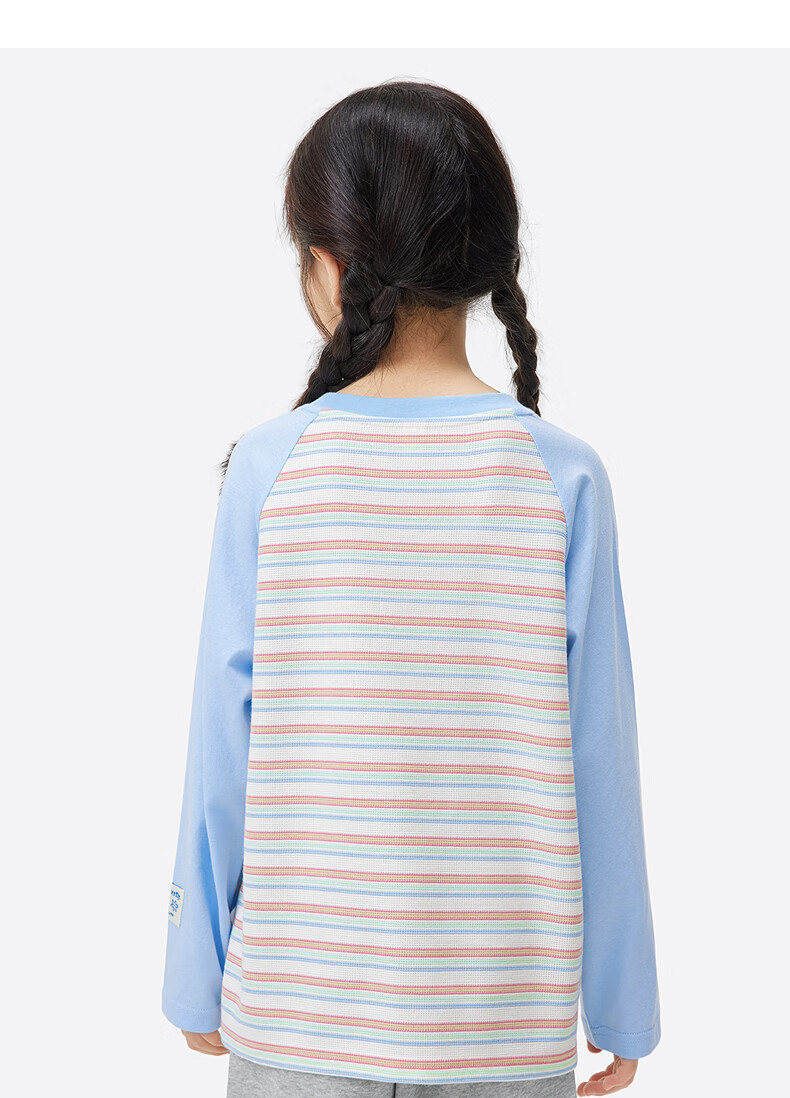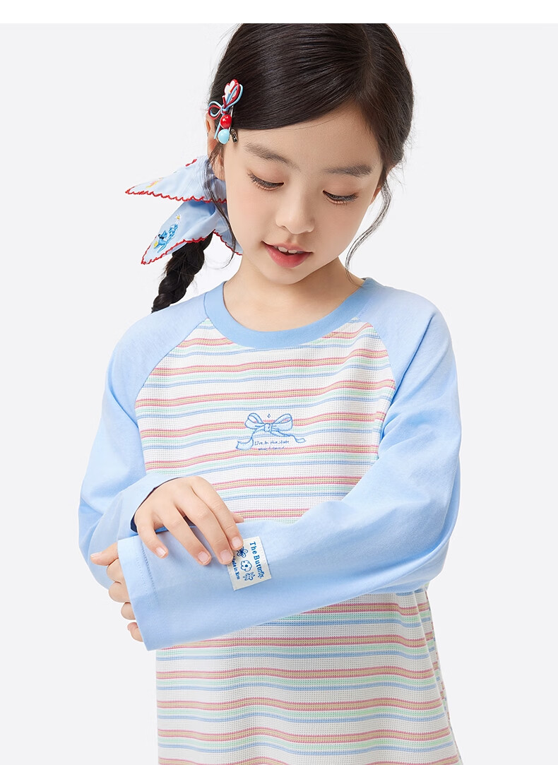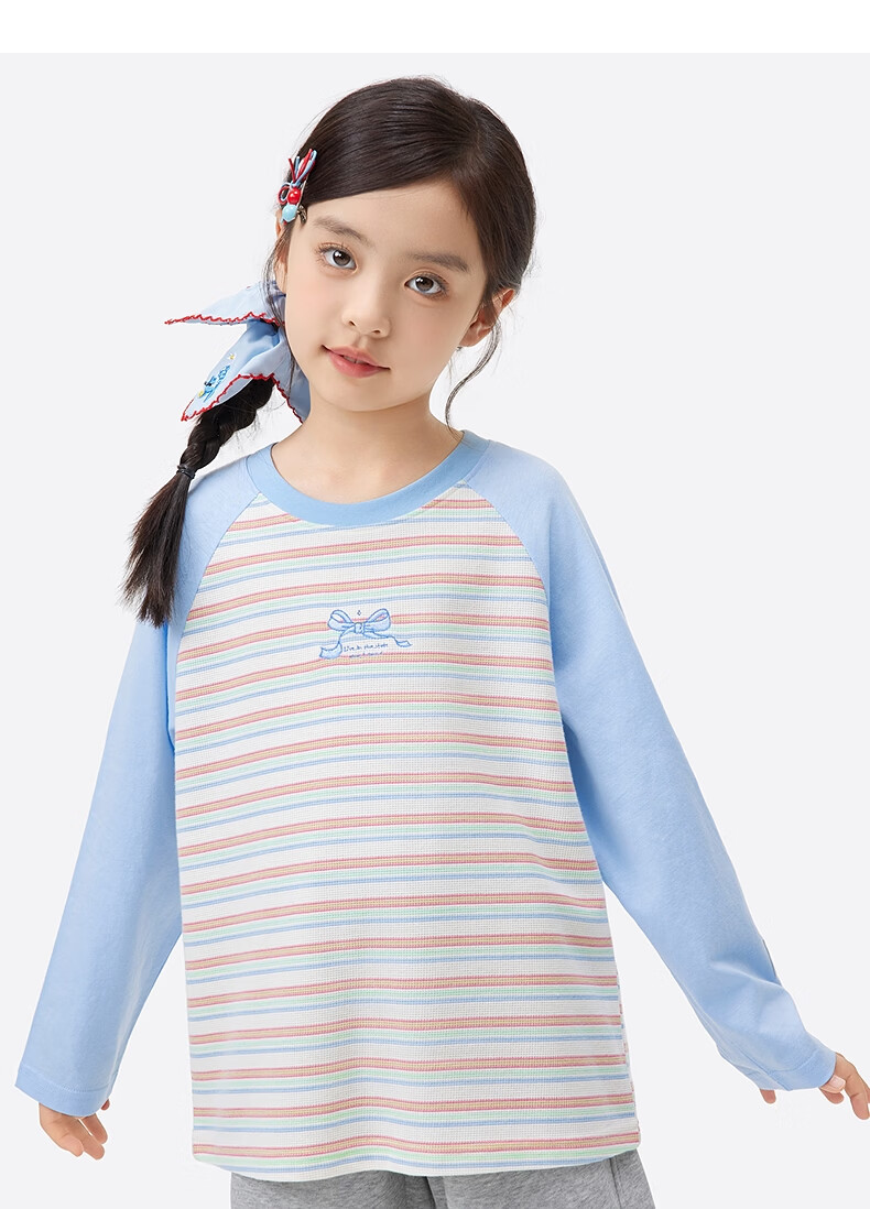 Xiaoyinman children's clothing girls' waffle striped t-shirt 26 spring fashion casual bottoming shirt for middle-aged and older children blue 120