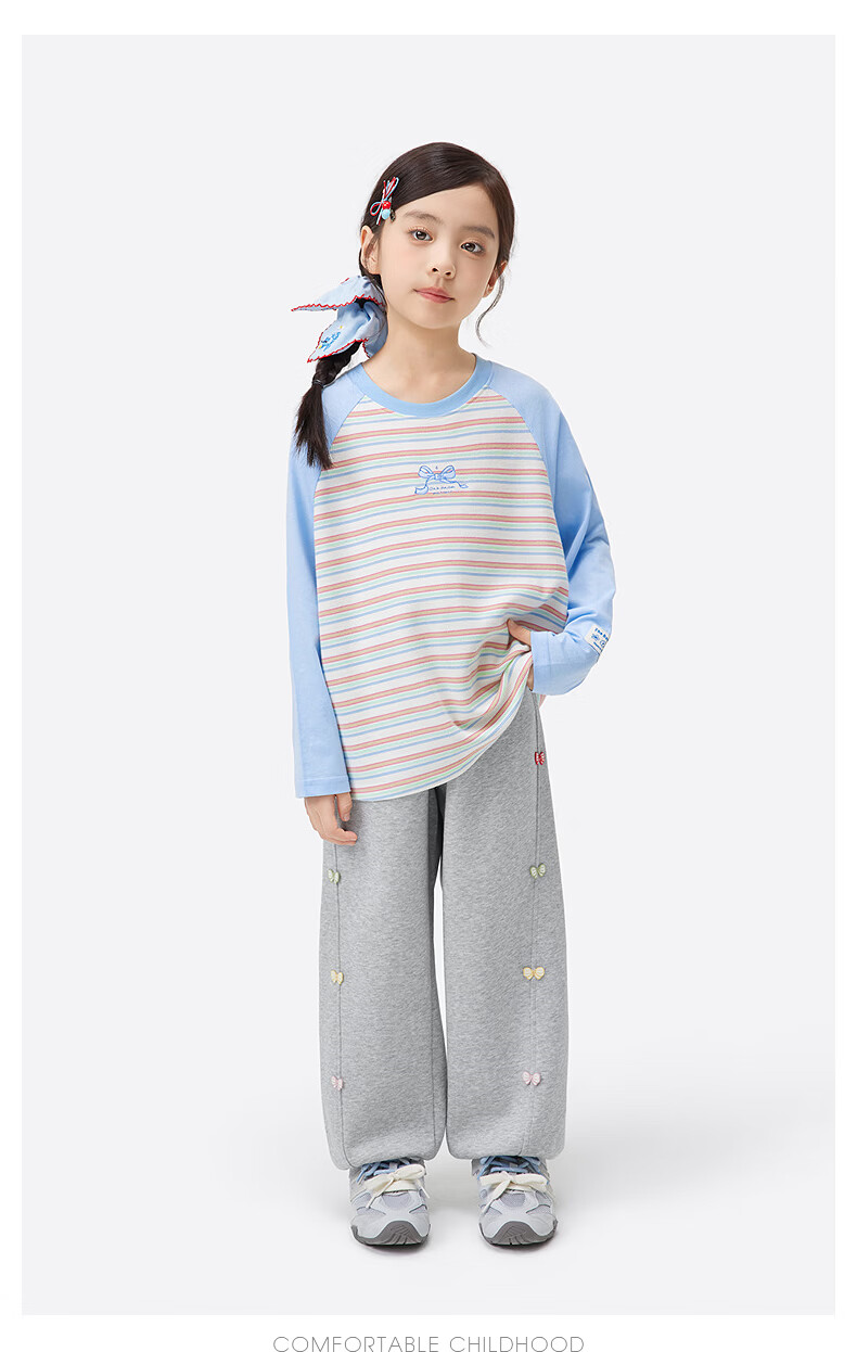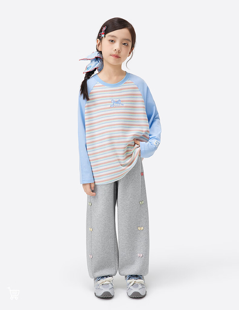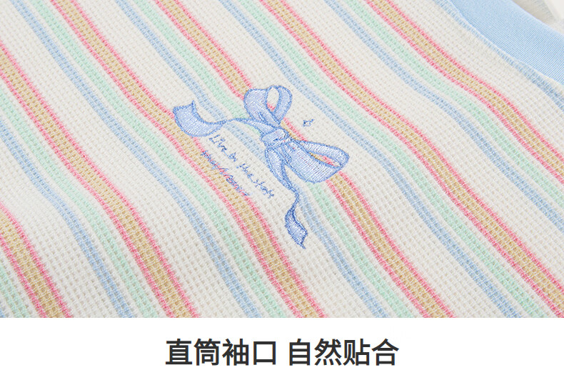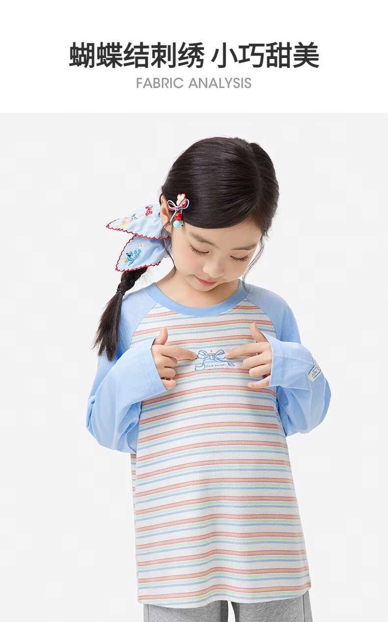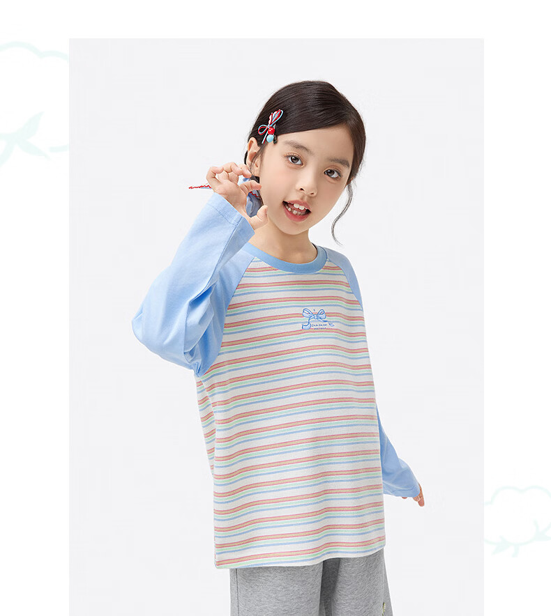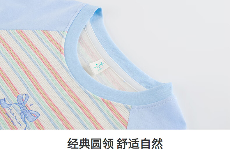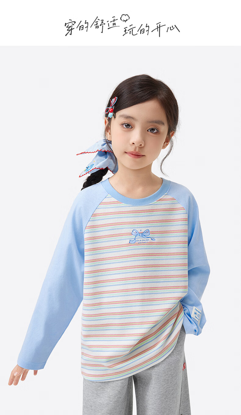 Xiaoyinman children's clothing girls' waffle striped t-shirt 26 spring fashion casual bottoming shirt for middle-aged and older children blue 120