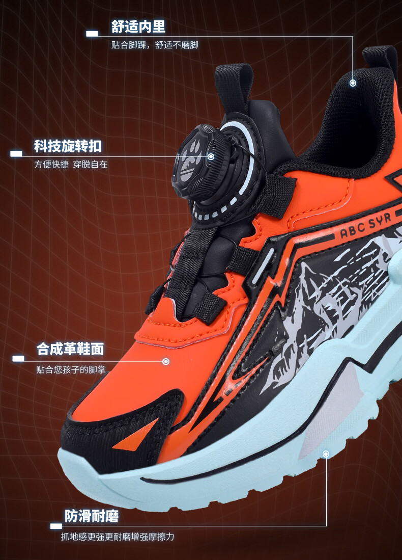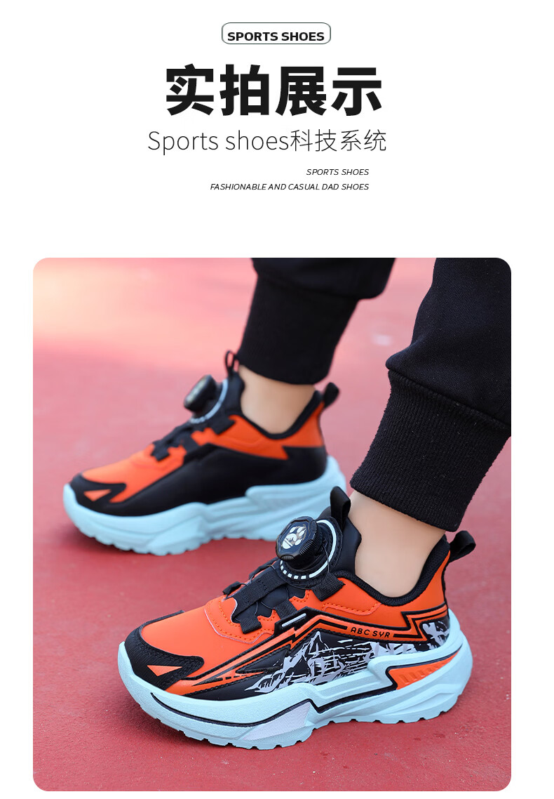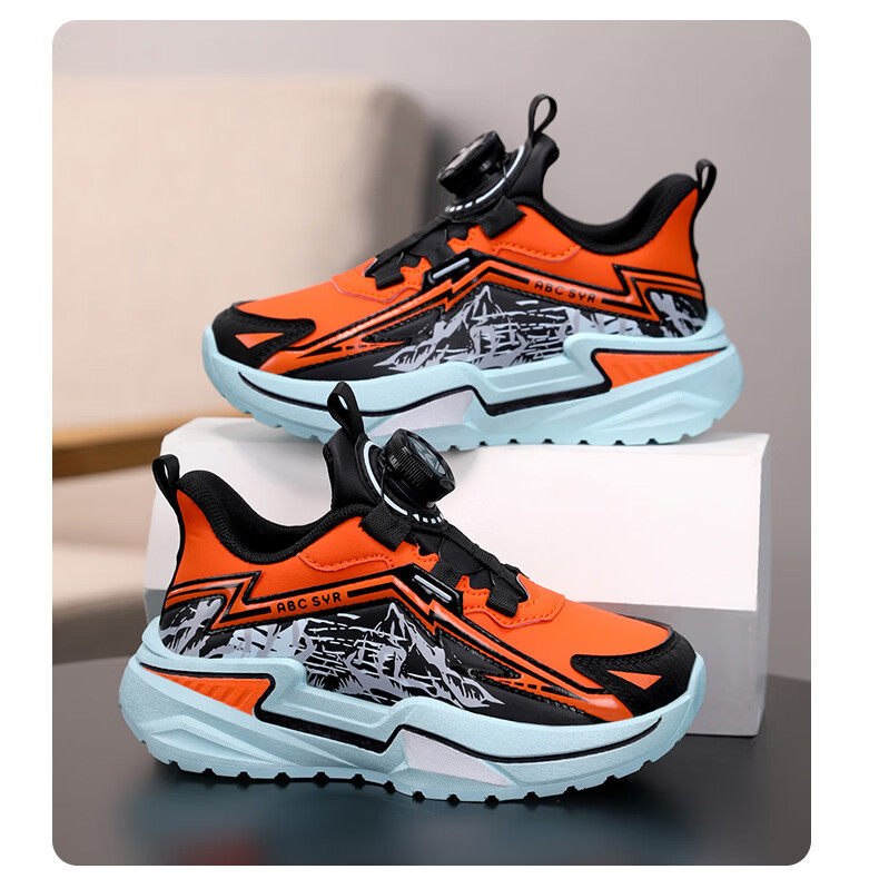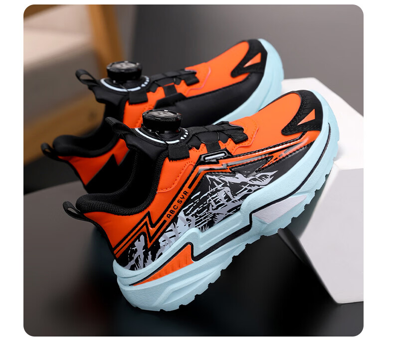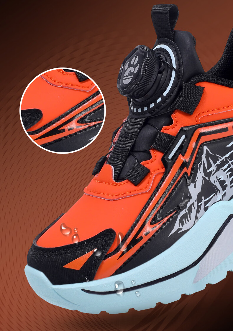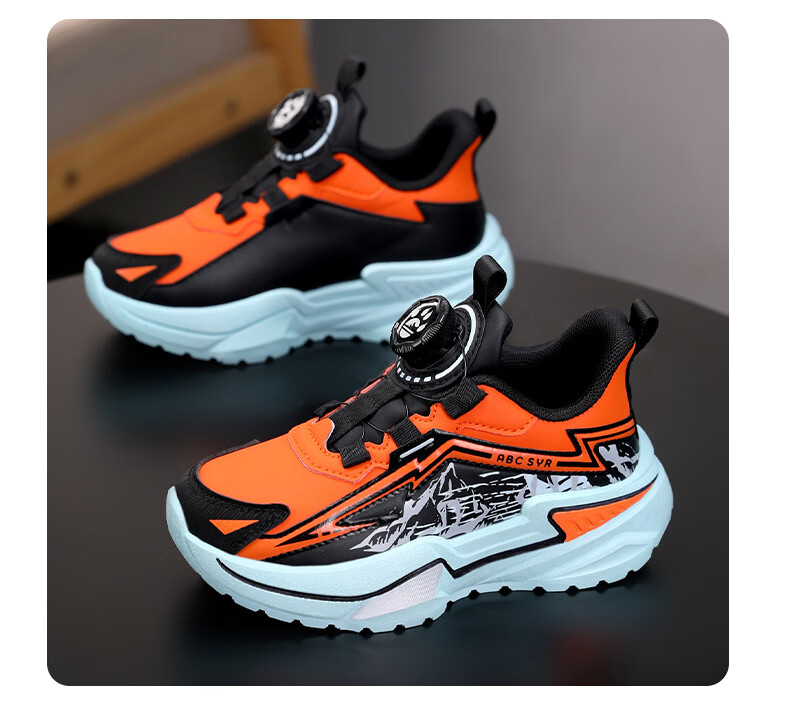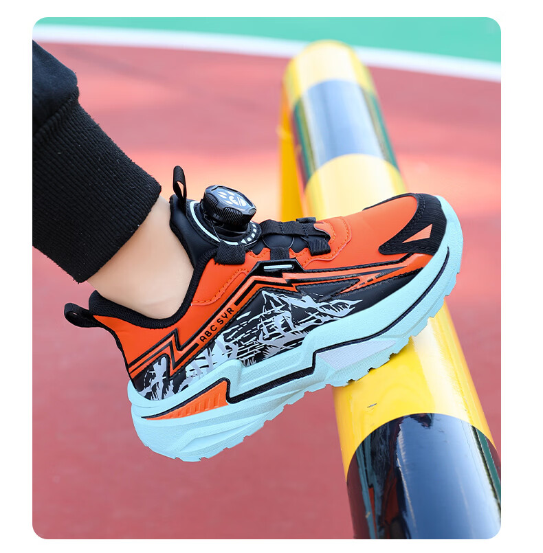 Chiyun Boys' Shoes 2026 Autumn and Winter Waterproof Leather Children's Sports Shoes Lightweight Medium and Large Children's Running Shoes Black Orange 31