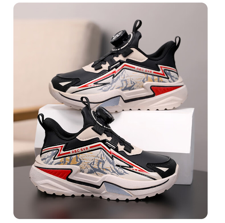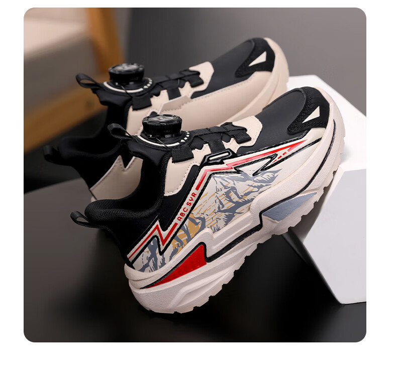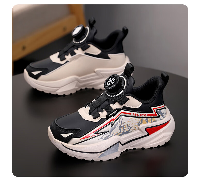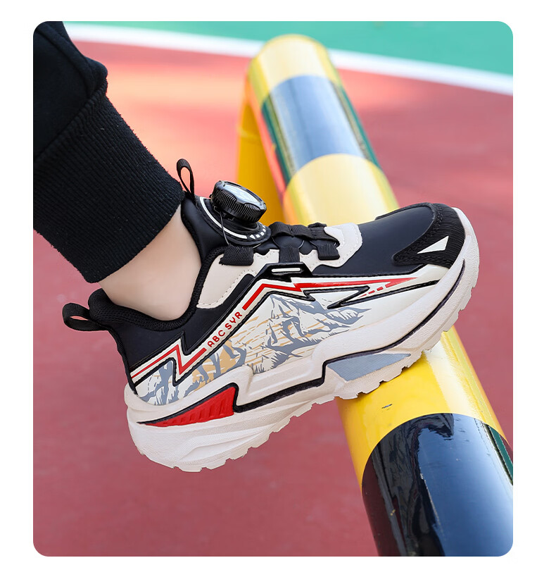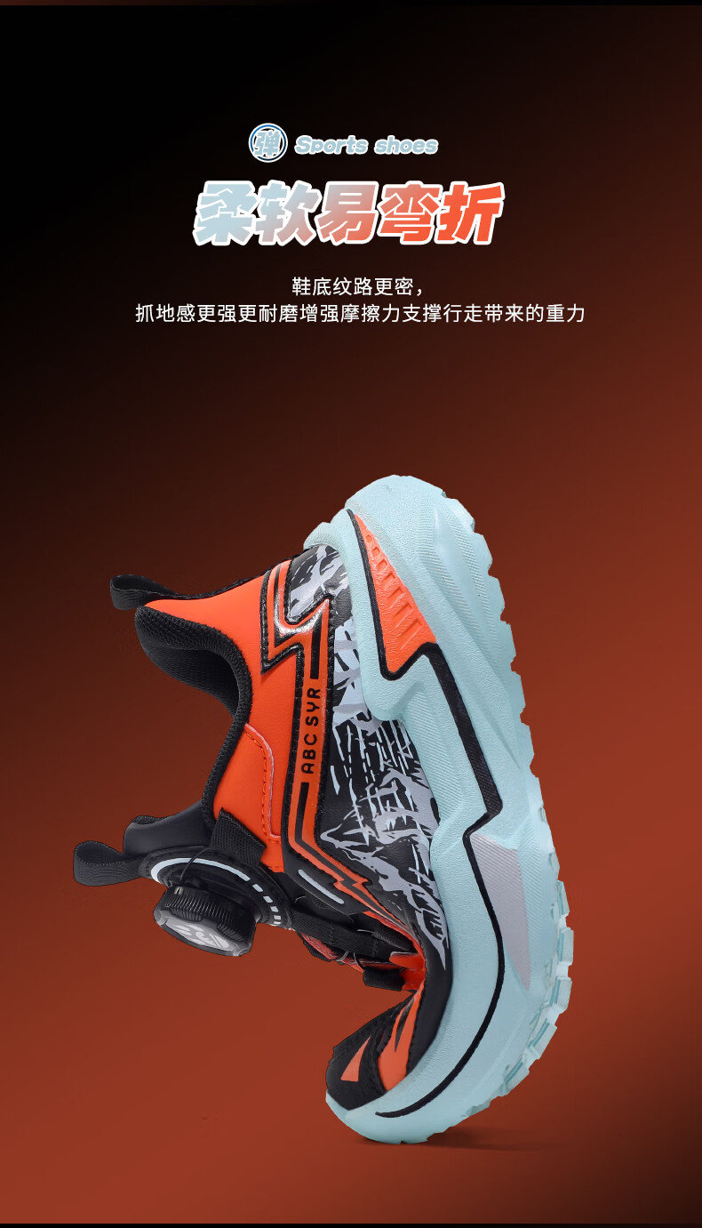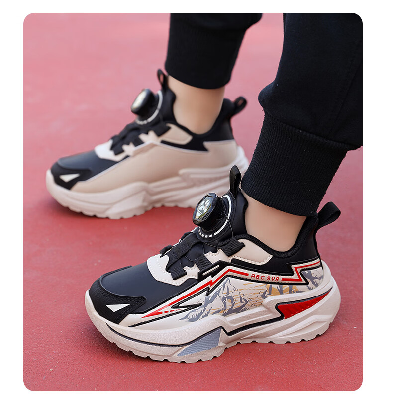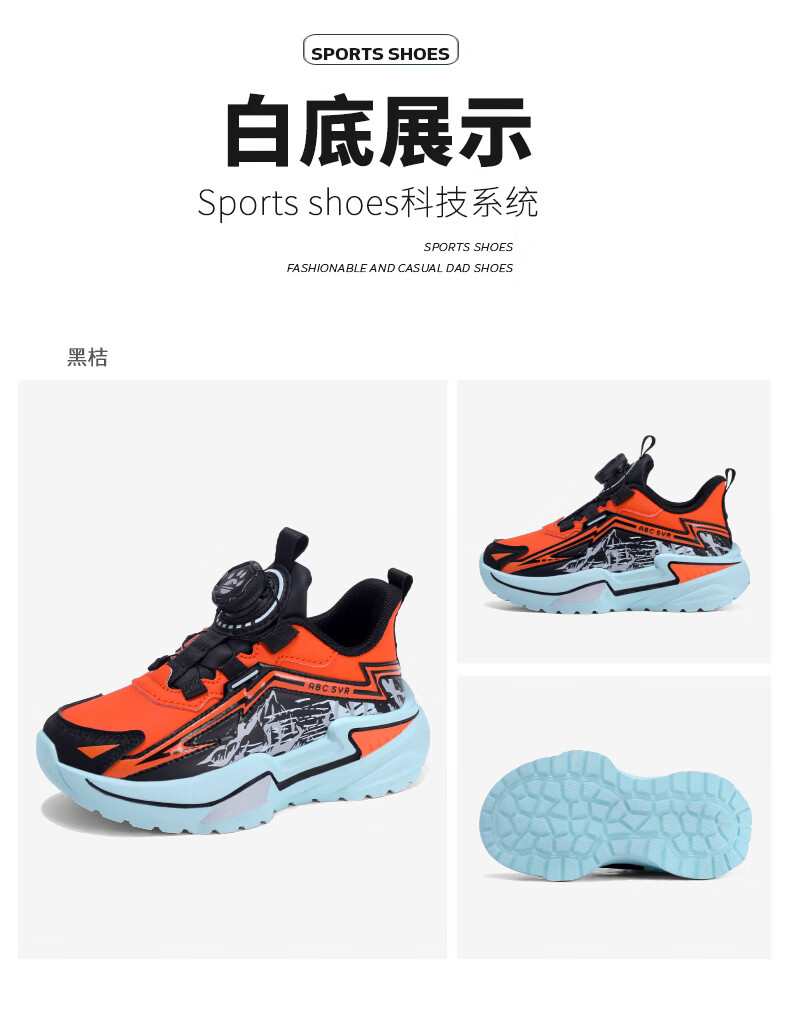 Chiyun Boys' Shoes 2026 Autumn and Winter Waterproof Leather Children's Sports Shoes Lightweight Medium and Large Children's Running Shoes Black Orange 31