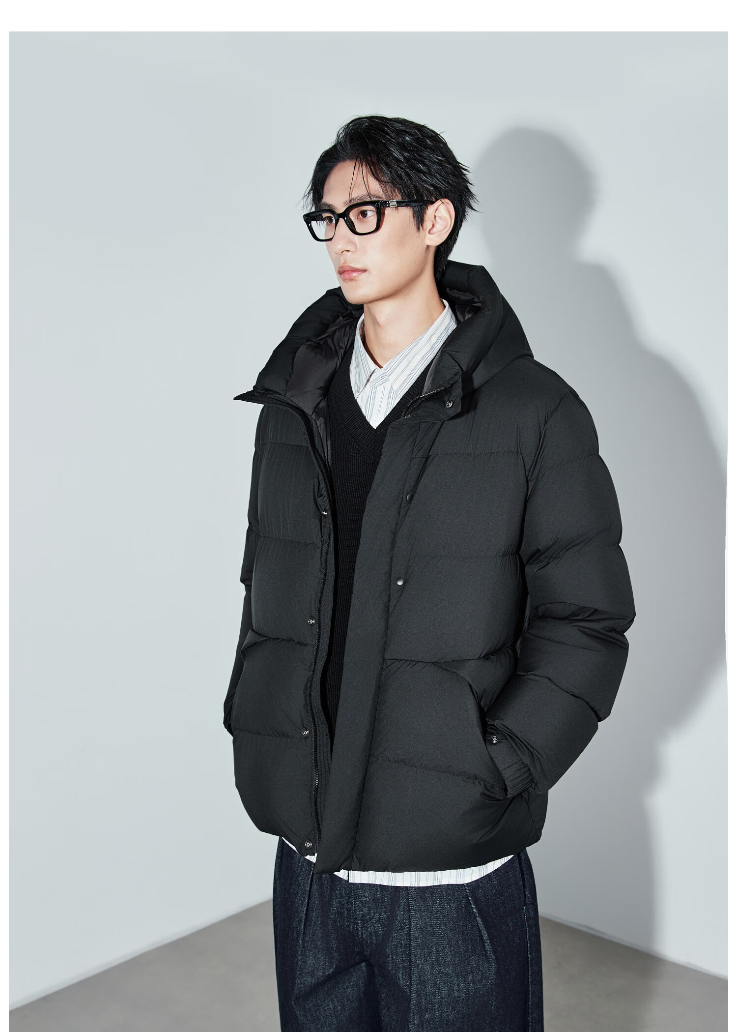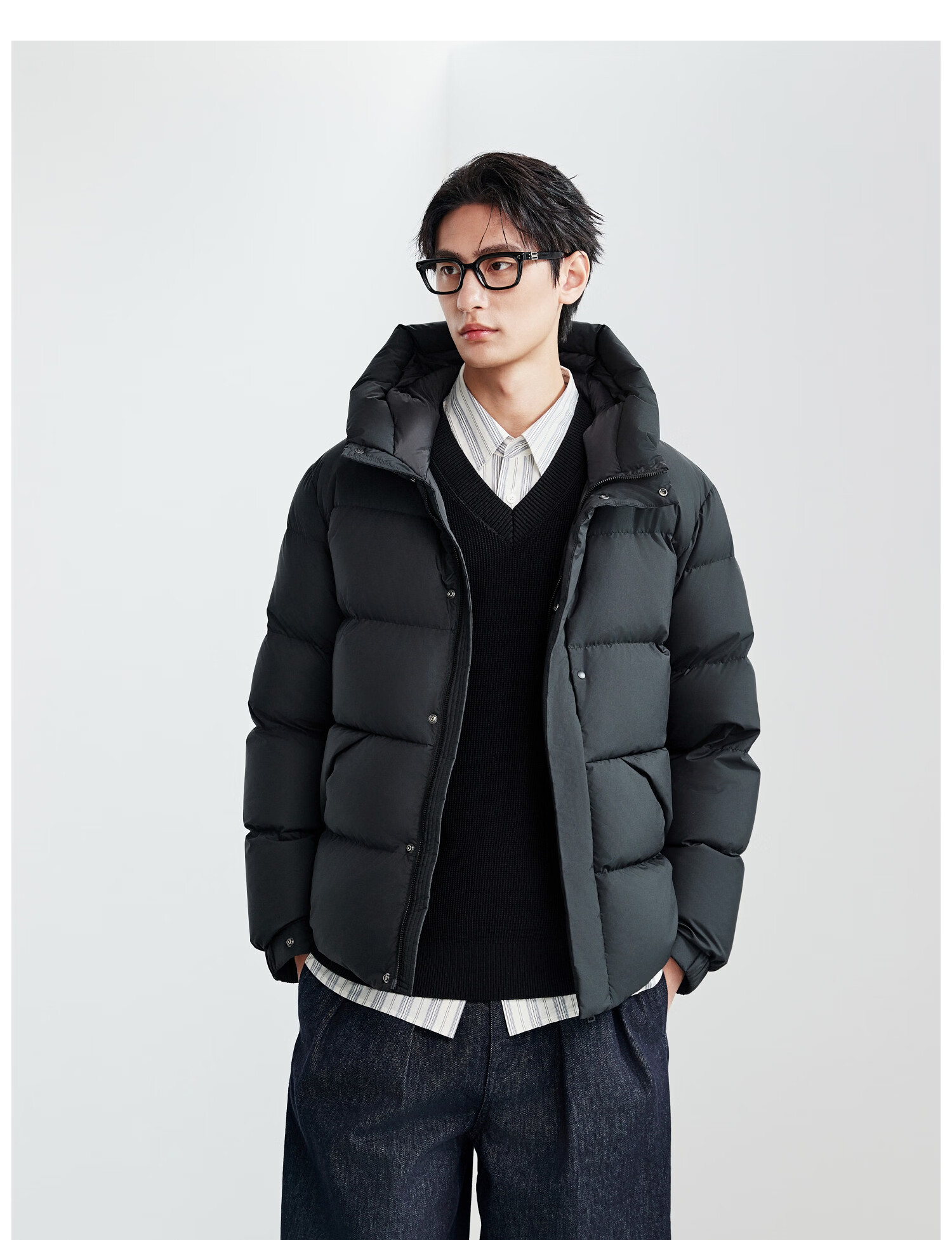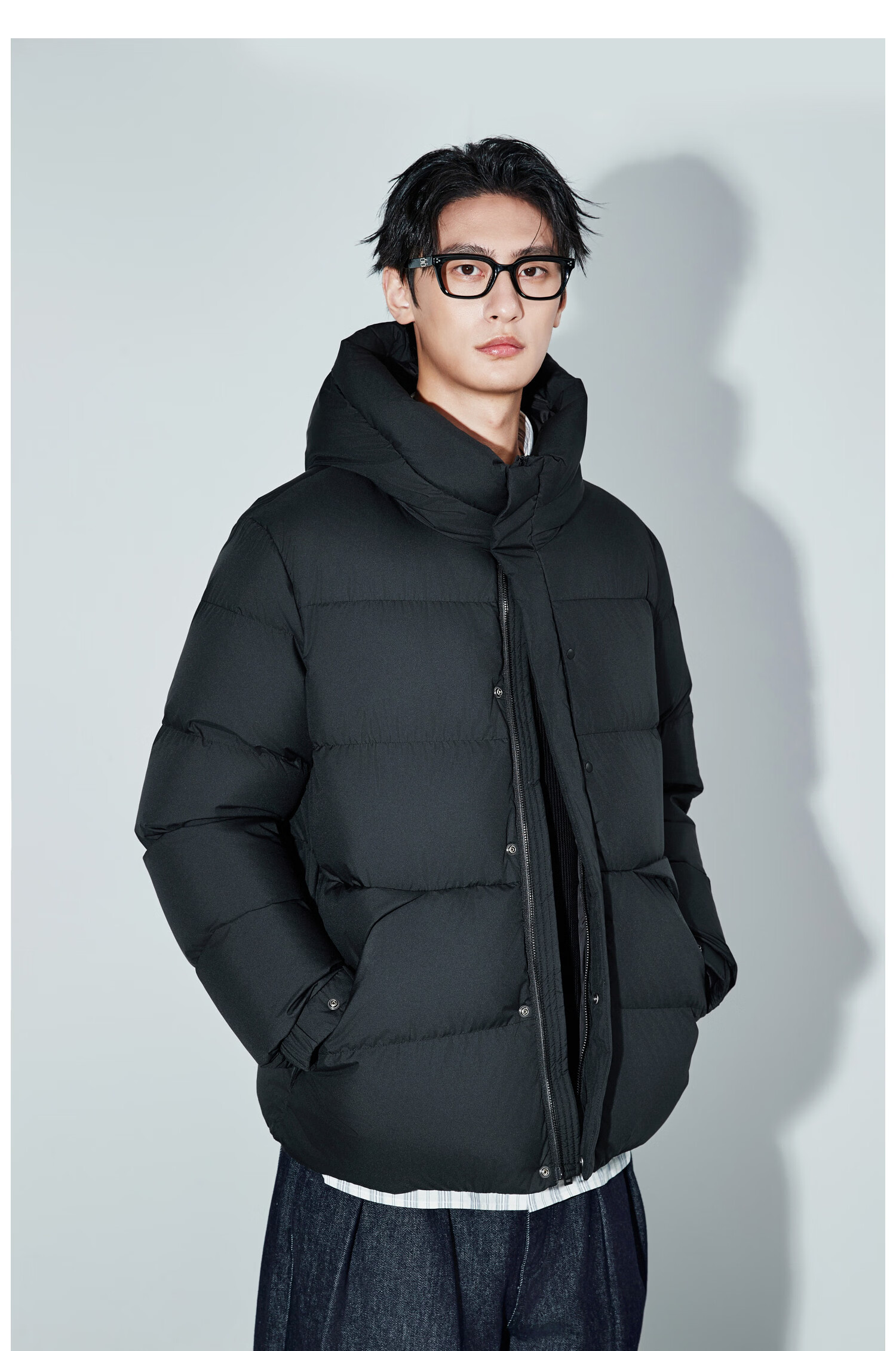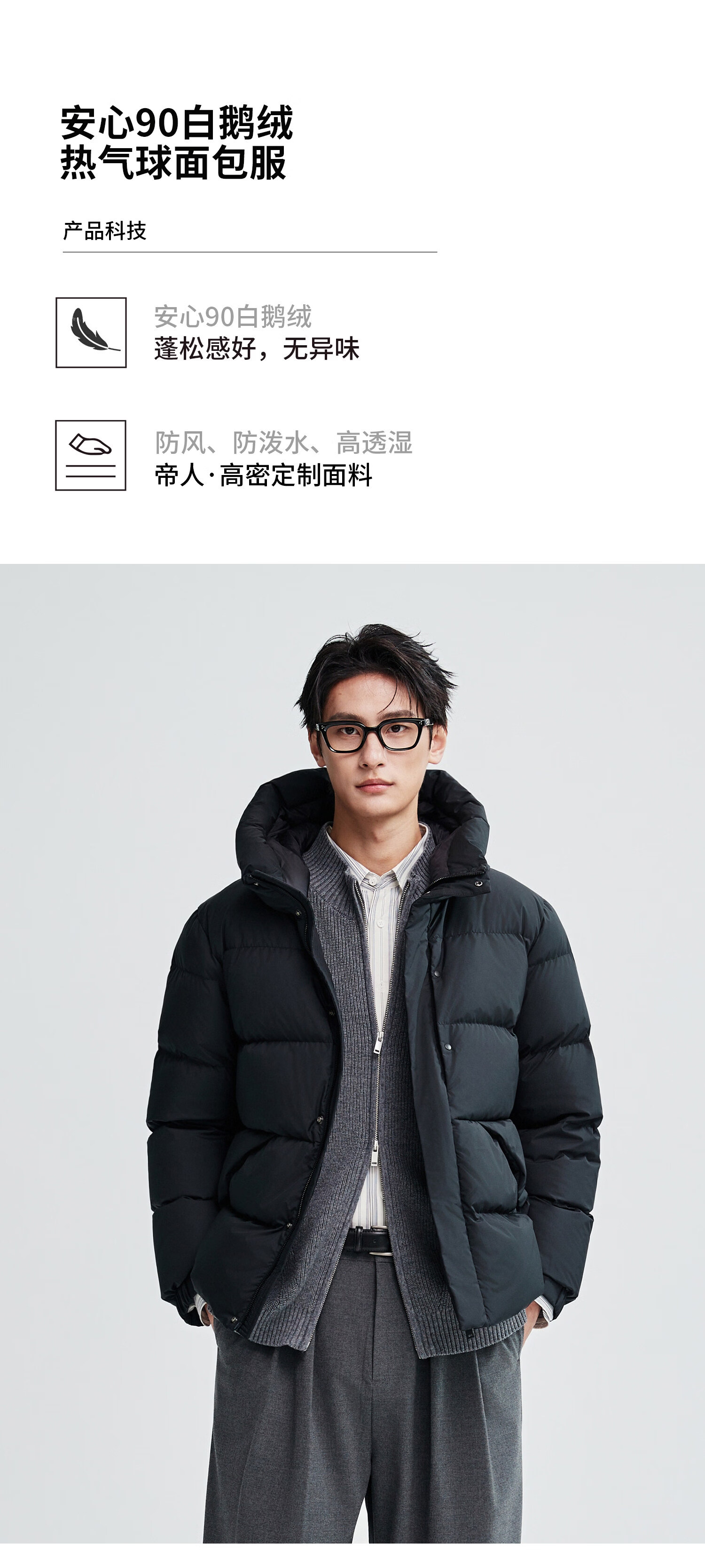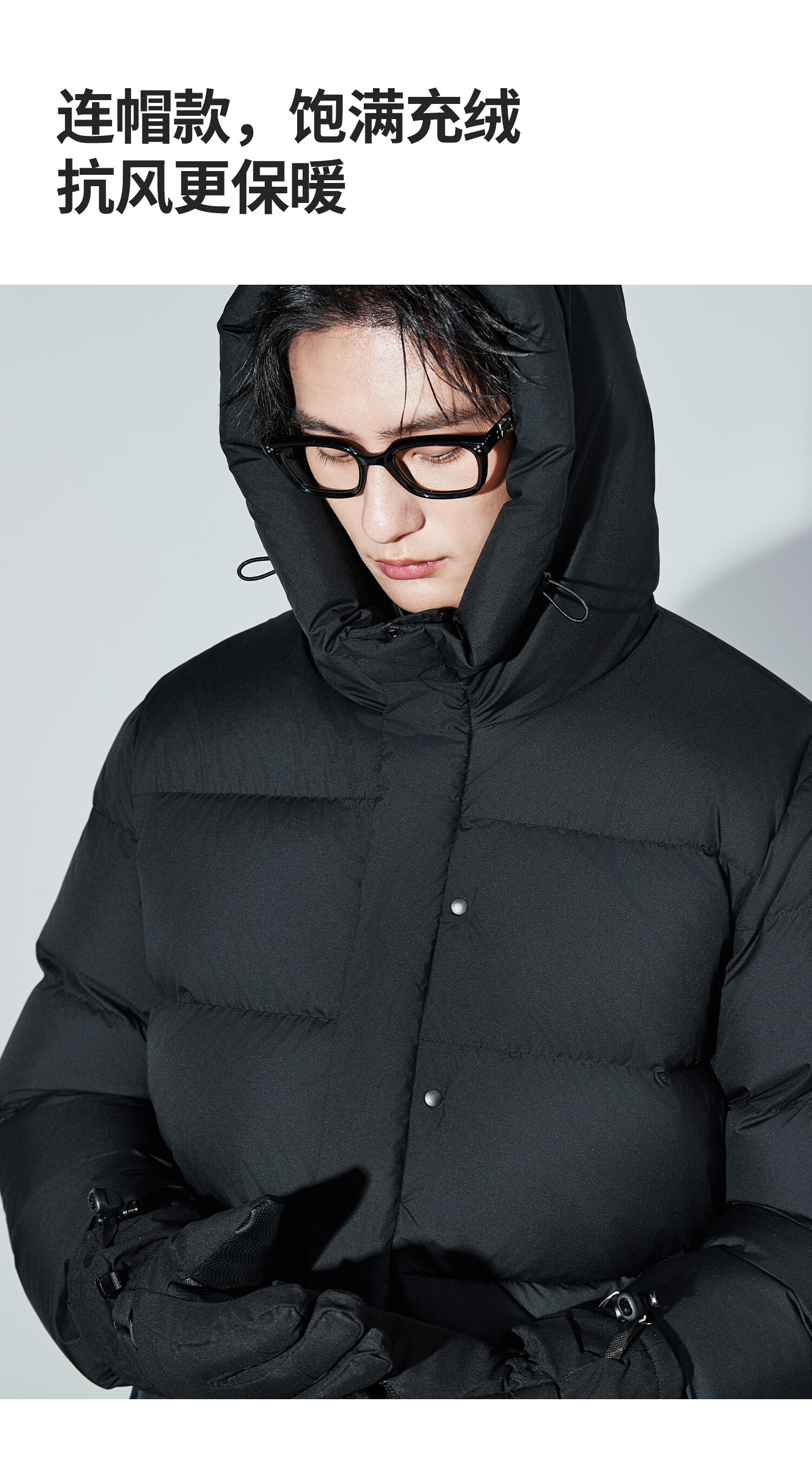 Mr. Mian Anxin 90 white goose down thick bread hooded down jacket men's mid-length winter new casual outdoor obsidian black M
