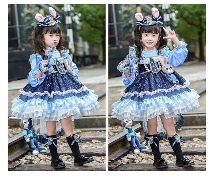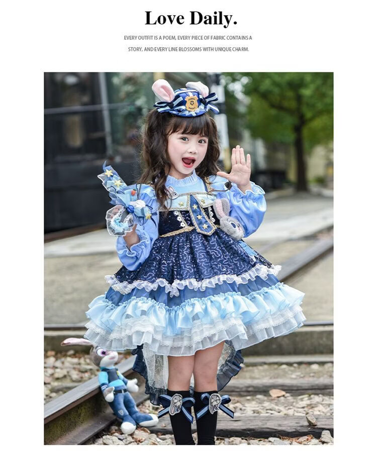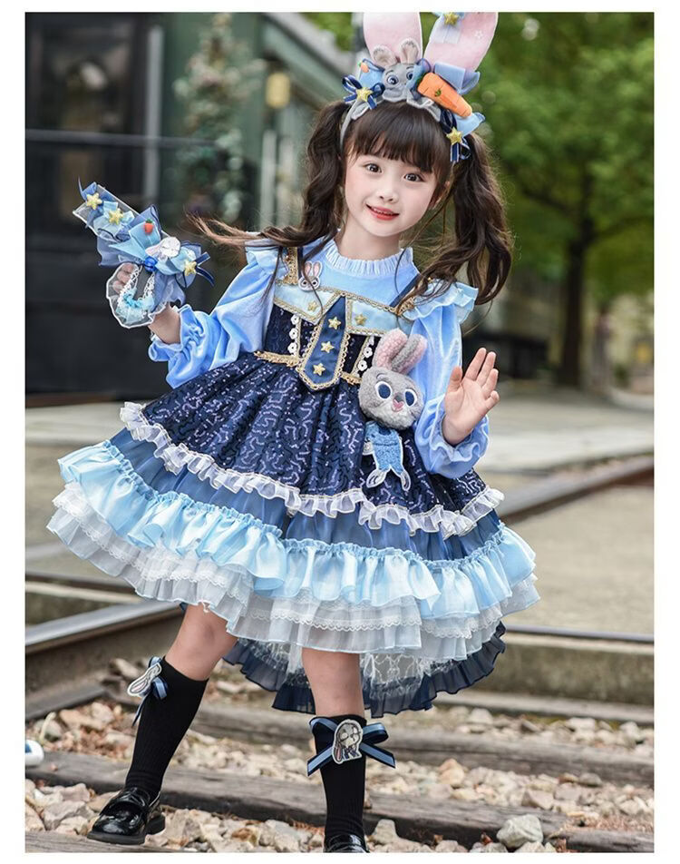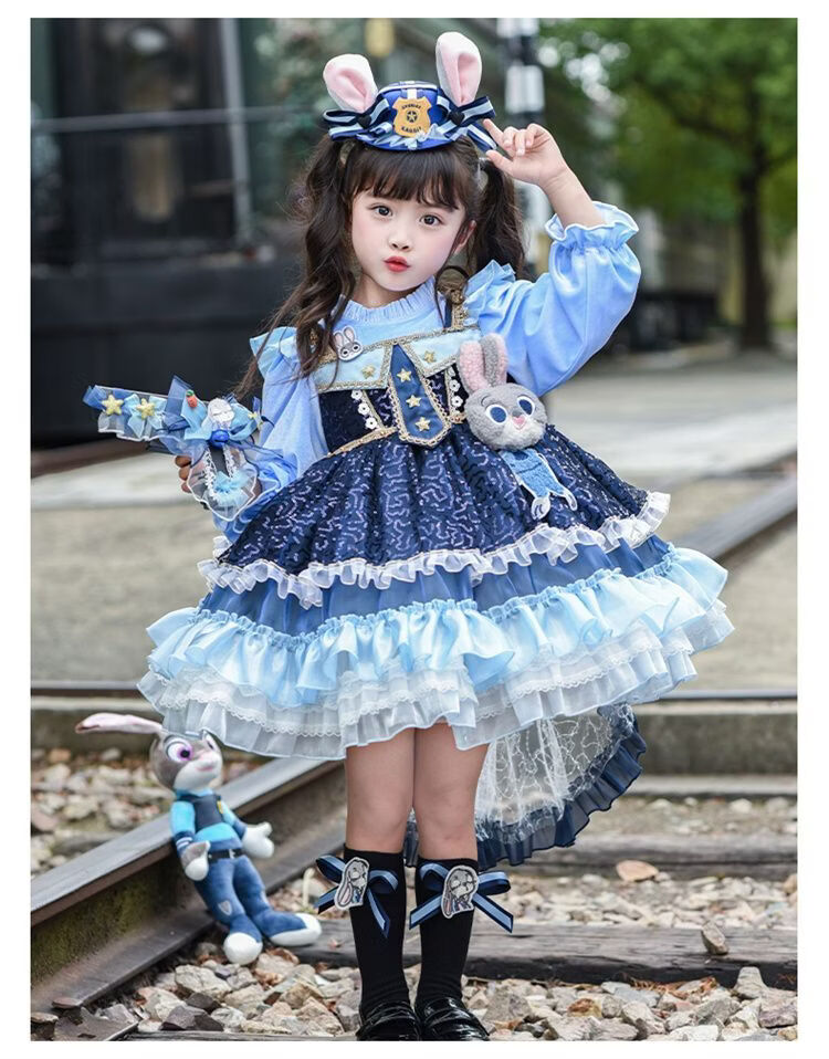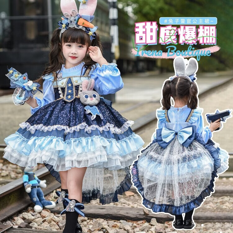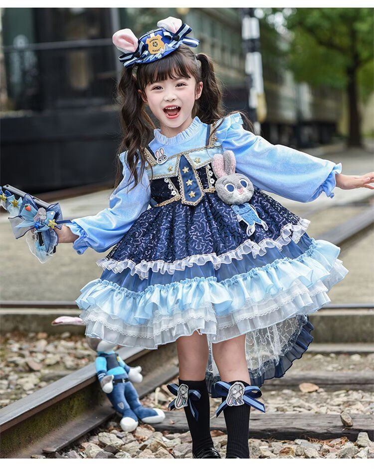 Disney (Disney) Girls Rabbit Police Officer Princess Dress 2026 New Children's First Birthday Dress Dress Fashionable Judy Rabbit Dress Skirt + Little Hat + Pistol + Socks Plush 120